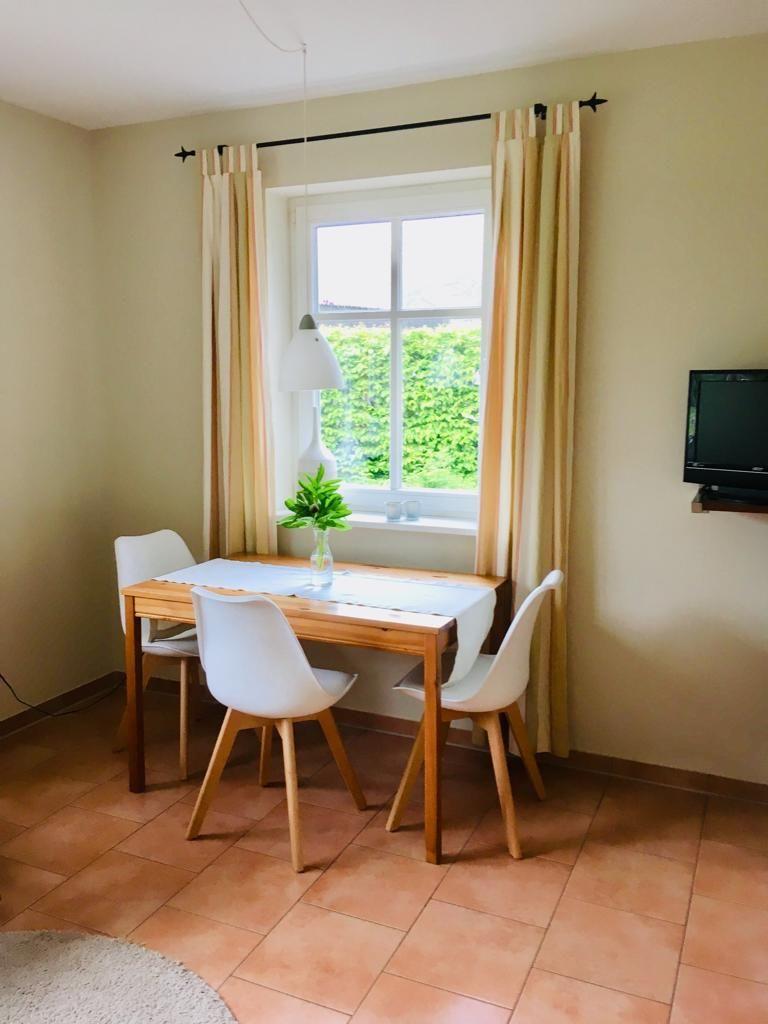 Die Wohnung verfügt über eine angrenzende, große Süd/West Terrasse mit Blick auf das großzügige gepflegte Grundstück. Des Weiteren besticht die Ferienwohnung durch die direkt grenzende Lage am Darßwald, sowie am Radweg nach Prerow, Born und zum wunderschönen Weststrand.