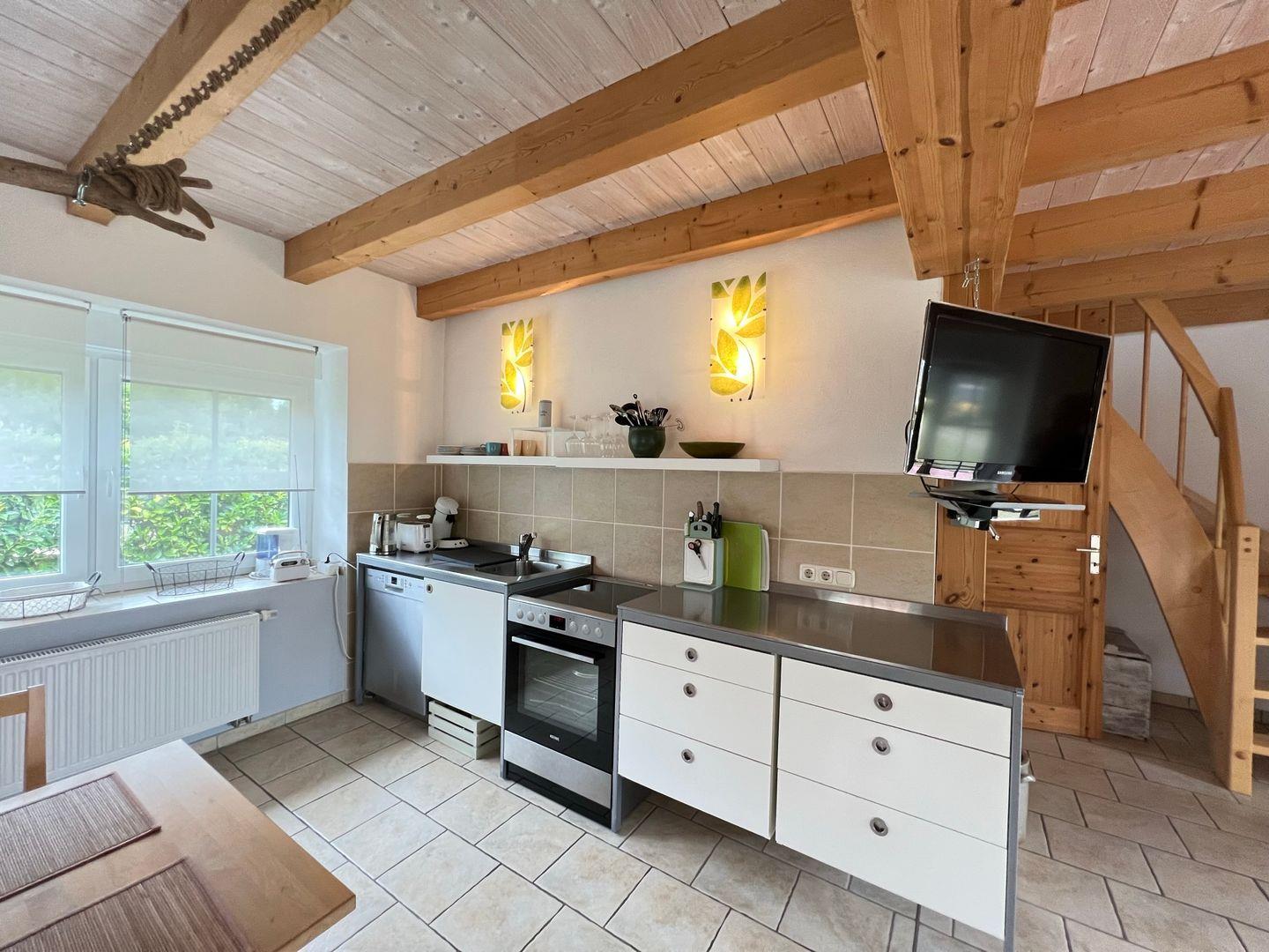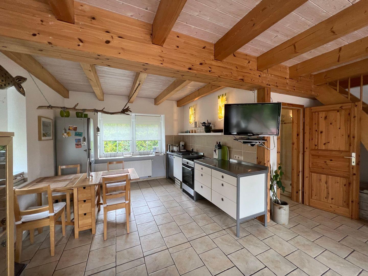 Diese Maisonettewohnung befindet sich auf einem Grundstück mit großer Rasenfläche und freiem Blick zum Bodden. Im Erdgeschoss lädt die offene Küche, sowie der liebevoll eingerichtete Wohn-Essbereich zum Verweilen ein. Ebenfalls im Erdgeschoss befindet sich eines der zwei Badezimmer, welches mit einer Dusche ausgestattet ist. Im Obergeschoss entspannen Sie sich in einem großen Schlafzimmer mit Doppelbett.