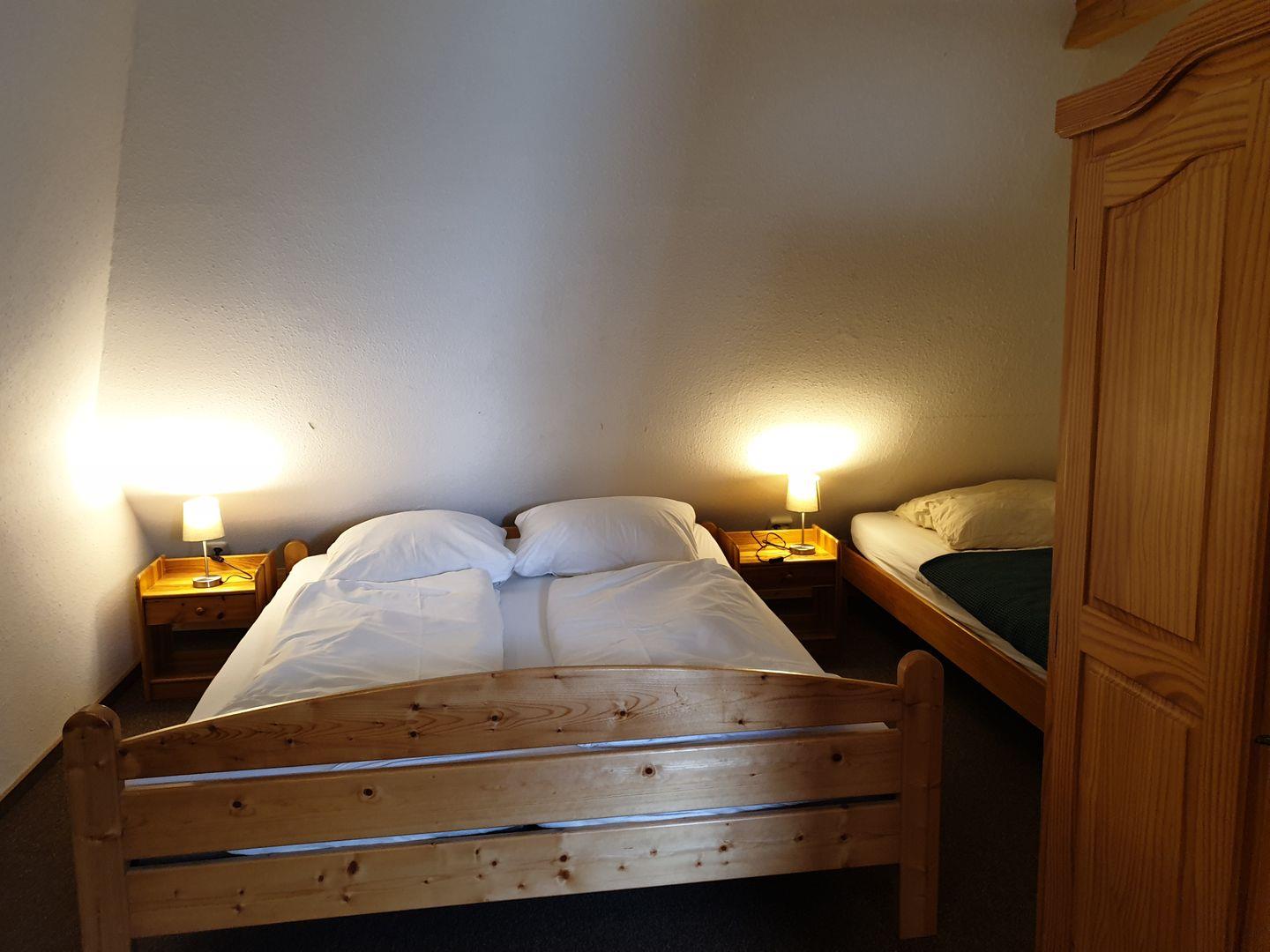 Über eine Innentreppe erreichen Sie das Dachgeschoss ca 20 m² mit zwei Schlafzimmern mit Doppelbett und einen Einzelbett.