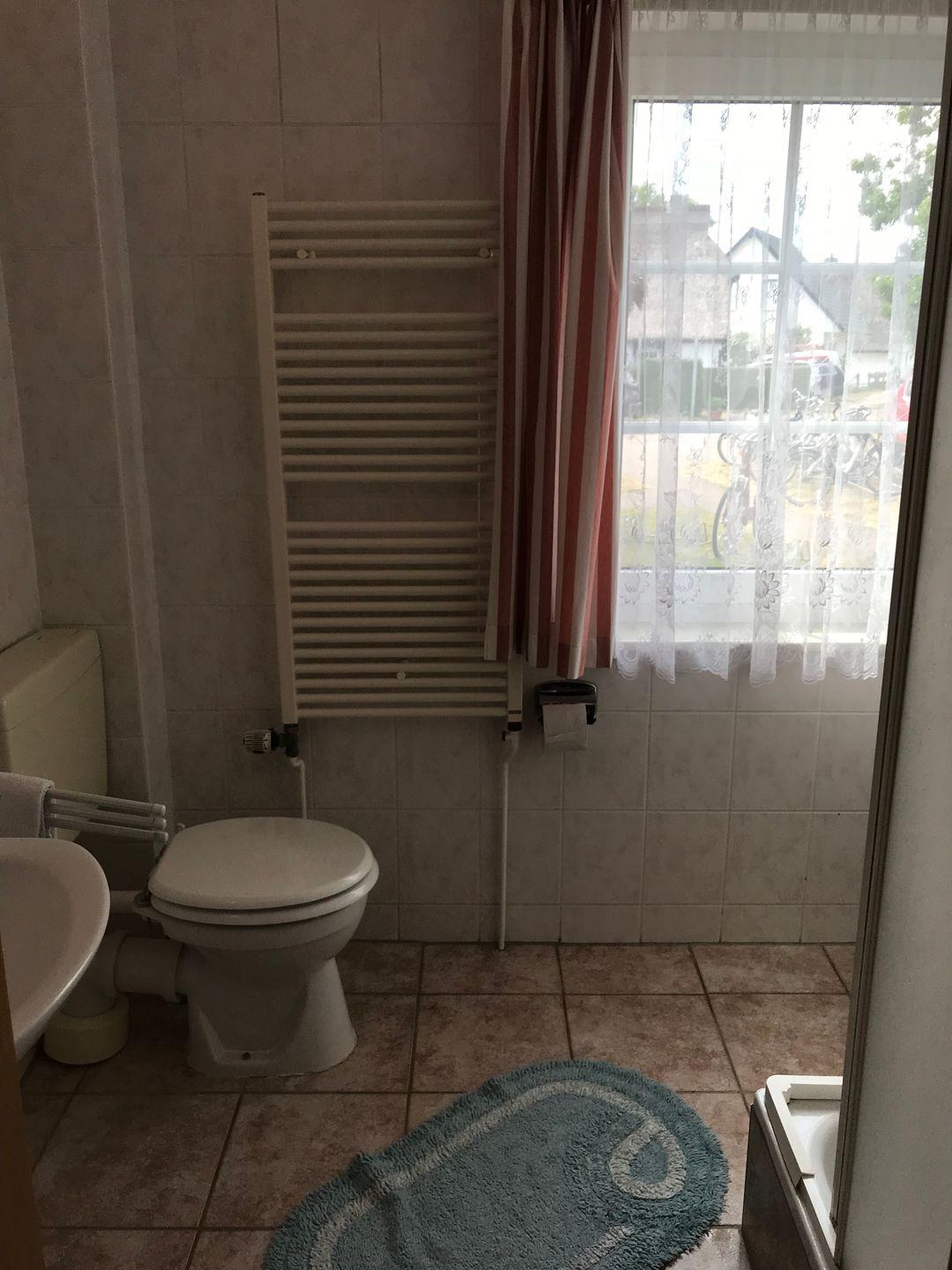 Das Bad verfügt über eine Dusche, WC, Warmwasser Heizung.