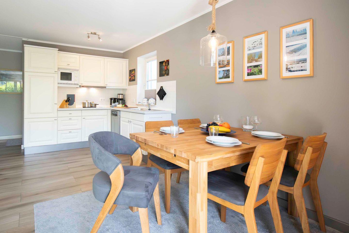 Stellen Sie sich vor, Sie betreten Ihr 62 m² großes Urlaubszuhause im Erdgeschoss, perfekt für bis zu 4 Personen. Der geräumige Wohn- und Essbereich, ausgestattet mit einer vollfunktionalen Küche und einer bequemen Schlafcouch, öffnet sich zu einer Welt voller Licht und Grün, dank der großzügigen Fensterfront. Hier können Sie morgens Ihren Kaffee genießen, während die ersten Sonnenstrahlen Ihren Tag begrüßen. Schlendern Sie hinaus auf Ihre private Südterrasse, ein perfekter Rückzugsort, um die Seele baumeln zu lassen und die Natur in vollen Zügen zu genießen. Die Wohnung bietet nicht nur einen eigenen Parkplatz und Fahrradabstellplatz, sondern auch Annehmlichkeiten wie eine Waschmaschine und einen Trockner (gegen Gebühr), die Ihren Aufenthalt so komfortabel wie möglich gestalten. Eine High-Speed-WLAN-Verbindung und ein Flachbild-TV sorgen für Unterhaltung. Die Küche lässt keine Wünsche offen: von einem Küchenmixer über einen Toaster bis hin zur Filterkaffeemaschine. Das moderne Badezimmer mit Dusche/WC und Haartrockner sorgt für zusätzlichen Komfort. Das Schlafzimmer verspricht süße Träume mit einem gemütlichen Doppelbett, ergänzt durch praktische Fliegengitter. Die Umgebung der Wohnung ist ideal für Familien und bietet Aktivitäten wie Kitesurfen, Radfahren und vieles mehr.