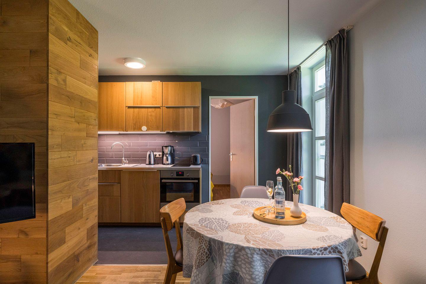 Diese charmante Erdgeschosswohnung kombiniert modernen, skandinavischen Stil mit einer klaren, reduzierten Einrichtung und einem harmonischen Farbkonzept. Mit zwei Schlafzimmern, einem gemütlichen Wohnzimmer mit Schlafsofa, einer voll ausgestatteten Küche und einem modernen Bad bietet die Wohnung eine durchdachte Raumaufteilung, die Funktionalität und Ästhetik perfekt verbindet.