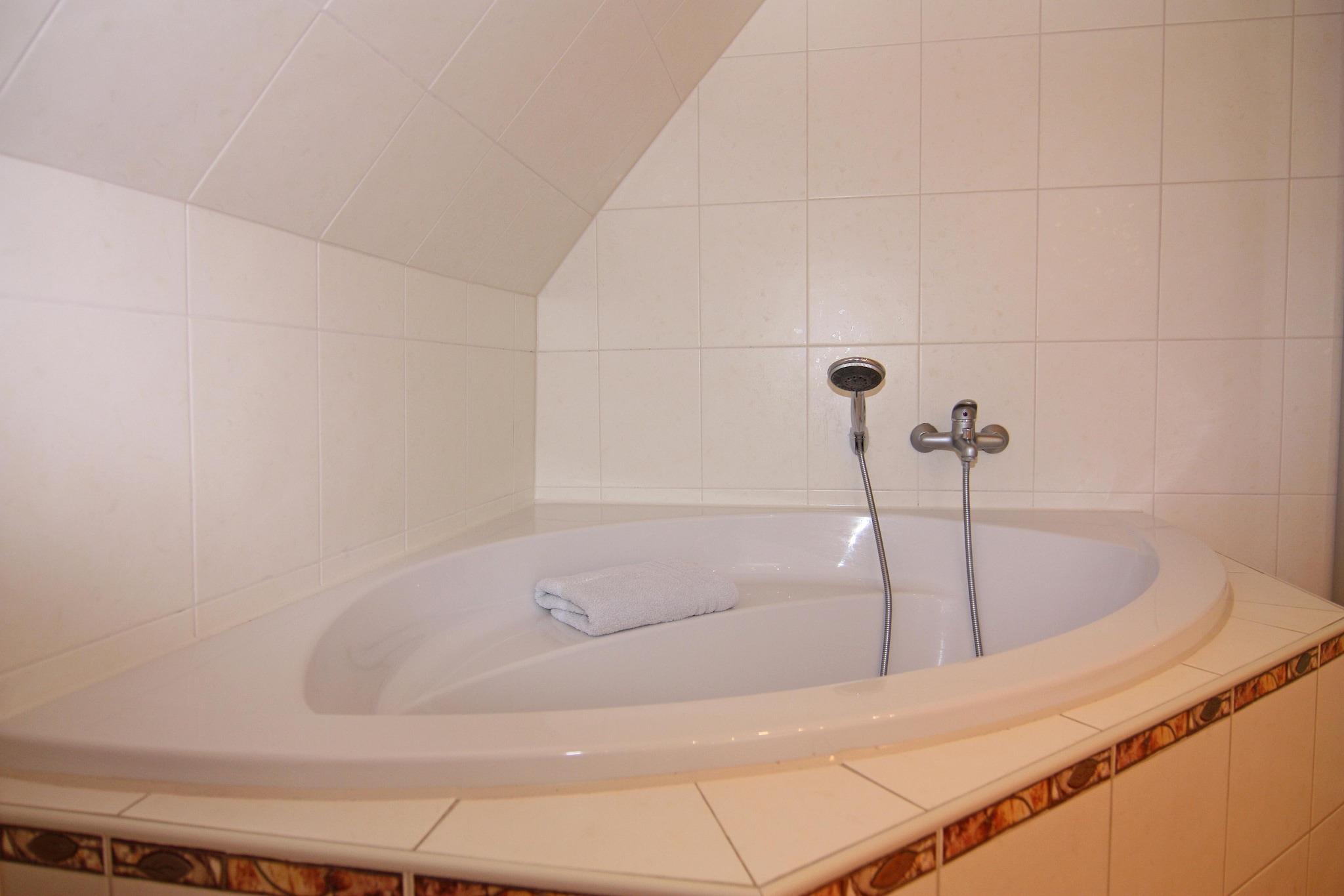 På 1. etage: (åbent køkken(spisebord, elkedel, brødrister, komfur(Komfur med fire kogeplader, glaskeramisk), emhætte, kaffemaskine, ovn, mikrobølgeovn, opvaskemaskine , køleskab(+ fryser)), stue / spisestue(Fjernsyn(parabol), pejs, radio, CD-afspiller, varme(olie)), soveværelse(dobbeltseng), soveværelse(enkeltseng), badeværelse(badekar, bruser, håndvask, toilet, føntørrer), Repos) terrasse, havemøbler, parkering, Håndklæder/sengelinned (ekstra gebyr)
