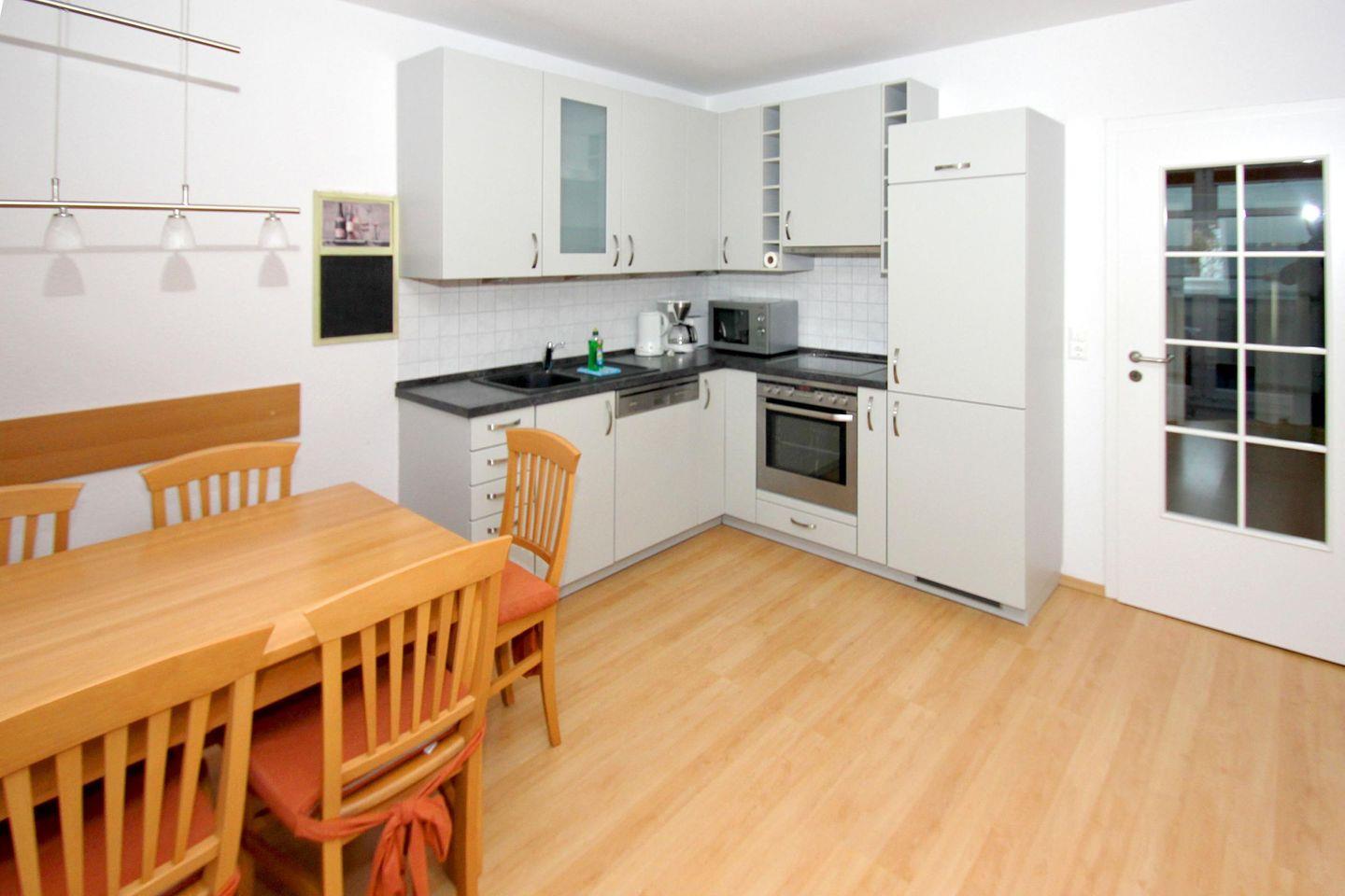 KÜCHE // offene Küche, 4-Platten Ceranherd, Spülmaschine, Kühlschrank mit Gefrierfach, Backofen, Mikrowelle, Toaster, Wasserkocher, Kaffeemaschine, reichlich Besteck, Geschirr und Küchenutensilien ++