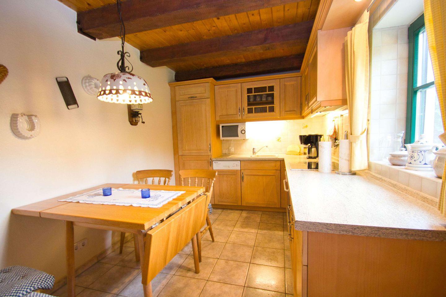 KÜCHE // separate Küche, 4-Platten Ceranherd, Kühlschrank mit Gefrierfach, Backofen, Mikrowelle, Geschirrspülmaschine, Toaster, Wasserkocher, Kaffeemaschine, reichlich Besteck, Geschirr und Küchenutensilien ++
