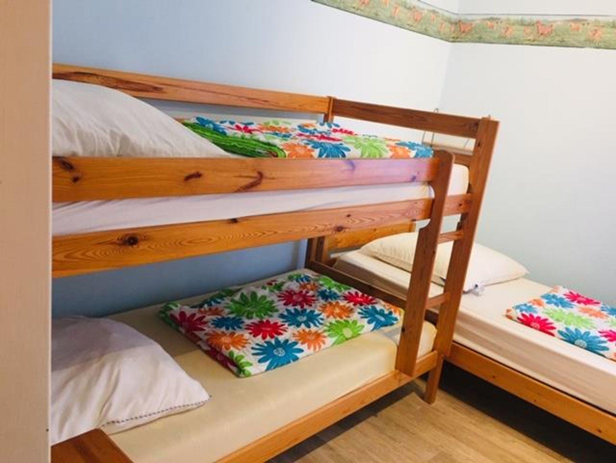 Die Ausstattung ist einfach und zweckmäßig. Es können bis zu 6 Personen übernachten - 1 2-Bett-Zimmer (2 Einzelbetten) und 4-Bett-Zimmer (2 Einzelbetten und 1 Doppelstockbett).