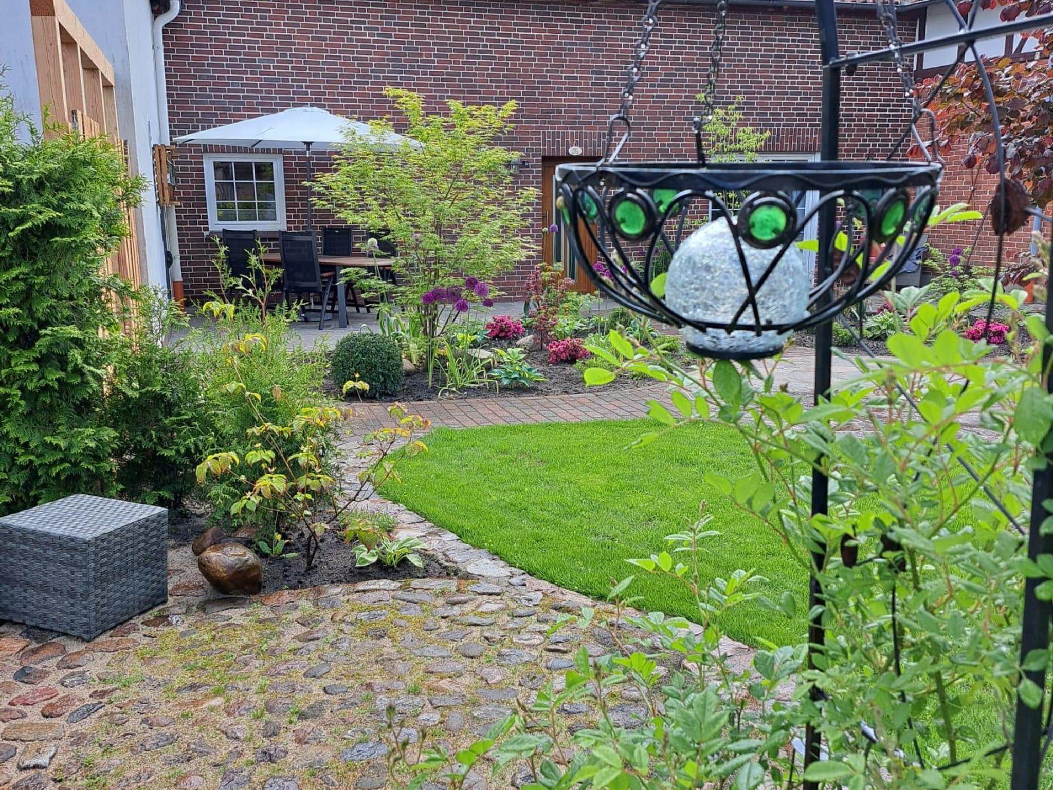Der zur Ferienwohnung zugehörige, liebevoll angelegte Garten mit eigener Terrasse, Rasenfläche und Lounge-Ecke lädt zum Verweilen ein und trägt zum erholsamen Urlaub bei. Ein eigener Parkplatz ist für unsere Feriengäste vorhanden. Der Ortskern mit Einkaufsmöglichkeiten ist fußläufig erreichbar. Von der Ferienwohnung aus sind zahlreiche Freizeitangebote, wie z. B. Heidepark Resort Soltau, Serengeti Park Hodenhagen, Weltvogelpark Walsrode, Wilseder Berg oder auch Designer Outlet Soltau bequem mit dem Auto erreichbar.