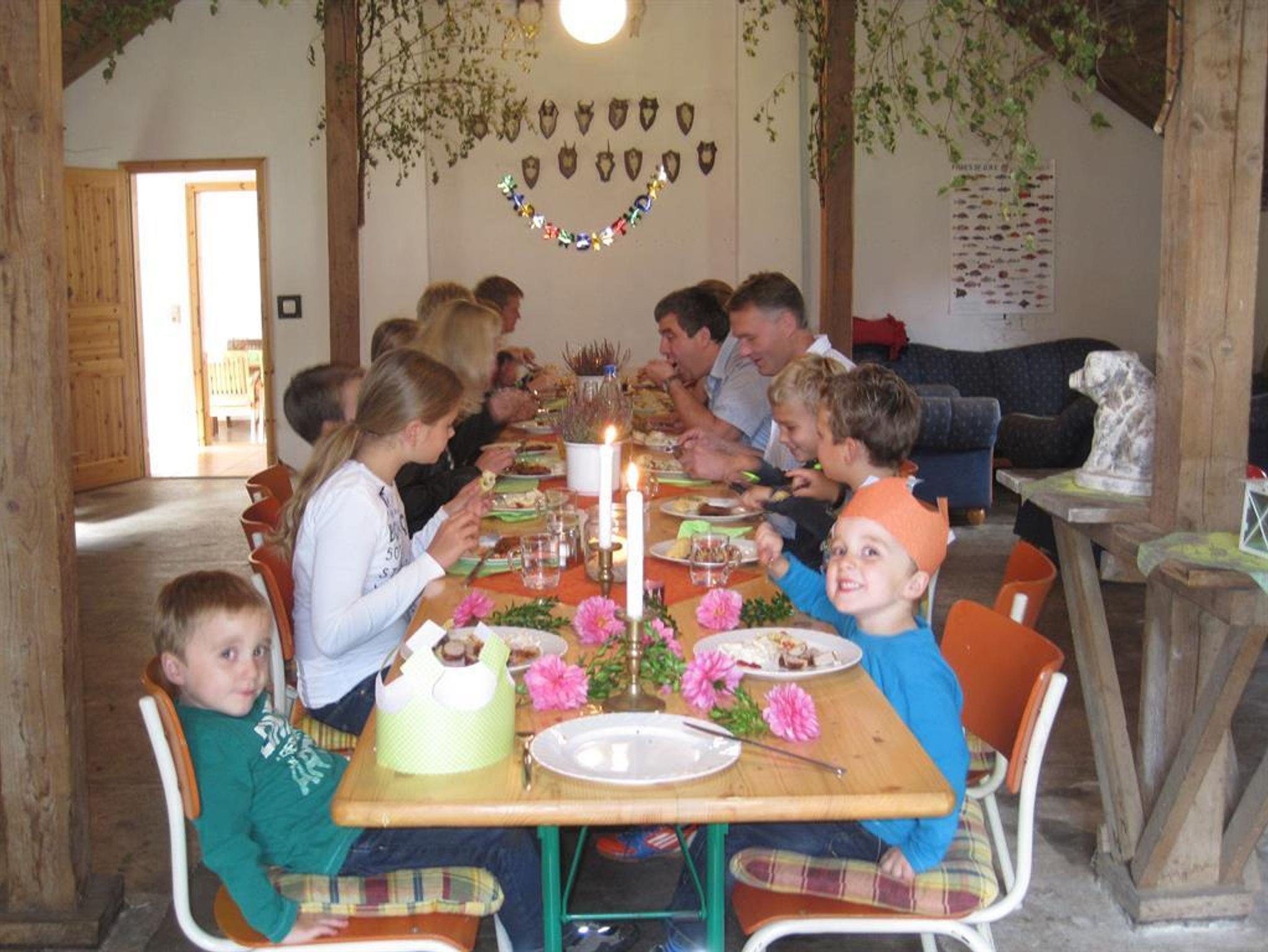 Hier gibt es viel zu entdecken und zu erleben - für die ganze Familie. Viele Tiere, wie Schweine, Katzen, Kaninchen und Hof-Hund Dana freuen sich auf Ihren Besuch. Entspannen Sie sich, während die Kinder Spaß haben, z.B. mit den Dino-Cars, in der Sandkiste, beim Tischtennis, Kickern, Basketball oder auf dem Trampolin.