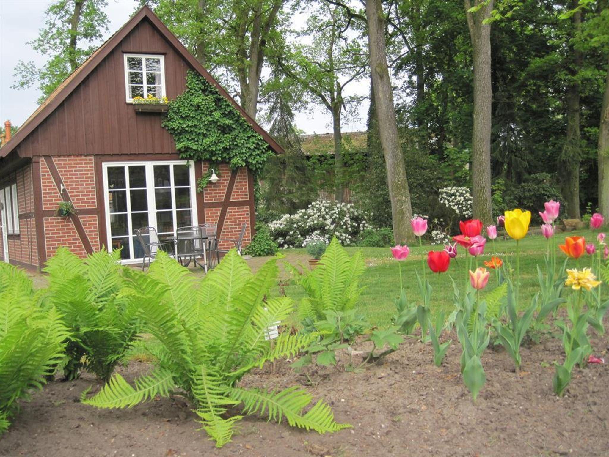 Das gemütliche Fachwerk-Ferienhaus, ein ehemaliges Backhaus, befindet sich separat in einem kleinen Park neben dem Hofgelände am Bauerngarten.