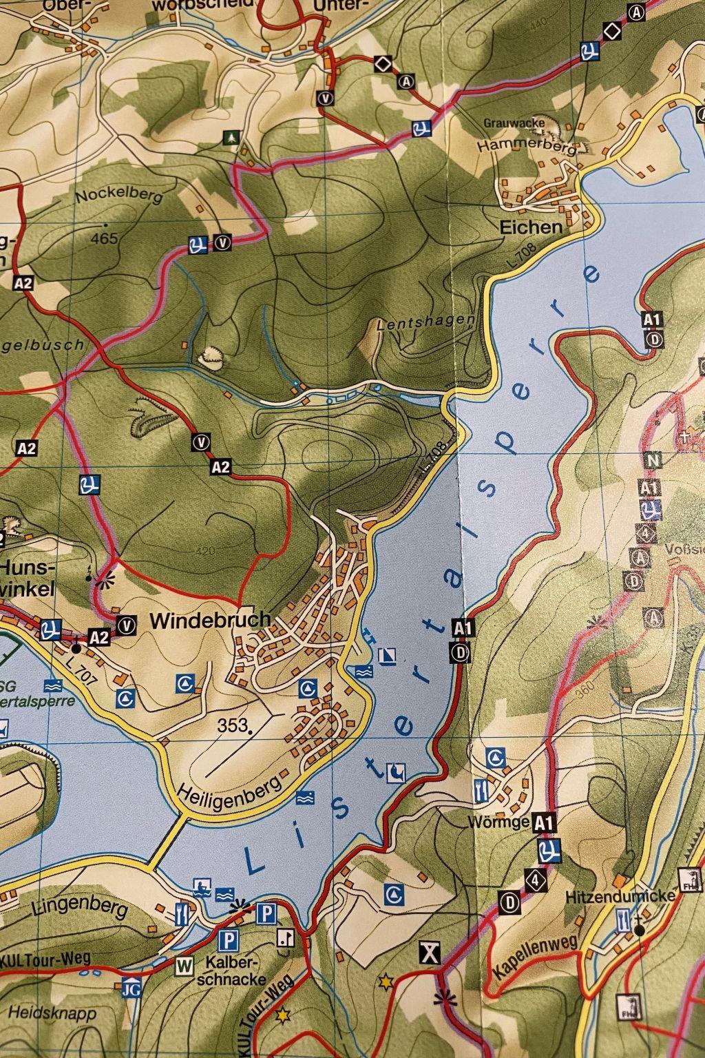 The holiday home on the Listersee is located in the holiday settlement "Heiligenberg", Meinerzhagen - Windebruch, with a view of the Listersee. The village of "Kalberschnacke" is on the opposite side of the lake, which is easy to reach by swimming. The Listersee beach is just a 5-minute walk away. Well located in terms of transport: Only approx. 5 minutes by car to the A45 motorway (Do.-F.furt, with connection to A4 Cologne). Shopping and errands etc. in the nearby towns of Attendorn, Olpe or Meinerzhagen (each approx. 10 minutes away by car).