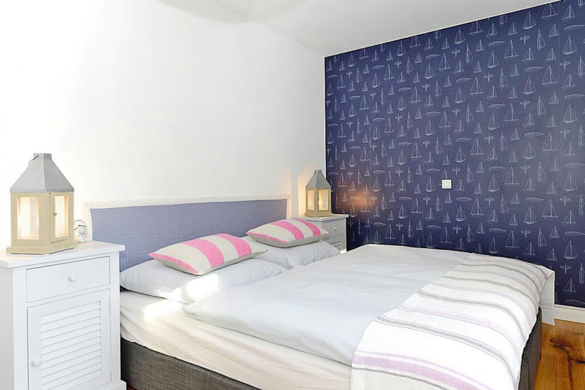 På Wyker Südstrand: huse bygget i 2014 i et meget godt boligområde, få minutters gang fra havet og stranden. Inden for hvert hus er der to rummelige og helt separate boligenheder, som hver er indrettet næsten identisk. Dit domicil strækker sig over to etager og er beliggende i stueetagen og kælderen. Bybilledet i Wyk auf Föhr er præget af hyggelige frisiske huse og snoede gader. Utallige restauranter og caféer med havudsigt giver mulighed for at nyde den vidunderlige ro på en ø. Den lille havneby med dens kilometerlange sandstrand og parker med til dels eksotiske planter er et perfekt sted at flygte fra hverdagen og virkelig få ny energi. Detaljer: Forbrugsbaserede energiomkostninger, sengelinned, håndklæder, slutrengøring, WiFi Aktiviteter i nærheden: Den frisiske nordsøluft på Föhr vækker indre styrke og giver dig virkelig lyst til at træne. Tendensen her går i retning af aktiv ferieplanlægning: på Föhr kan sportsentusiaster vælge mellem mange forskellige sports- og aktivitetsprogrammer Hos Golfclub Föhr kan du også spille som gæst, men som greenfeespiller skal du have et klubkrav på mindst 54 og skal du er medlem af en golfklub tilknyttet de DGV Greenfee spillere med et krav klub af 46-54 skal påbegyndes mellem 08:00 og 10:00 eller på mindre travle tidspunkter i eftermiddag. du kan spise og nyde hvert hjørne af øen: regional eller international, eksklusivt eller ned-på-jorden køkken, hvad enten i Nieblum eller Süderende, Midlum eller Wyk - der er noget for enhver smag se frem til traditionelle frisiske retter, men ikke kun restauranter og cafeer tilbyder delikatesser, også mange!
