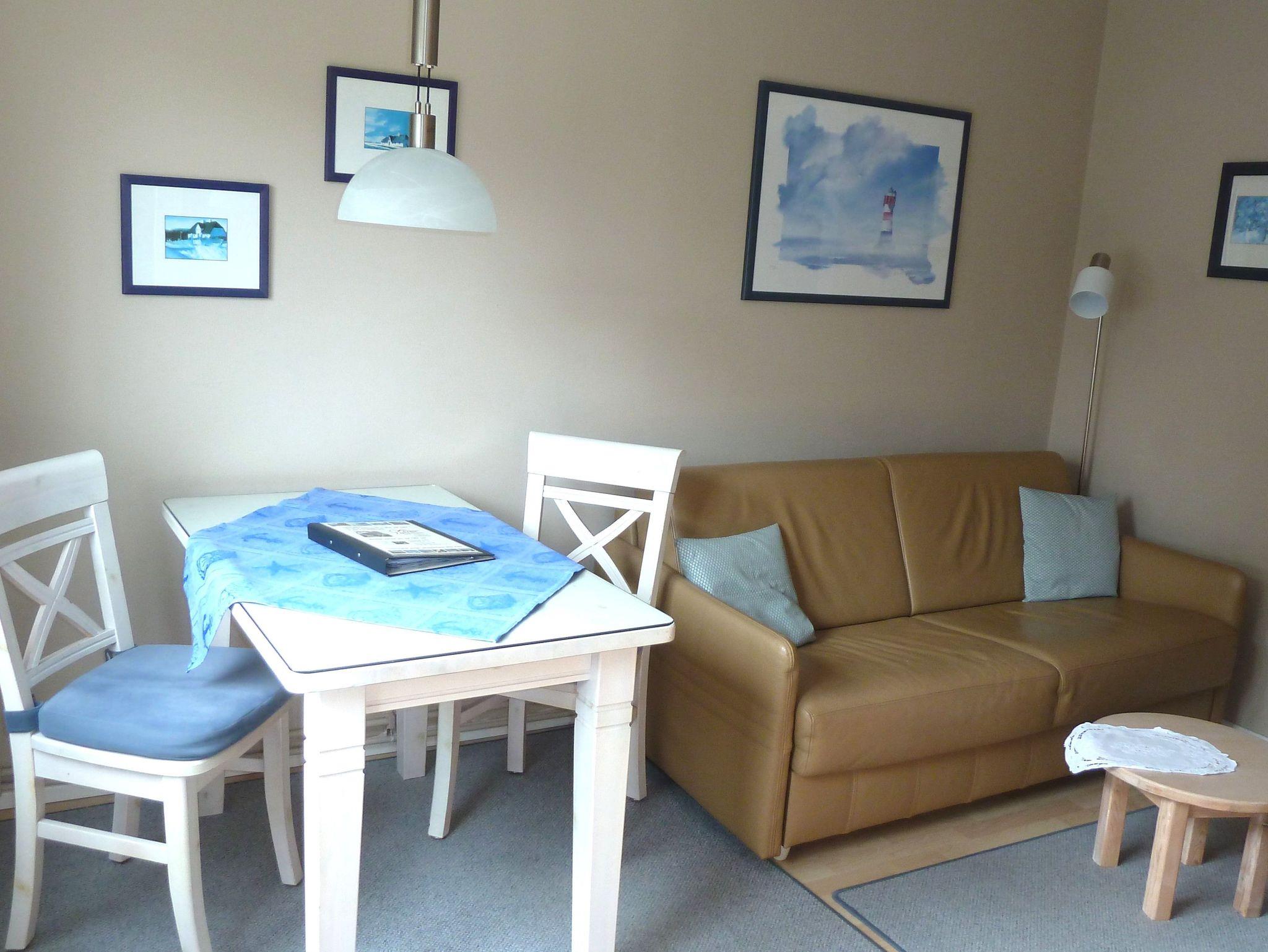 Die Wohnung verfügt über eine kleines gemütliches Wohnzimmer mit Essecke, einer separate Küche, einem Duschbad und einem Schlafzimmer mit Doppelbett.