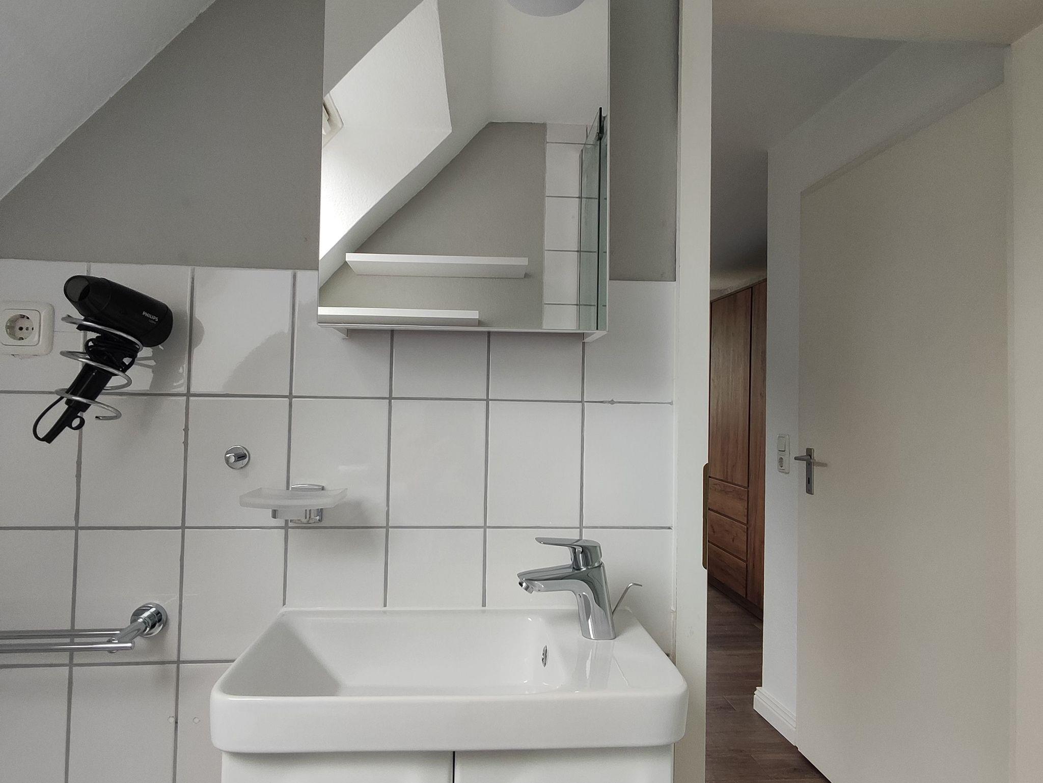 Sanitär: Föhn, Handtücher.