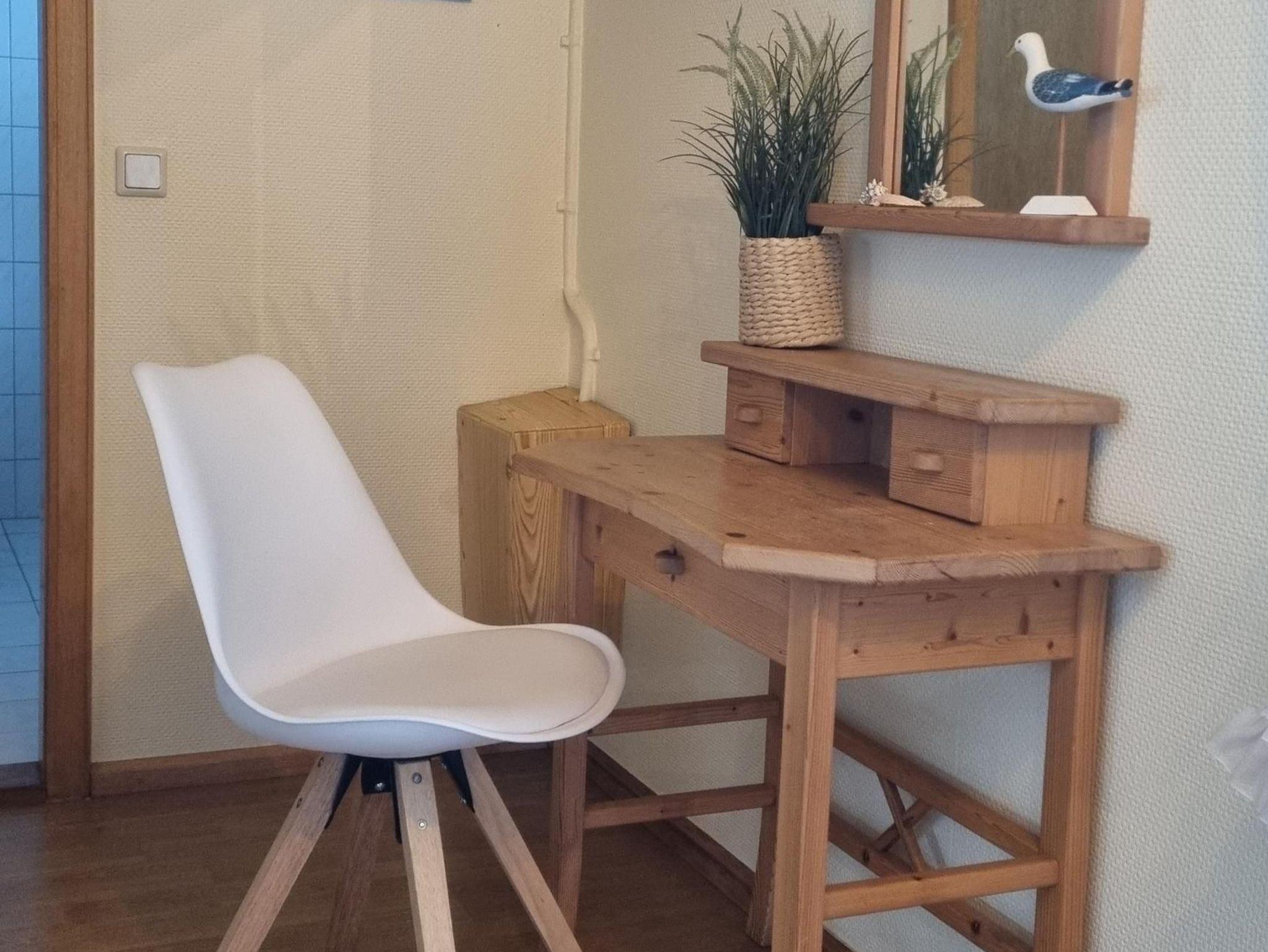 --Mach mal Foehr Angebot--Die ebenerdige Wohnung Austernfischer in Nico´s Hüs liegt ruhig am Wyker Stadtrand. In Nico´s Hüs befindet sich auch die Wohnung Seepferdchen, nebenan. Beide mit seperaten Eingängen und Gartenbereichen. Das Haus liegt ca. 300m vom beliebten Südstrand entfernt und das Zentrum ist fußläufig in ca. 20 Minuten erreichbar. Die Wohnung ist mit hellem, warmen Laminat Fussboden ausgelegt.Es gibt ein grosses Schlafzimmer, mit viel Stauraum , ein kombiniertes Wohn-und Schlafraum mit Zugang zur überdachten Terrasse,sowie einen getrennten Dusch -und Toilettenbereich. Das Grundstück ist sichtgeschützt und in unmittelbarer Waldnähe.Beiden Wohnungen stehen im Keller eine Waschmaschine zur Verfügung