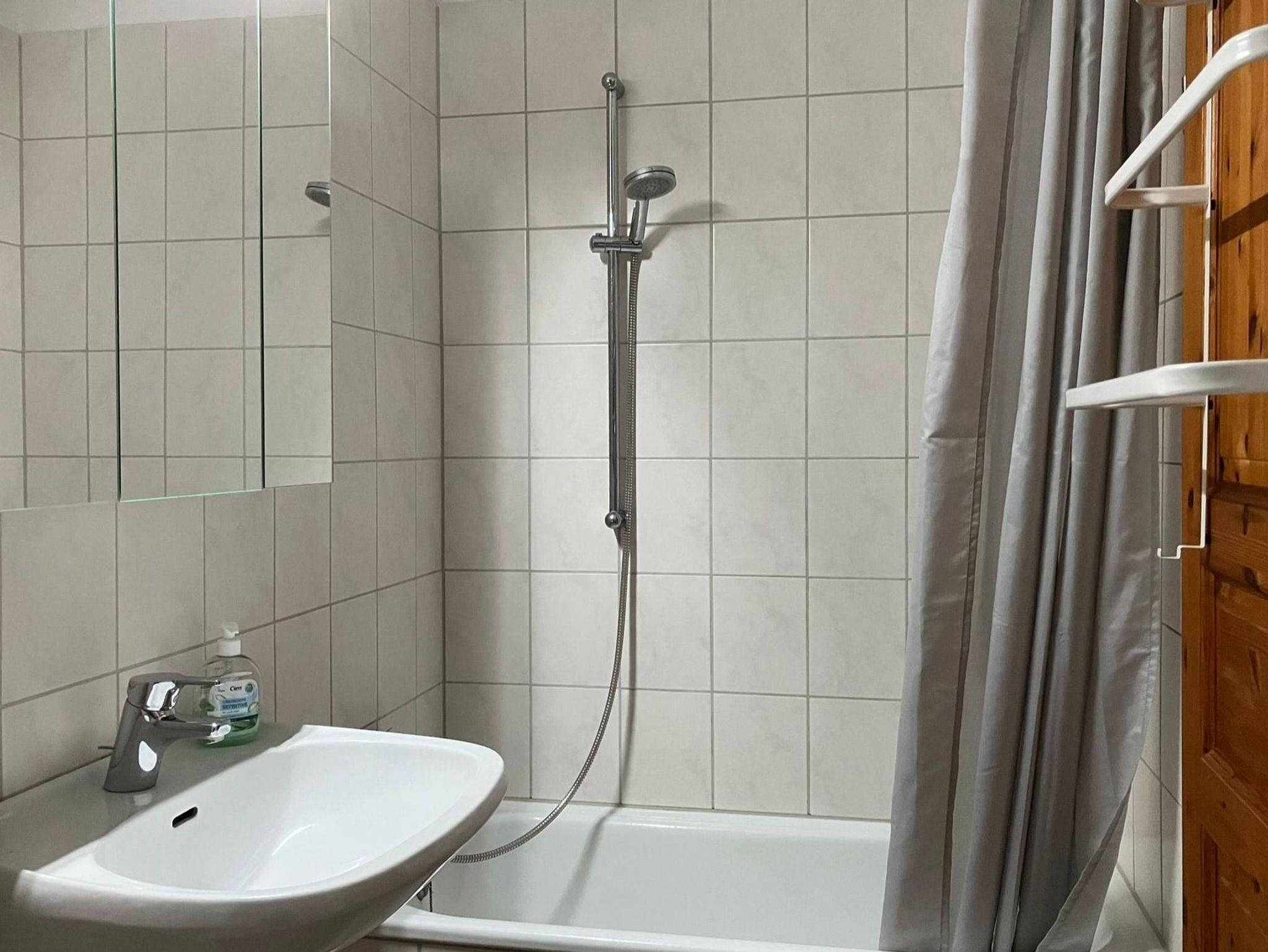 Raumaufteilung: 1 Schlafraum (1 Doppelbett), 1 Wohn-/Esszimmer, 1 Flur, 1 separate Küche, 1 Badezimmer mit Duschwanne.