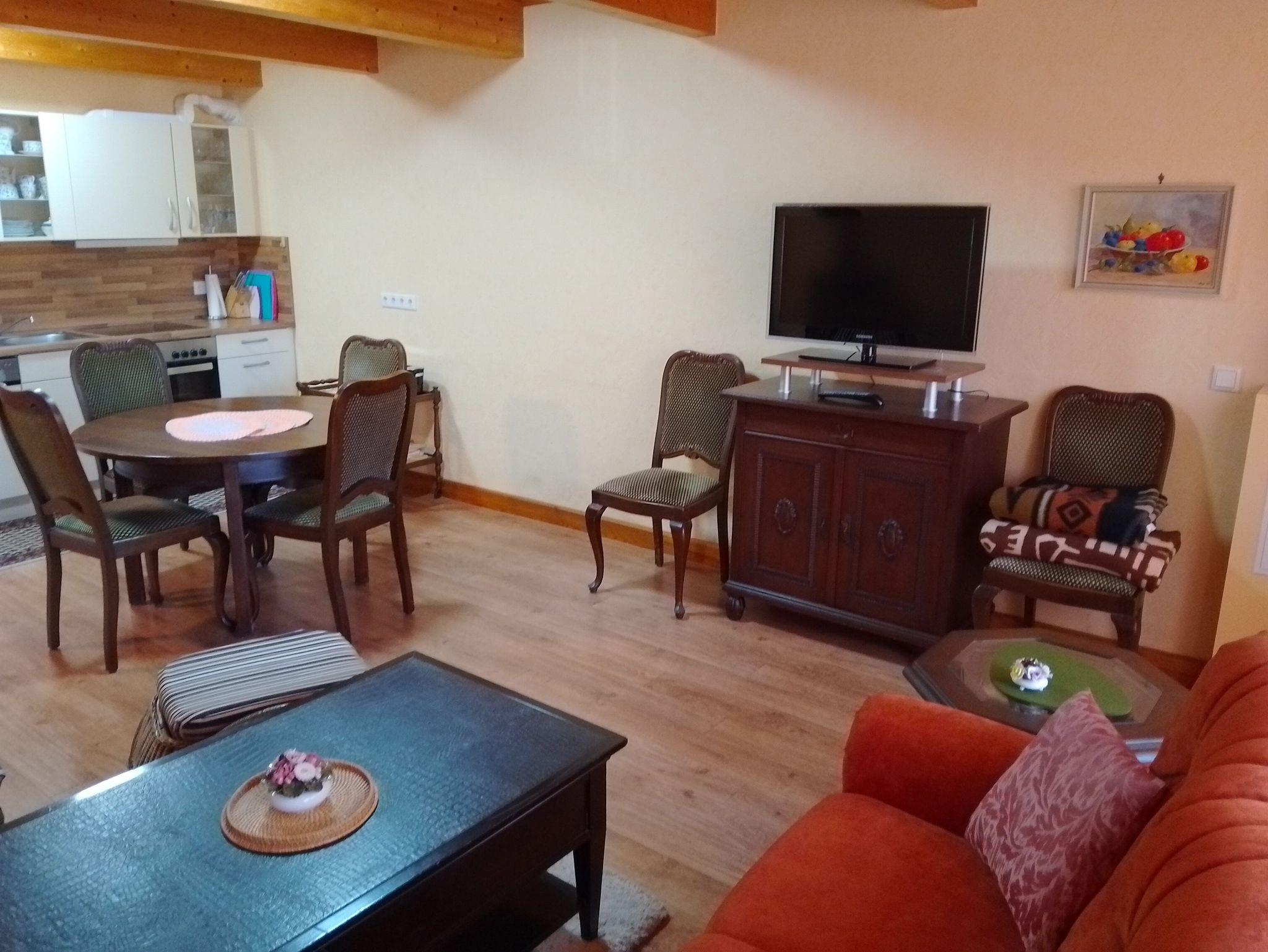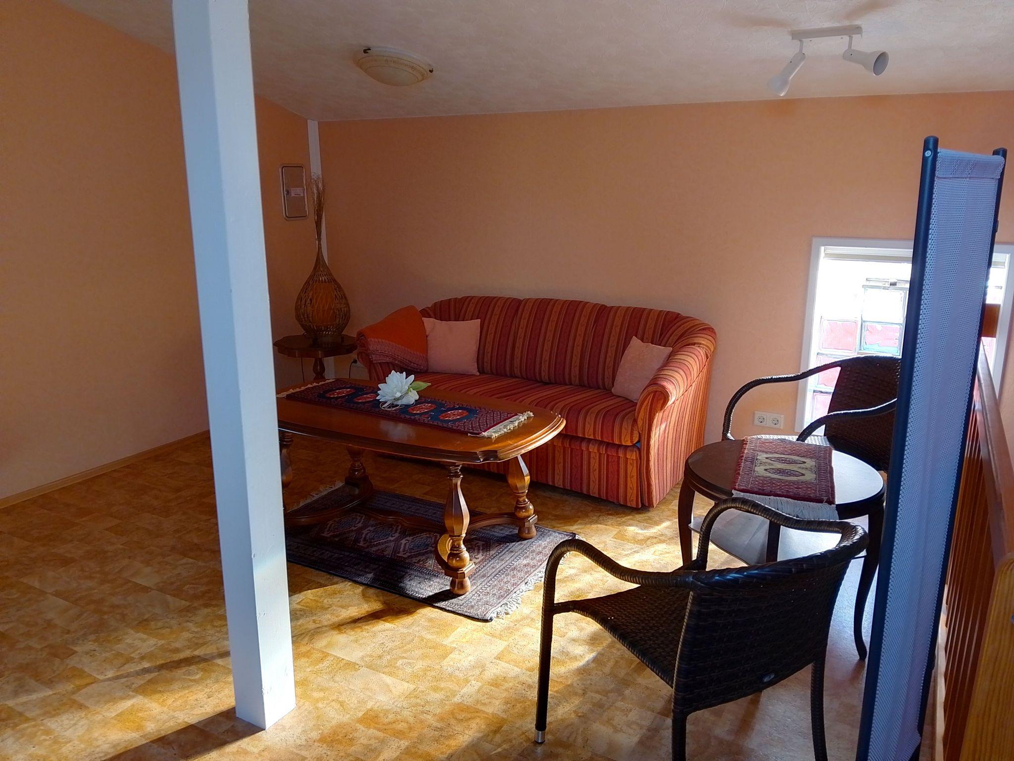 Die gemütliche, zentral gelegene Ferienwohnung erstreckt sich über Erdgeschoß und erstes Obergeschoss.