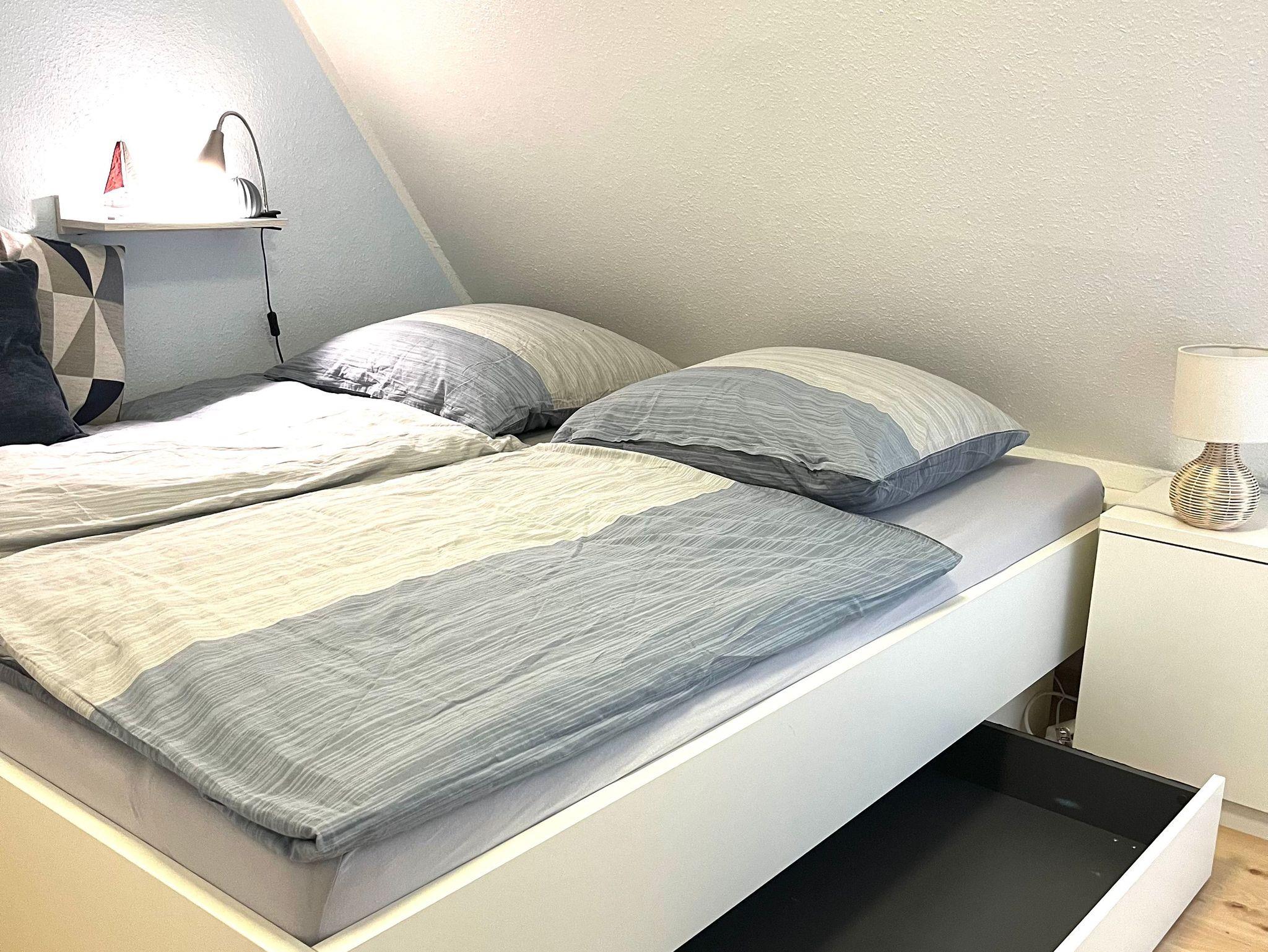 Diese gemütliche, hell eingerichtete Ferienwohnung unter Reet bietet Platz für zwei bis vier Personen. Die Obergeschosswohnung ist ca. 50m² groß. Die beiden Schlafzimmer sind mit zwei Einzelbetten ausgestattet, in einem Schlafzimmer können die Betten zu einem Doppelbett zusammengestellt werden. Das Wohnzimmer mit einer integrierten Küche lädt zum gemeinsamen Kochen ein. Ein Duschbad ist vorhanden. Ein schöner Außensitzplatz mit Strandkorb gehört zur Ferienunterkunft dazu. Natürlich ist auch ein PKW-Stellplatz direkt am Haus vorhanden.