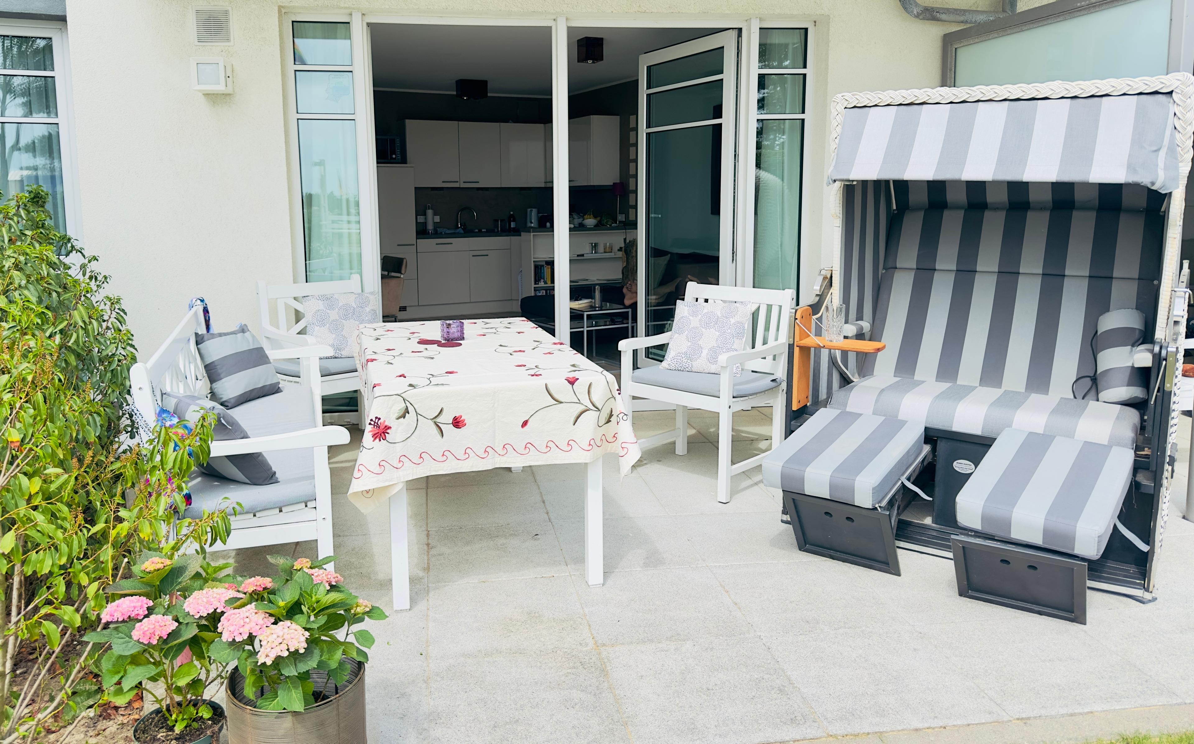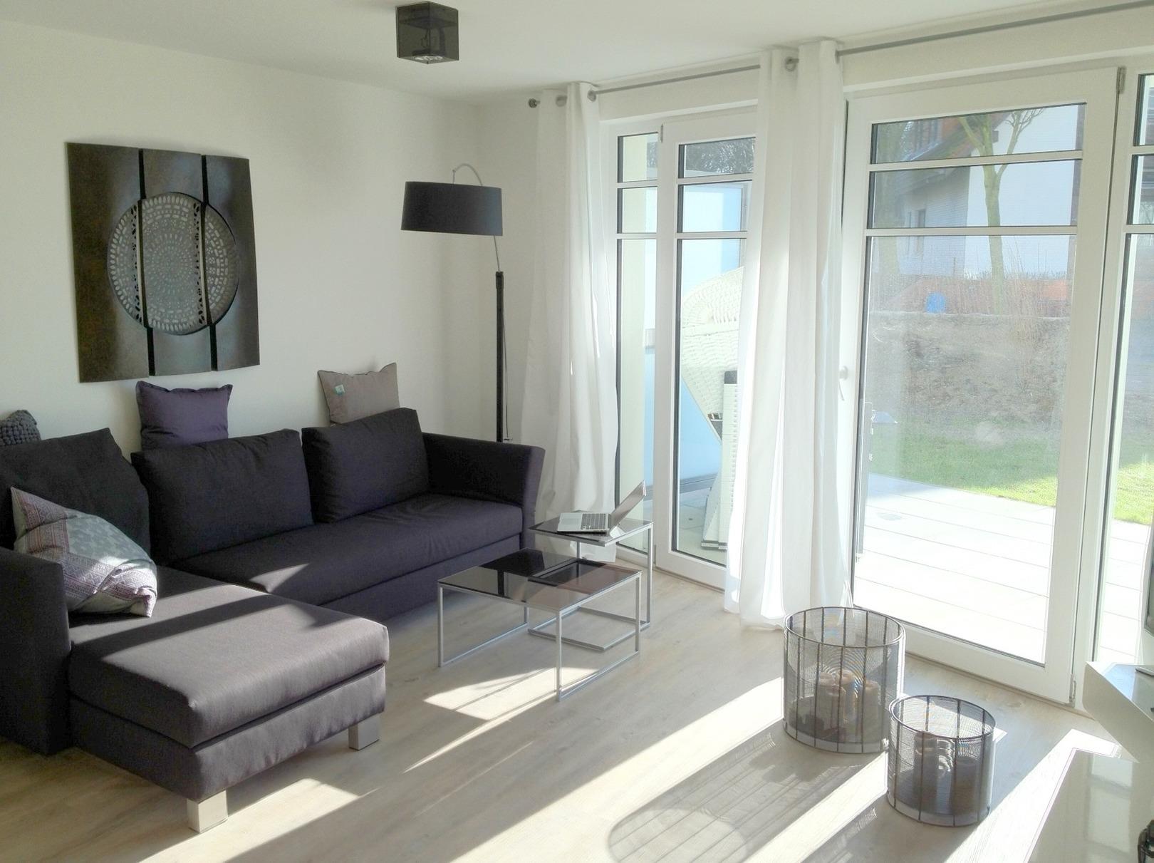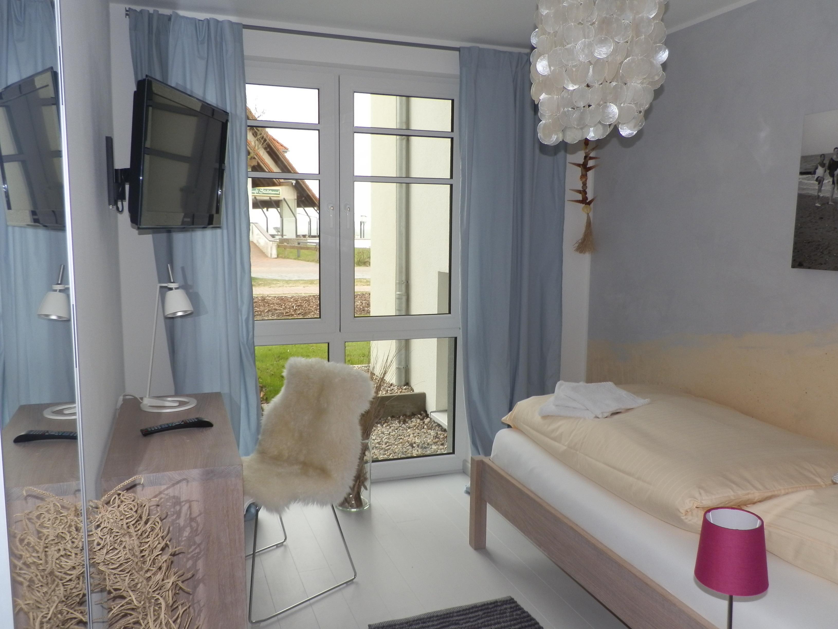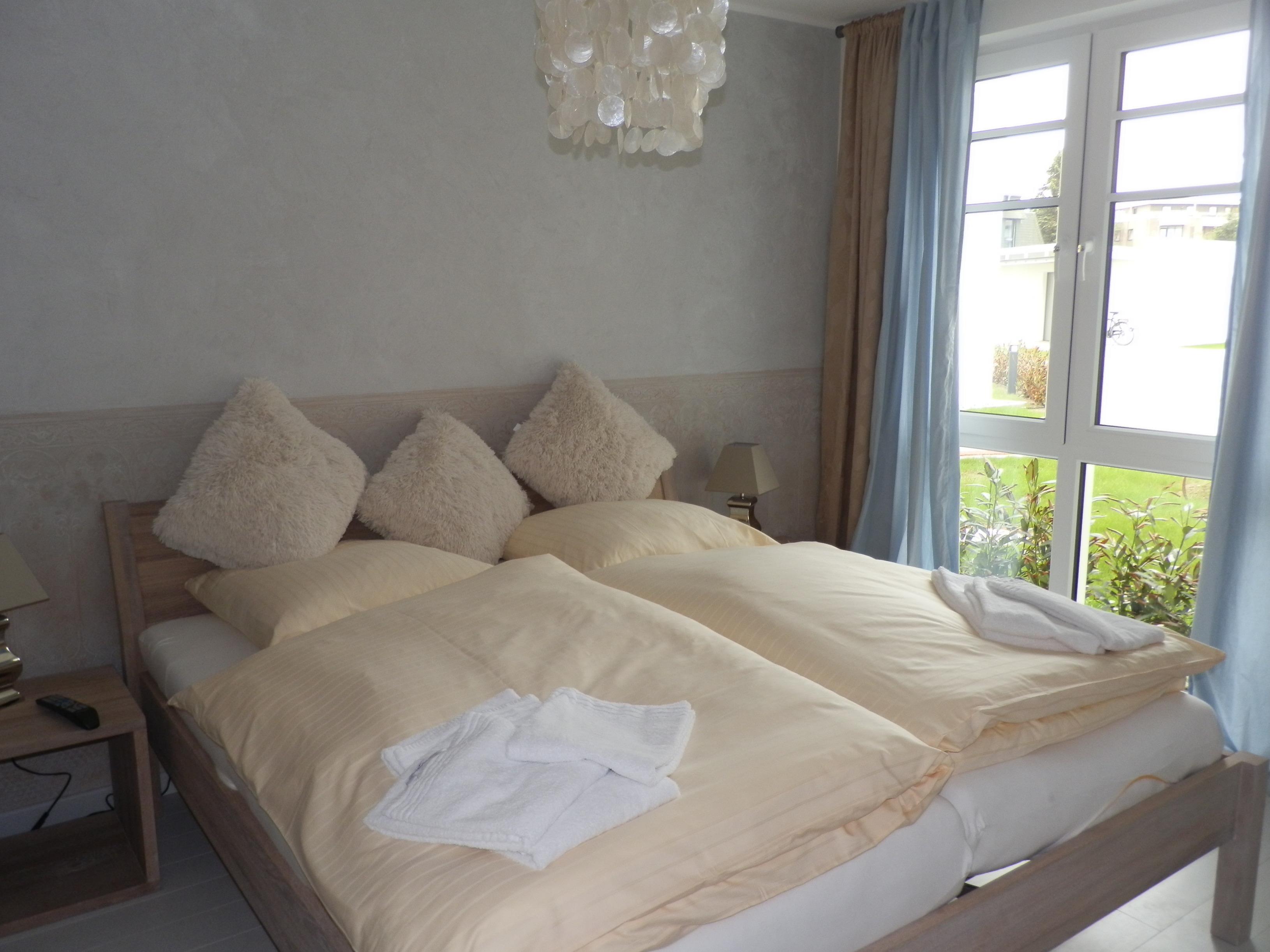 Die exklusiv ausgestattete und helle Wohnung ist sehr gemütlich und verfügt über 2 Schlafzimmer, 1 Wohnzimmer mit integrierter moderner Küchenzeile mit Backofen und Microwelle , sowie ein Badezimmer mit ebenerdiger Dusche. Ein W-LAN Anschuss steht Ihnen kostenfrei zur Verfügung. In jedem Zimmer finden sie ein TV-Gerät. Sauna und Waschmaschinen, sowie ein Trockner stehen gegen Gebühr im Hauskomplex bereit. Natürlich verfügt Ihre Wohnung über Bügeleisen und -brett, sowie einen Wäscheständer. Auf dem Grundstück finden Sie Unterbringungsmöglichkeiten für Ihre Fahrräder und einen kostenfreien Parkplatz.
