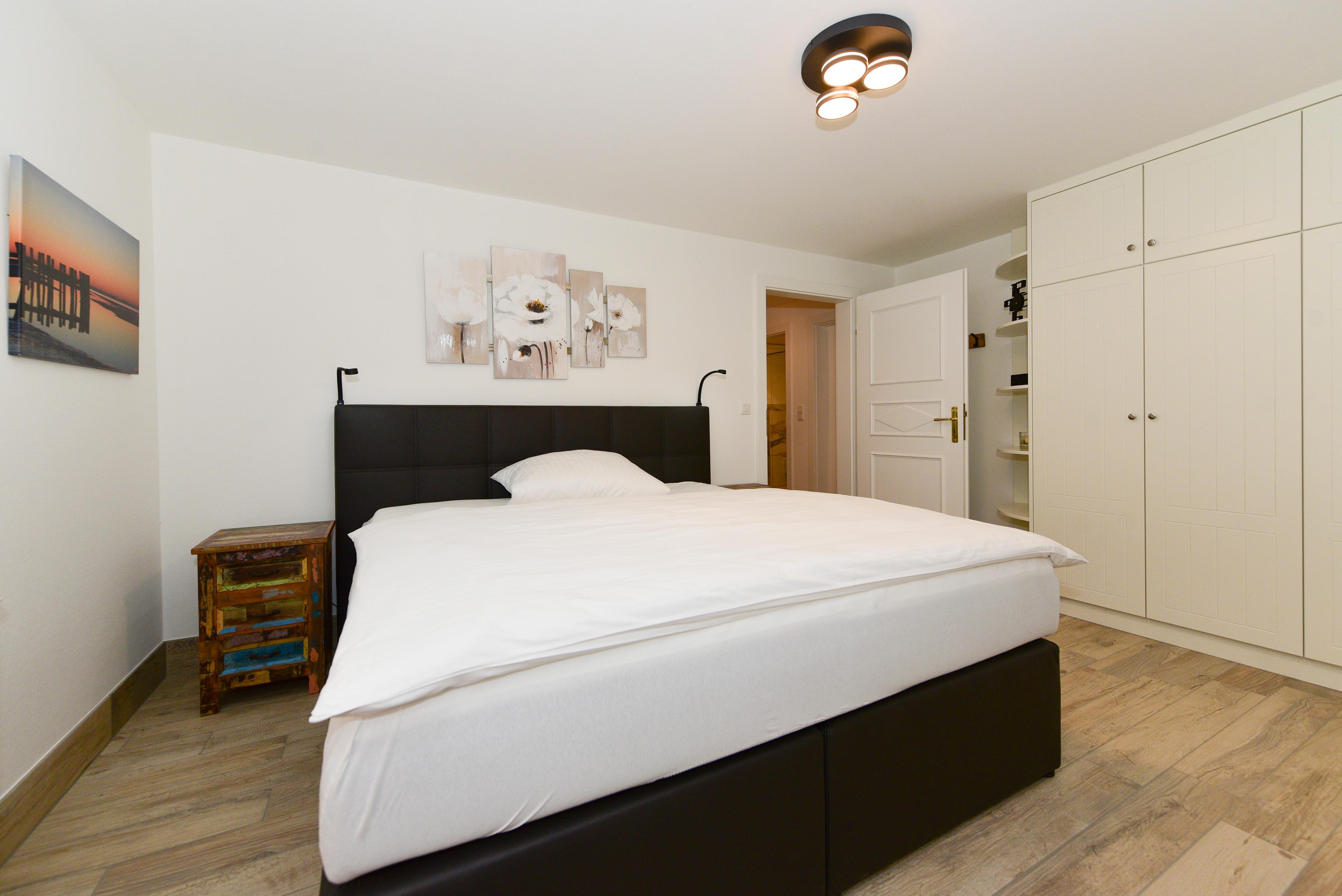 Ein drittes Schlafzimmer mit Doppelbett befindet sich im charmanten Souterrain - ein Rückzugsort mit besonderem Flair.