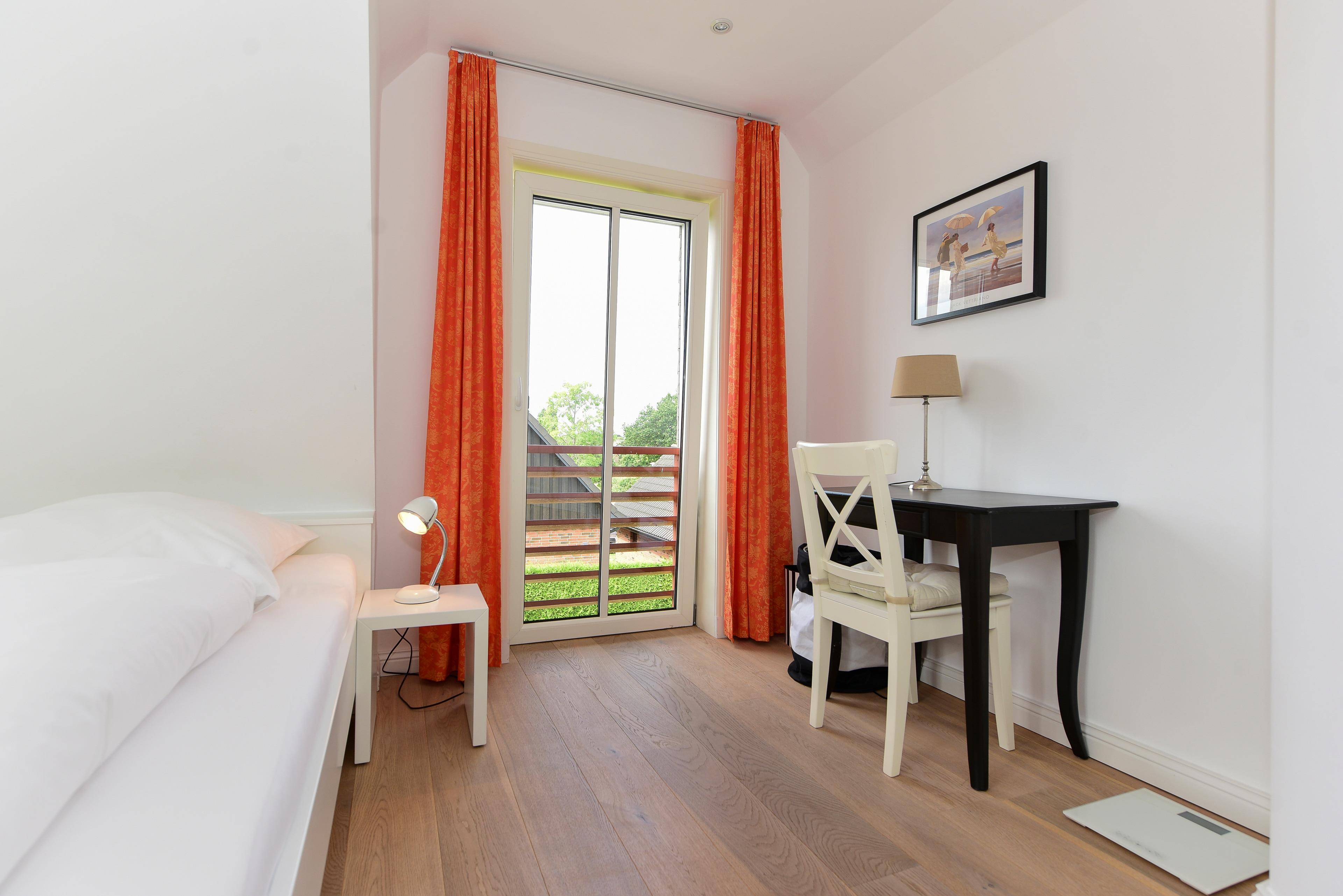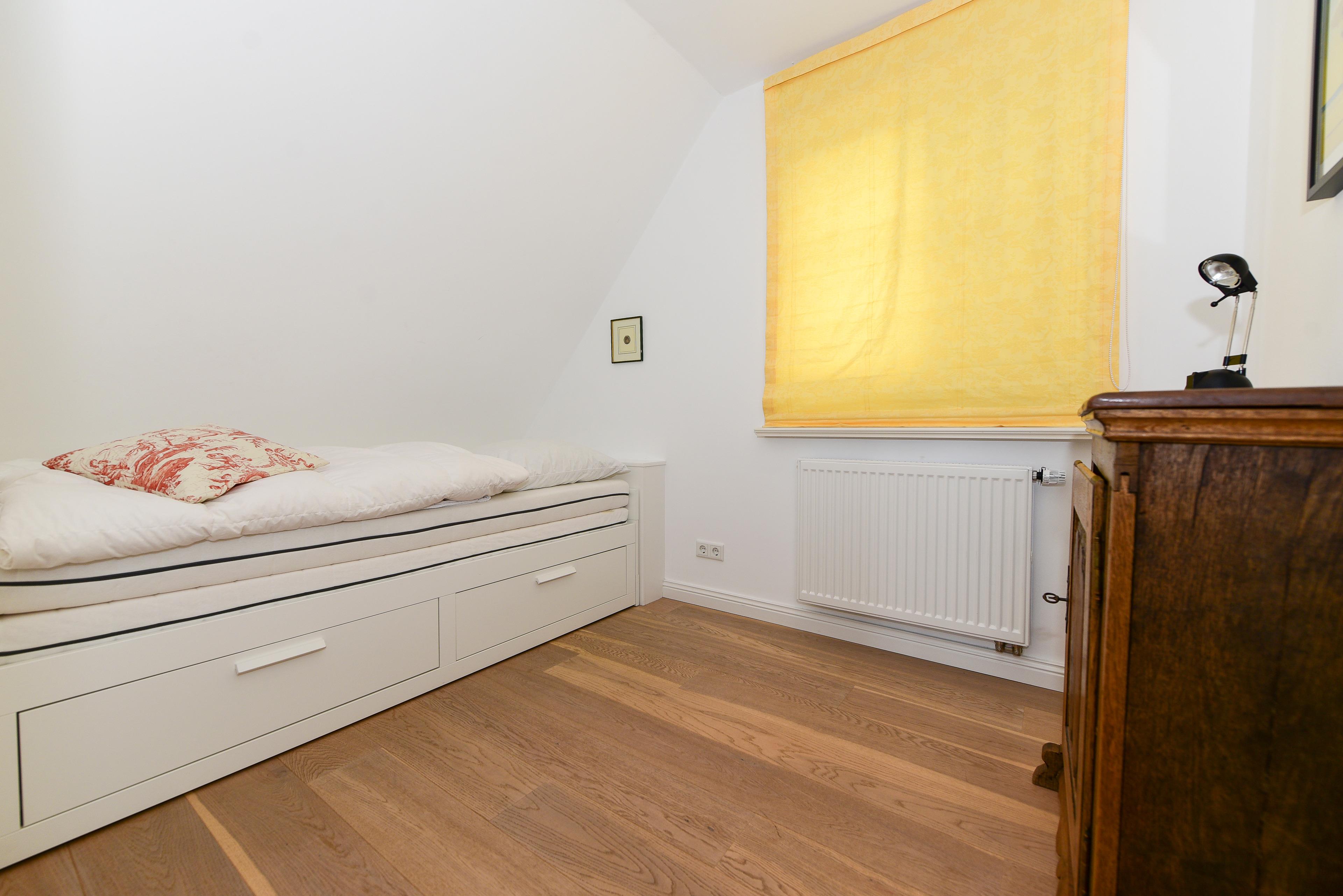 Das Haus befindet sich in einer ruhigen Nebenstraße, nur wenige Gehminuten von der Innenstadt von Wyk entfernt.