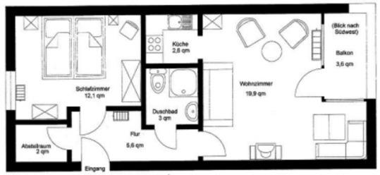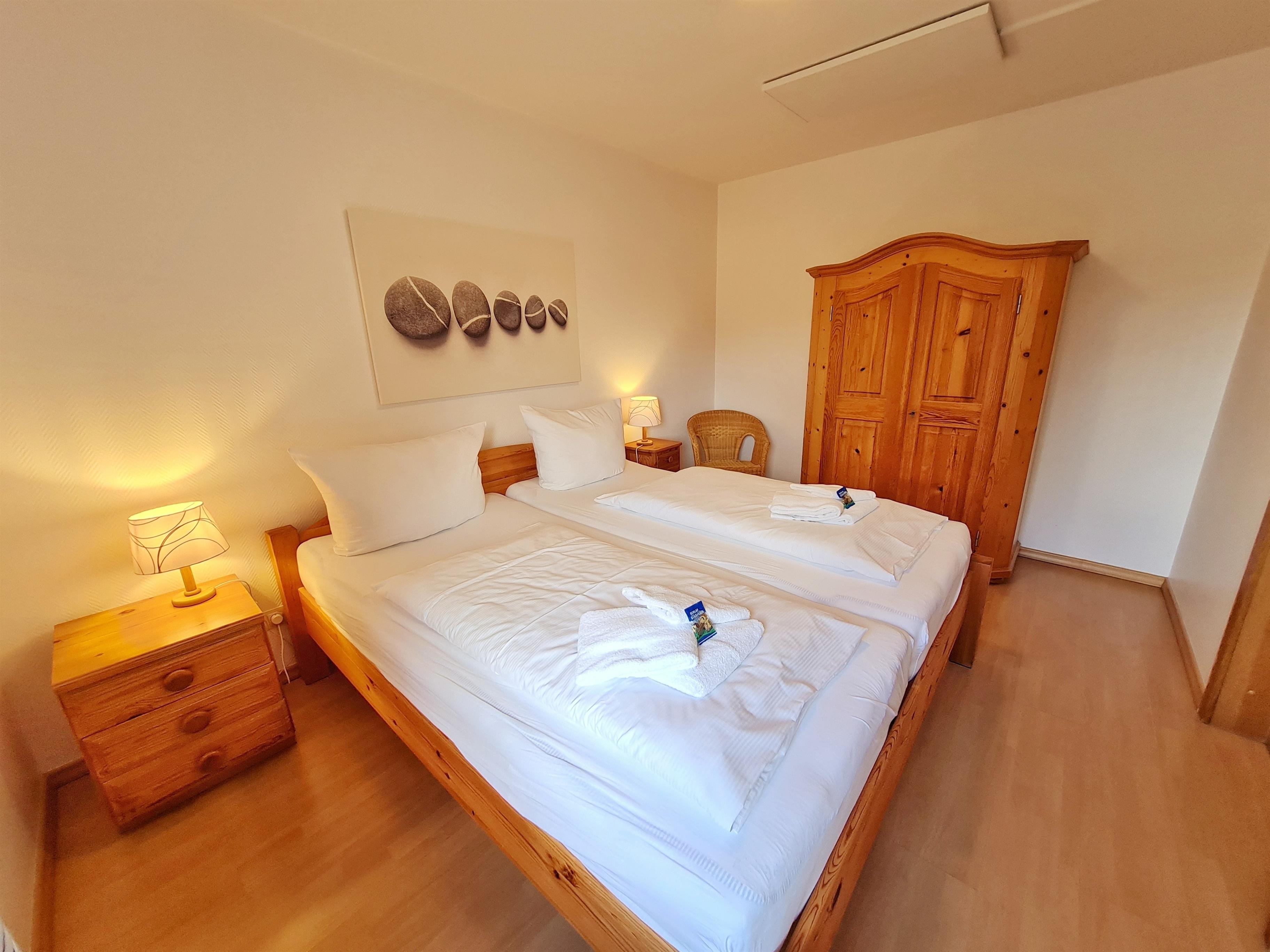 Das Appartementhaus liegt in einer ruhiger Wohnlage in der Mitte von Wyk. Die Innenstadt und der Strand sind zu Fuß in ca. 10 Minuten zu erreichen. Sportanlagen, Bäcker, Kinderspielplatz, Trimmpfad und weitere Einkaufsmöglichkeiten sind ebenfals in wenigen Gehminuten zu erreichen. Die Nichtraucherwohnung befindet sich in der 1. Etage, ist über eine Gallerie zu erreichen und daher vom Treppenhaus ruhig gelegen. Die Wohnung hat eine Größe von ca. 46m² und bietet ein Schlafzimmer, eine separate Küche, Bad/WC, Abstellkammer, Flur sowie ein Wohn- Esszimmer mit direktem Zugang zum Balkon. Im Wohnzimmer steht zudem ein Schlafsofa. Für einen gemütlichen Abend steht Ihnen ein Fernseher zur Verfügung und der Süd-Westbalkon bietet frische Luft und Entspannung. Die gut ausgestattete Küche besitzt unter anderem einen Kühlschrank, eine Mikrowelle, einen Herd zum Kochen und sogar eine Spülmaschine. Zu der Ferienwohnung gehört auch ein PKW-Stellplatz. Die Abstellplätze für Fahrräder befinden sich in unmittelbarer Nähe zum PKW-Stellplatz und Hauseingang.