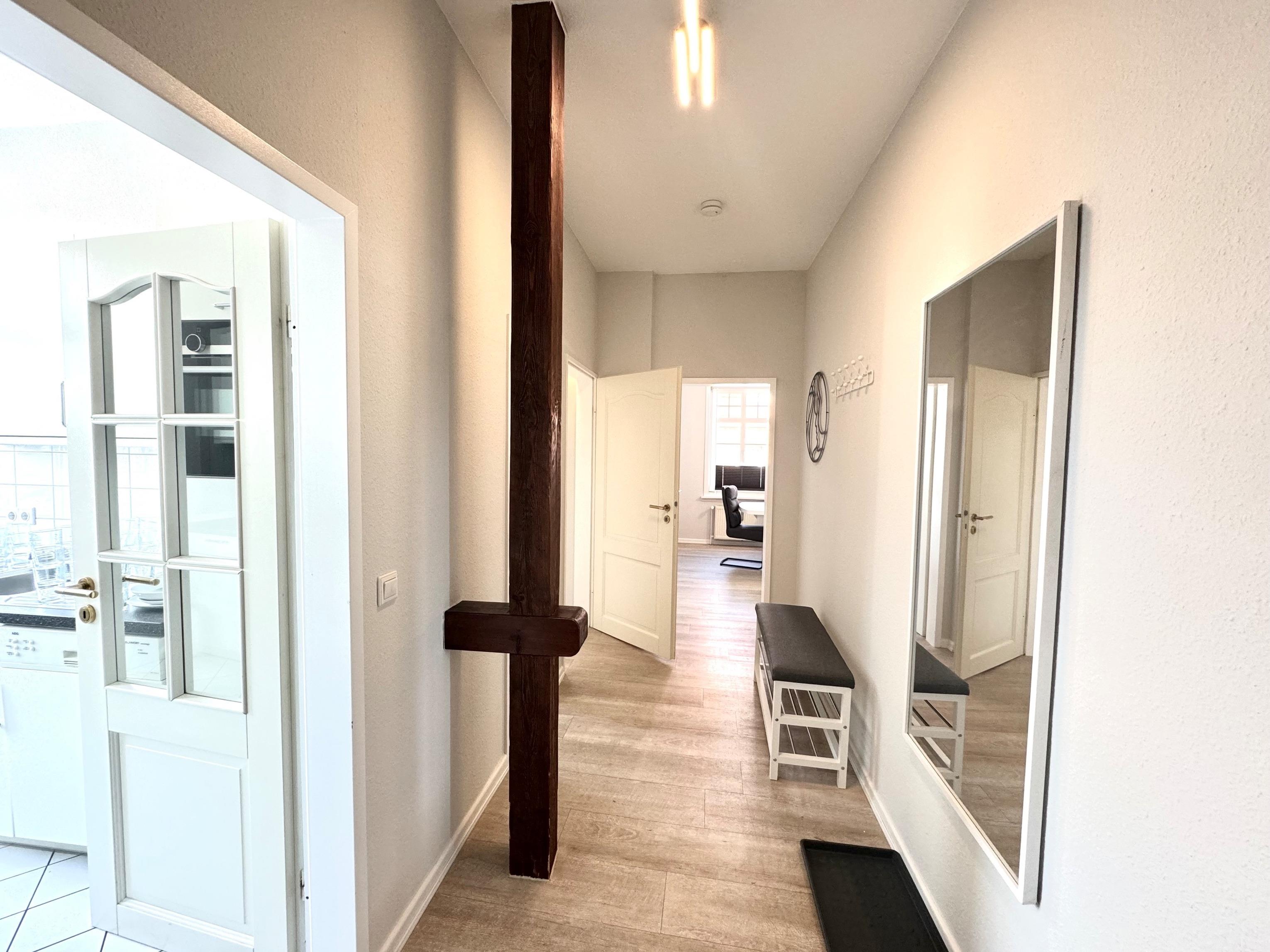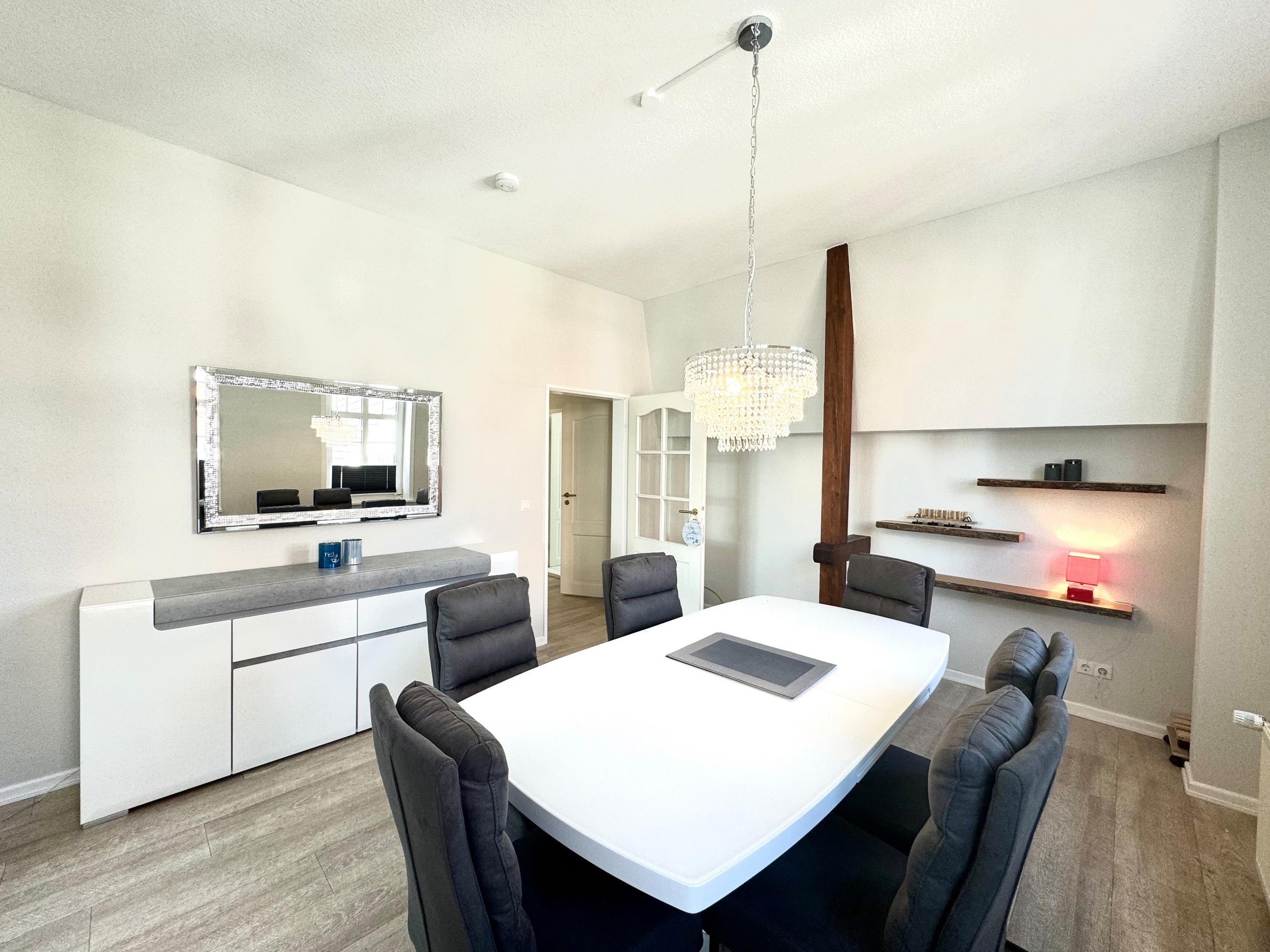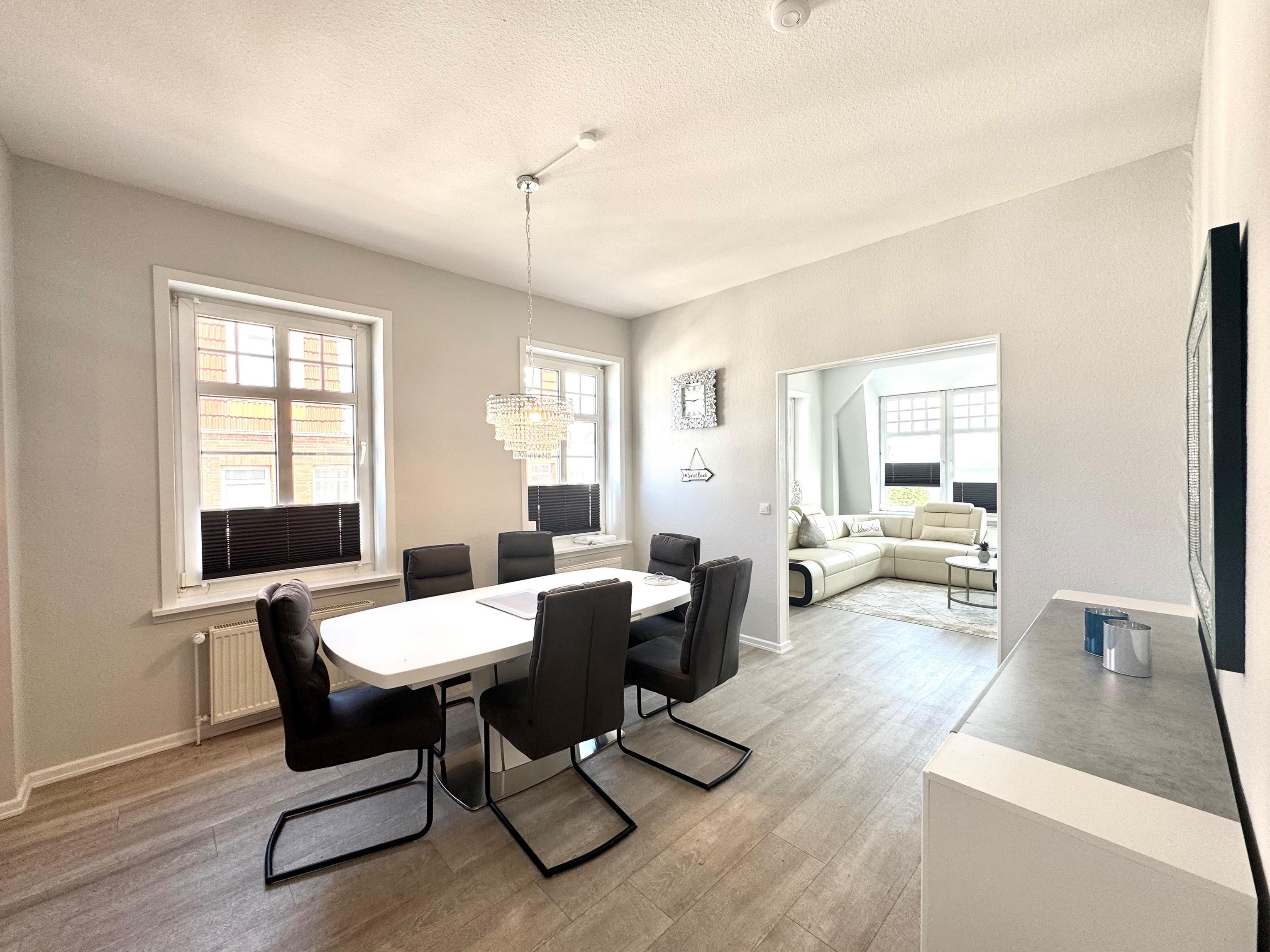 Schon beim Eintreten spüren Sie die entspannte Atmosphäre dieser besonderen Wohnung: helle Räume, zeitgemäßes Design und liebevoll ausgewählte Details schaffen ein Ambiente, in dem man sofort ankommt und den Alltag hinter sich lässt. Große Fenster lassen viel Licht herein und geben den Blick frei auf das stetig wechselnde Spiel von Himmel und Meer.