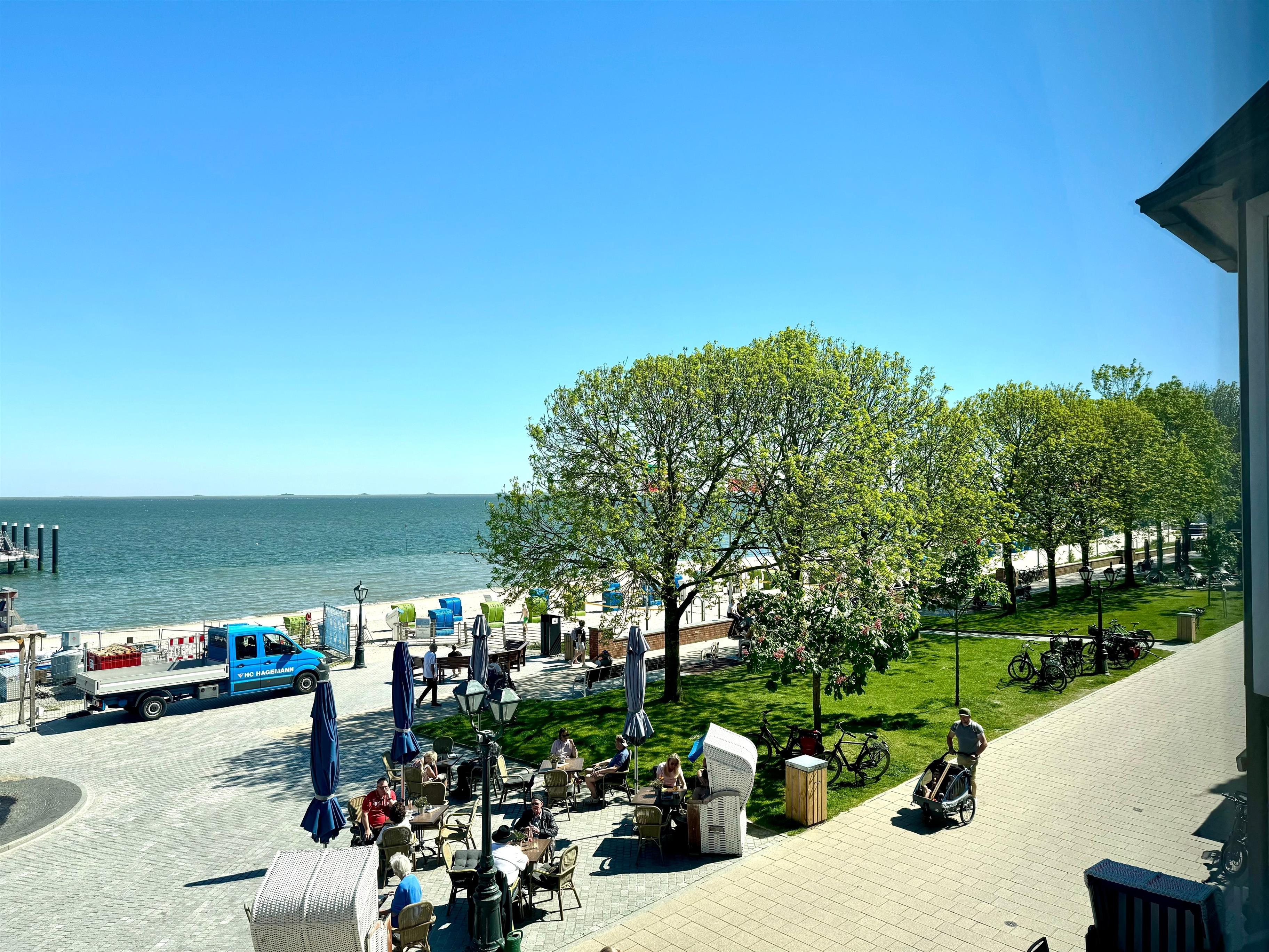 Cafés, Restaurants, eine Pizzeria, Bäckerei sowie das Café & Restaurant Die Insel befinden sich in unmittelbarer Nähe. Kleine Boutiquen und Geschäfte laden zum Bummeln ein. Einkaufsmöglichkeiten sowie ein kostenfreier Pkw-Großraumparkplatz liegen in etwa 0,5 km Entfernung. Auch Ihr Hund ist herzlich willkommen (1 Hund pro Wohnung).