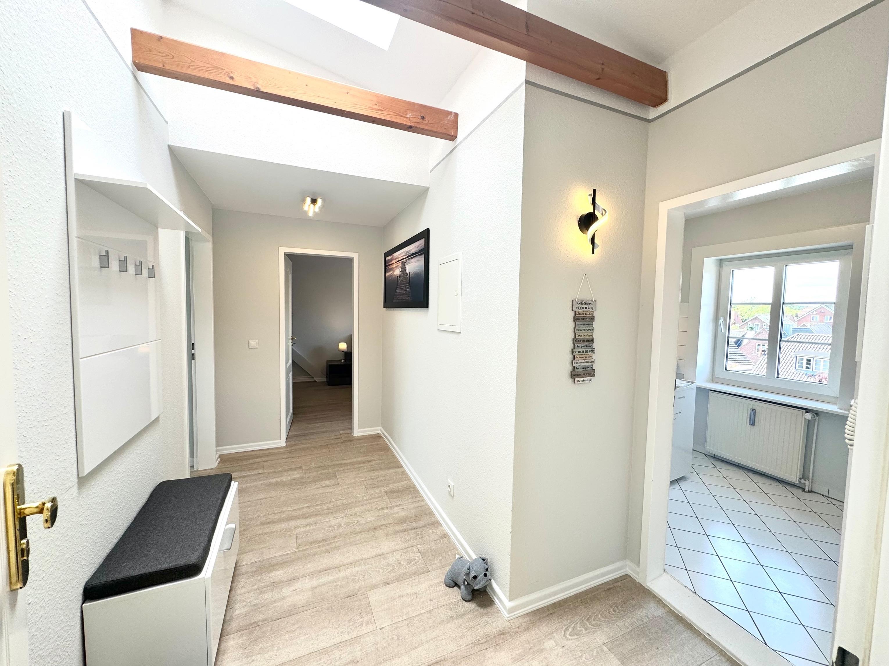 Auf ca. 65 m² ist hier Platz für 2-3 erwachsene Personen im 2.Obergeschoss des Haus Meerblick, direkt am Sandwall an der Wyker Promenade.
