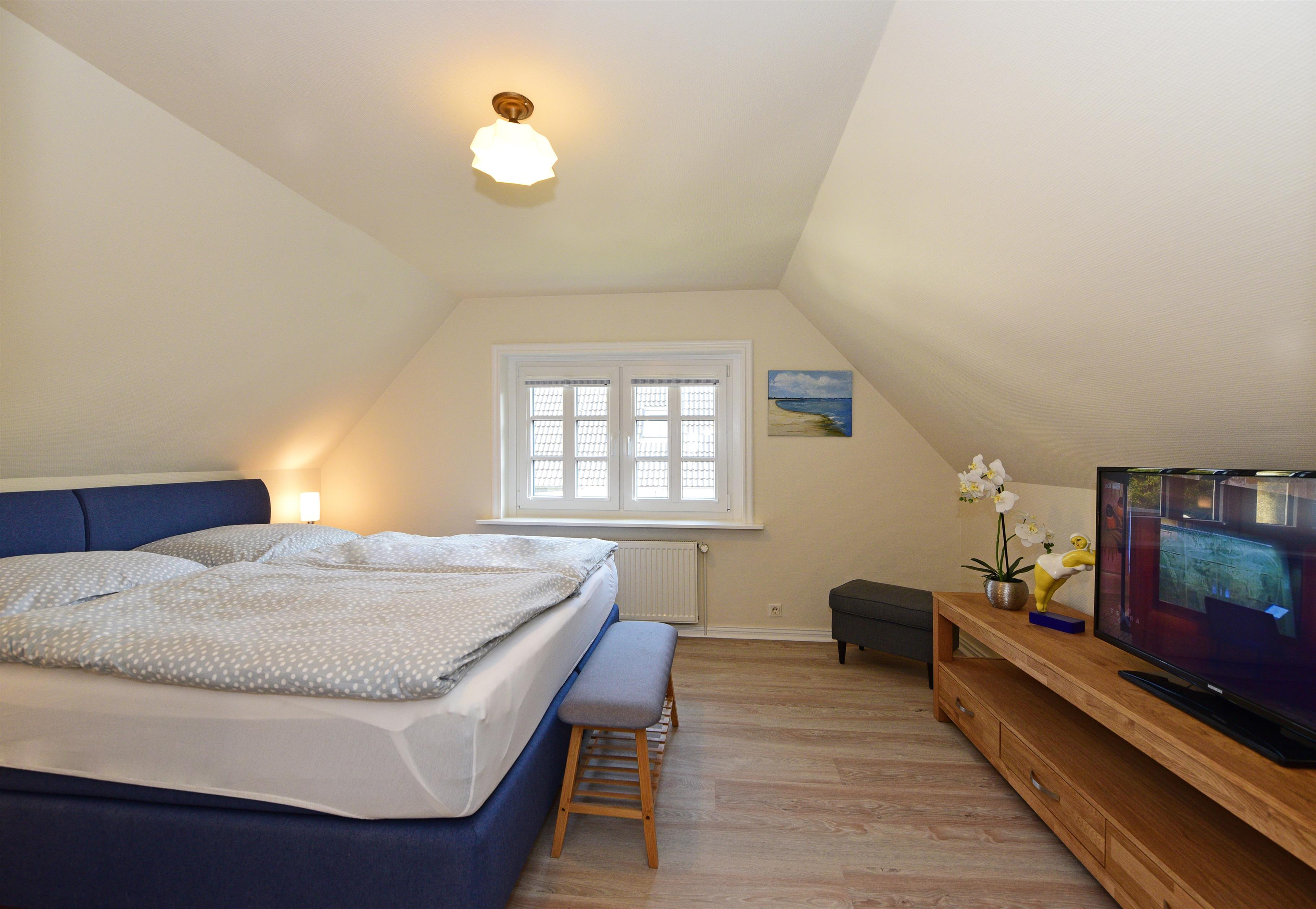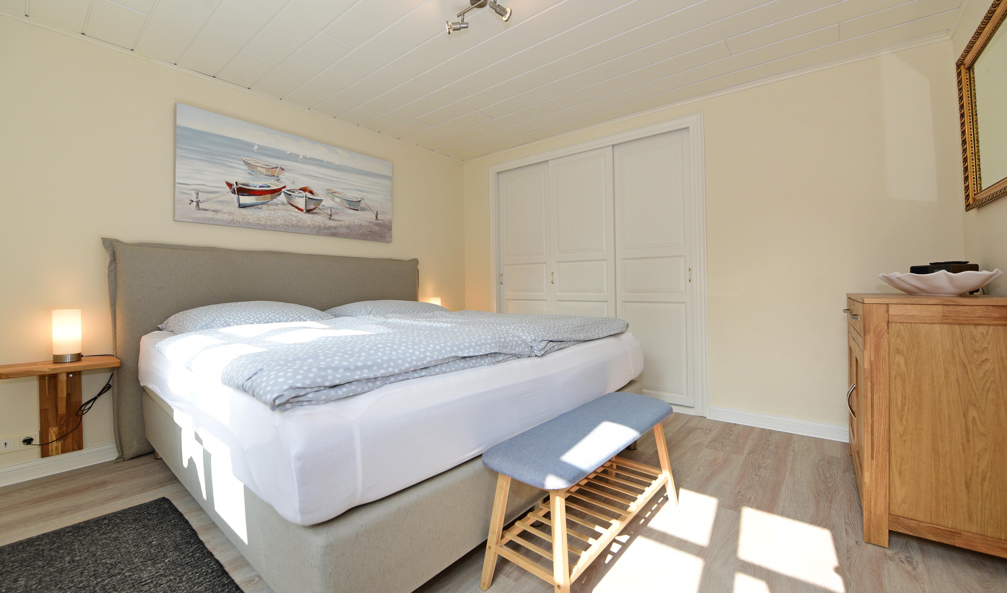 Im Obergeschoss sorgen zwei weitere Schlafzimmer - eines mit Doppelbett und eines mit zwei Einzelbetten - für erholsame Nächte.