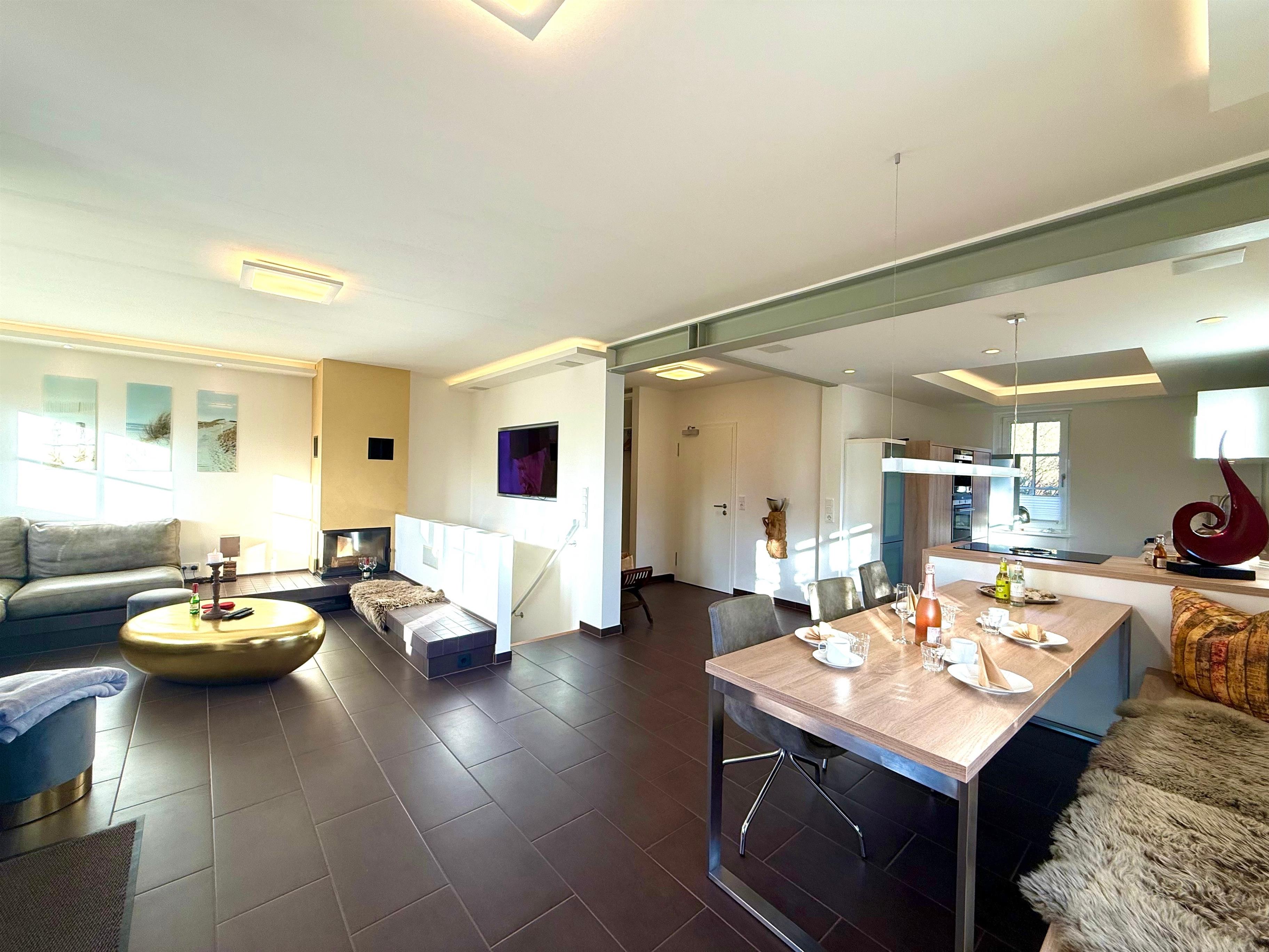 Dazu gehören unter anderem eine moderne Küche mit Spülmaschine, Kaffemaschine und alle wichten Küchenutensilien.
