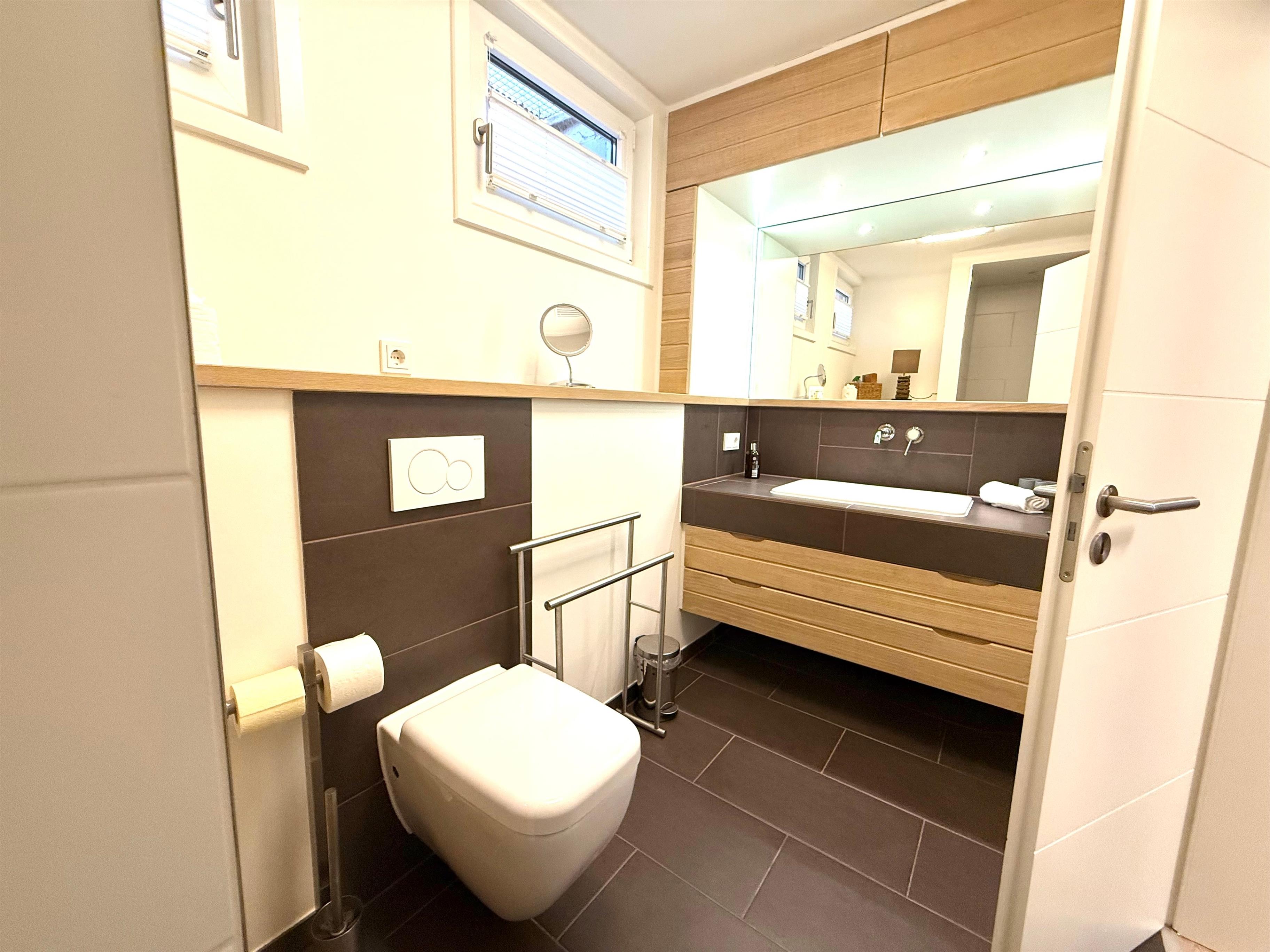 Schlafzimmer und Badezimmer befinden sich im Souterrain, was vor allem im Sommer ein angenehmes kühles Raumklima bietet.