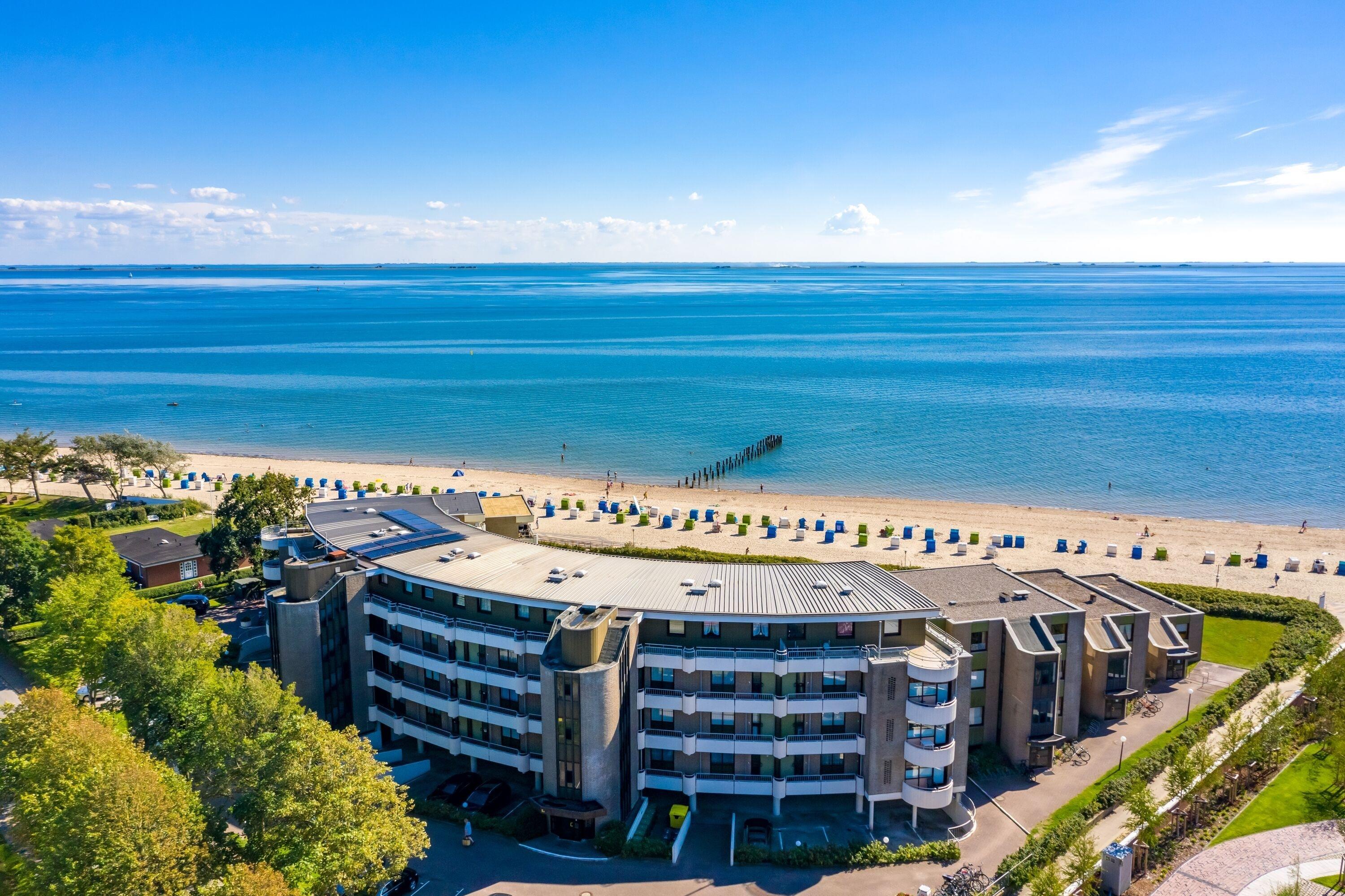 Auf dem Balkon können Sie den Blick auf das Meer und die umliegende Landschaft entspannt genießen. Zur Erholung steht Ihnen außerdem ein Schwimmbad im Appartementhaus zur Verfügung. Für Ihren PKW gibt es einen Parkplatz und auch Ihre Fahrräder können in einer Abstellmöglichkeit sicher untergebracht werden. Von der gemeinschaftlichen Sauna aus haben Sie einen Panoramablick.