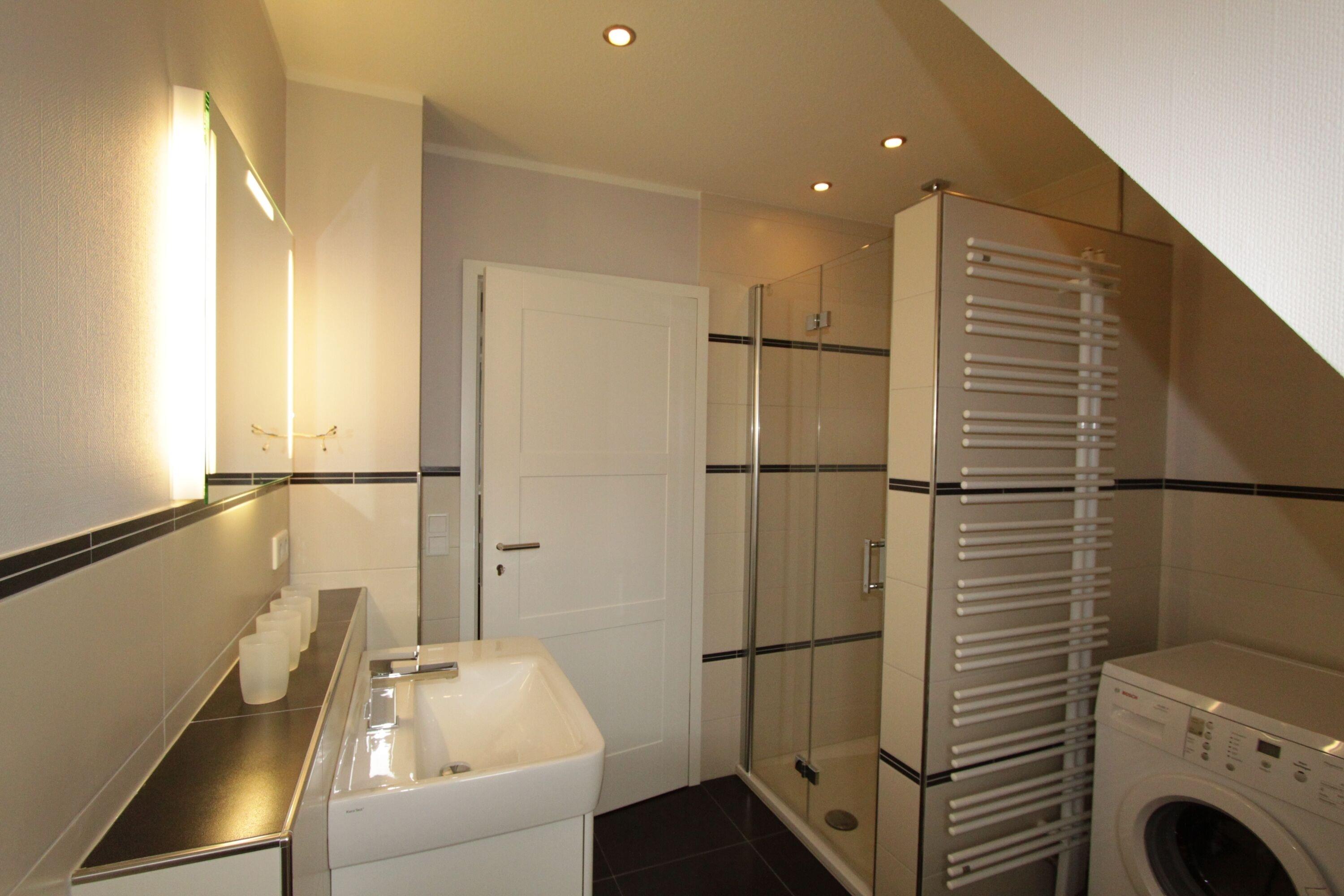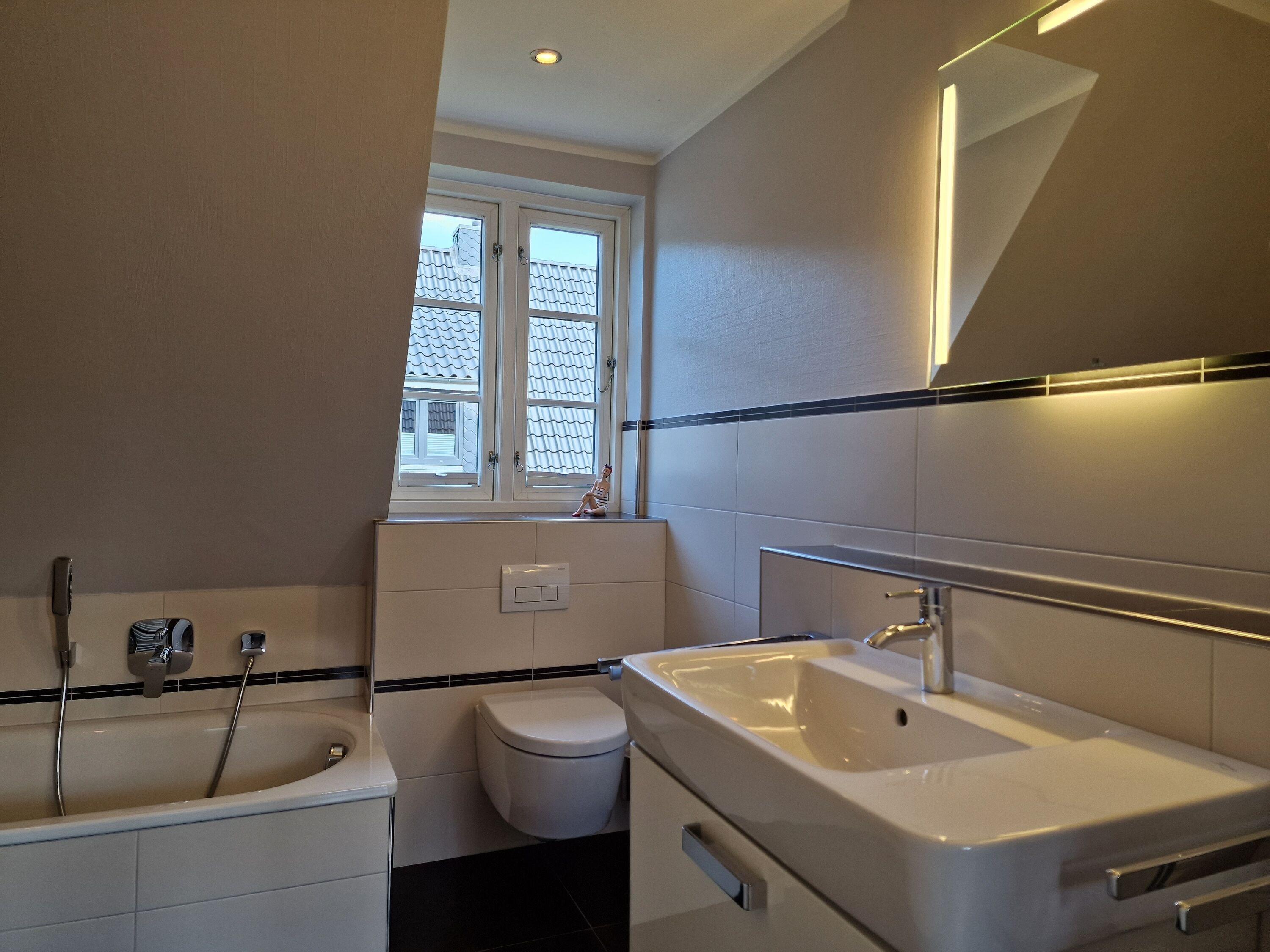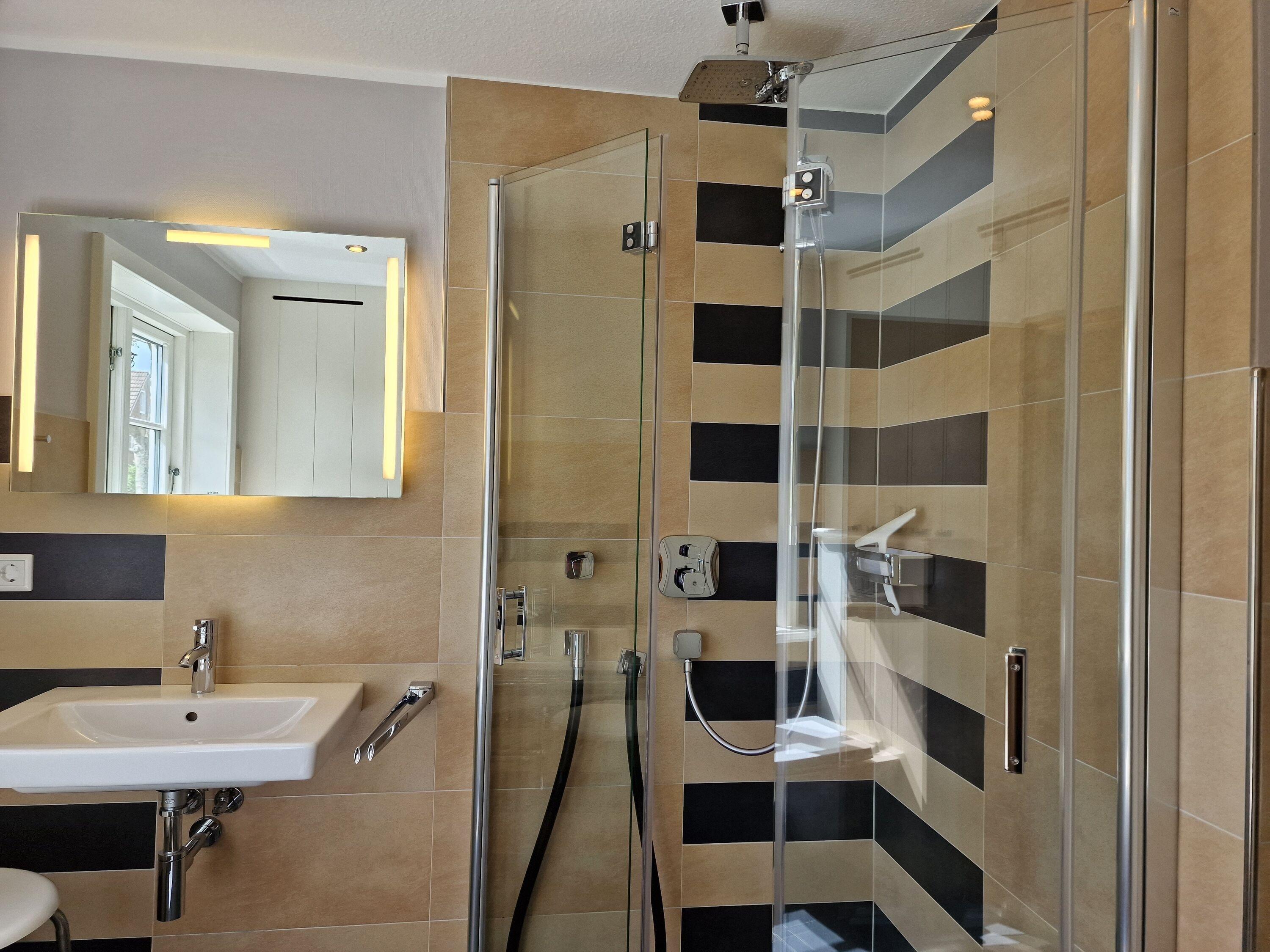 Badeværelse med bruser og badekar