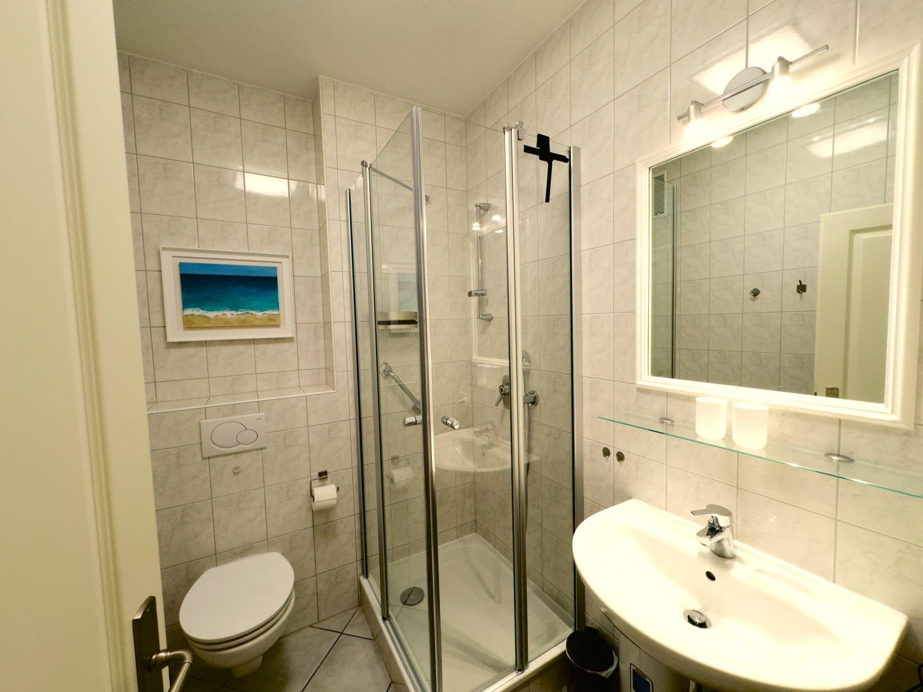 Direkt am Südstrand liegt diese schöne Ferienwohnung im 1. OG eines markanten Gebäudes. Durch die große Fensterfront fällt bereits am frühen Morgen ein schönes warmes Licht ins Wohnzimmer. Einen herrlichen Blick ins Grüne genießen Sie vom 8 qm großen Balkon, der zum Entspannen und Sonnen einlädt. Anfang 2018 wurde die Wohnung umfassend renoviert und anschließend wohnlich, modern und hochwertig eingerichtet. Eine Wohnung zum Wohlfühlen zu jeder Jahreszeit. Die sehr ruhige Lage in Strandnähe und der nur 10 Gehminuten entfernte Stadtkern von Wyk mit gemütlichen Cafés, Restaurants und diversen Geschäften machen die Wohnung zusätzlich attraktiv. Auch ein zum Tagesabschluss schöner Spaziergang auf der 50 m entfernten Strandpromenade mit Blick auf die Halligen verspricht echte Erholung.