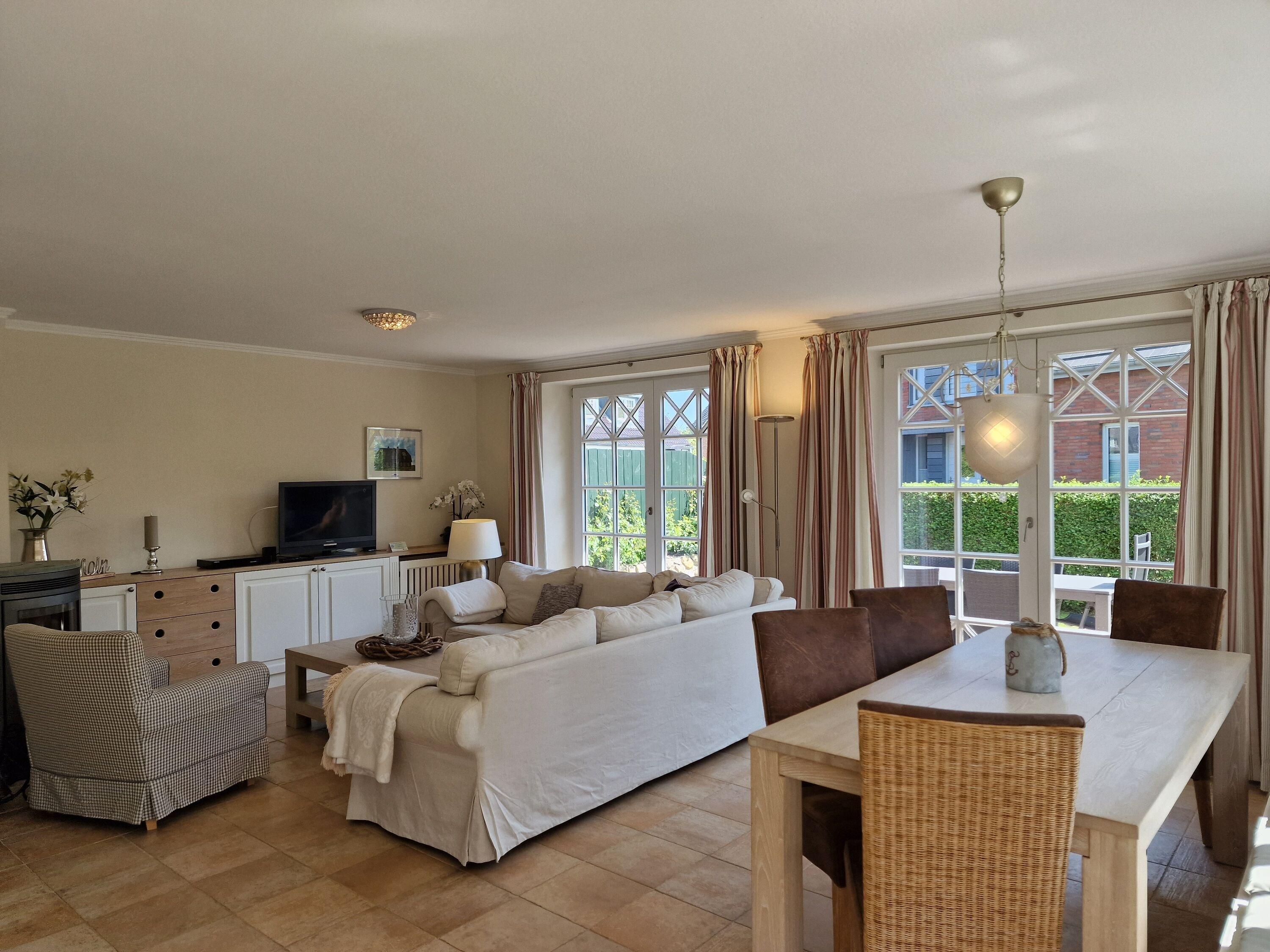 In dieser sehr schönen und hochwertig eingerichteten Doppelhaushälfte werden Sie sich von Anfang an wohlfühlen. Verbringen Sie gemütliche Winterabende vor dem Kaminofen oder gönnen Sie sich einen Saunabesuch nach einem ausgiebigen Strandspaziergang. Im Garten steht außerdem ein Grillkamin zur Verfügung. Die Fußgängerzone mit Restaurants und Geschäften ist nur wenige Gehminuten entfernt, zum Strand sind es ca. 15 Gehminuten. Auch Ihr Hund (max. 1) ist hier willkommen.