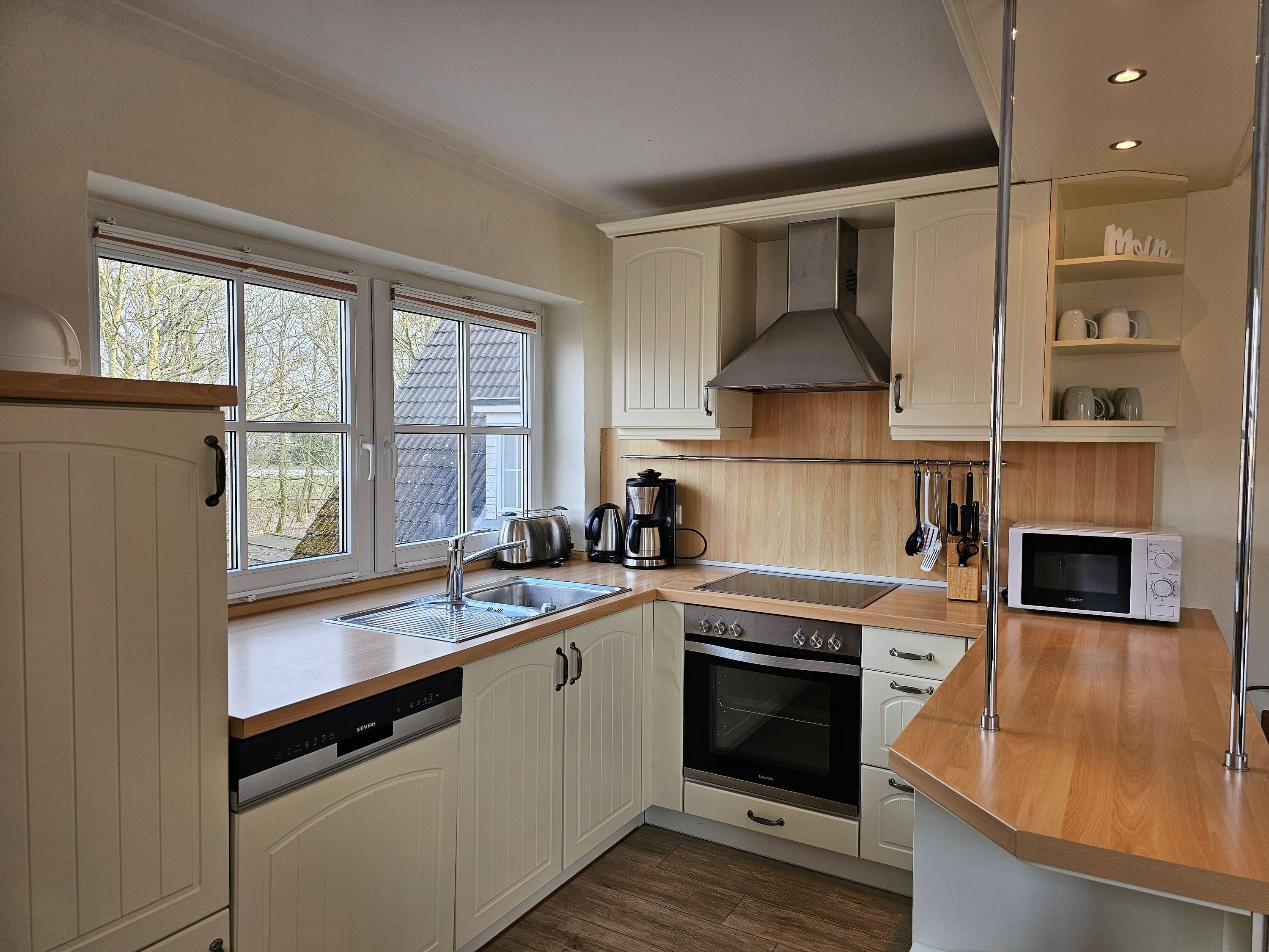 Die Wohnung "Seestern" ist sehr schön und stilvoll eingerichtet. Durch die Größe von 70 m² ist sie besonders gut für Familien mit Kindern geeignet, zumal der umzäunte Garten mit Spielgeräten mitbenutzt werden darf. Da sich das Haus in der 2. Reihe nach hinten versetzt befindet, wohnen Sie hier sehr ruhig und idyllisch. In weniger als einer Minute sind Sie zu Fuß am Wyker Südstrand.