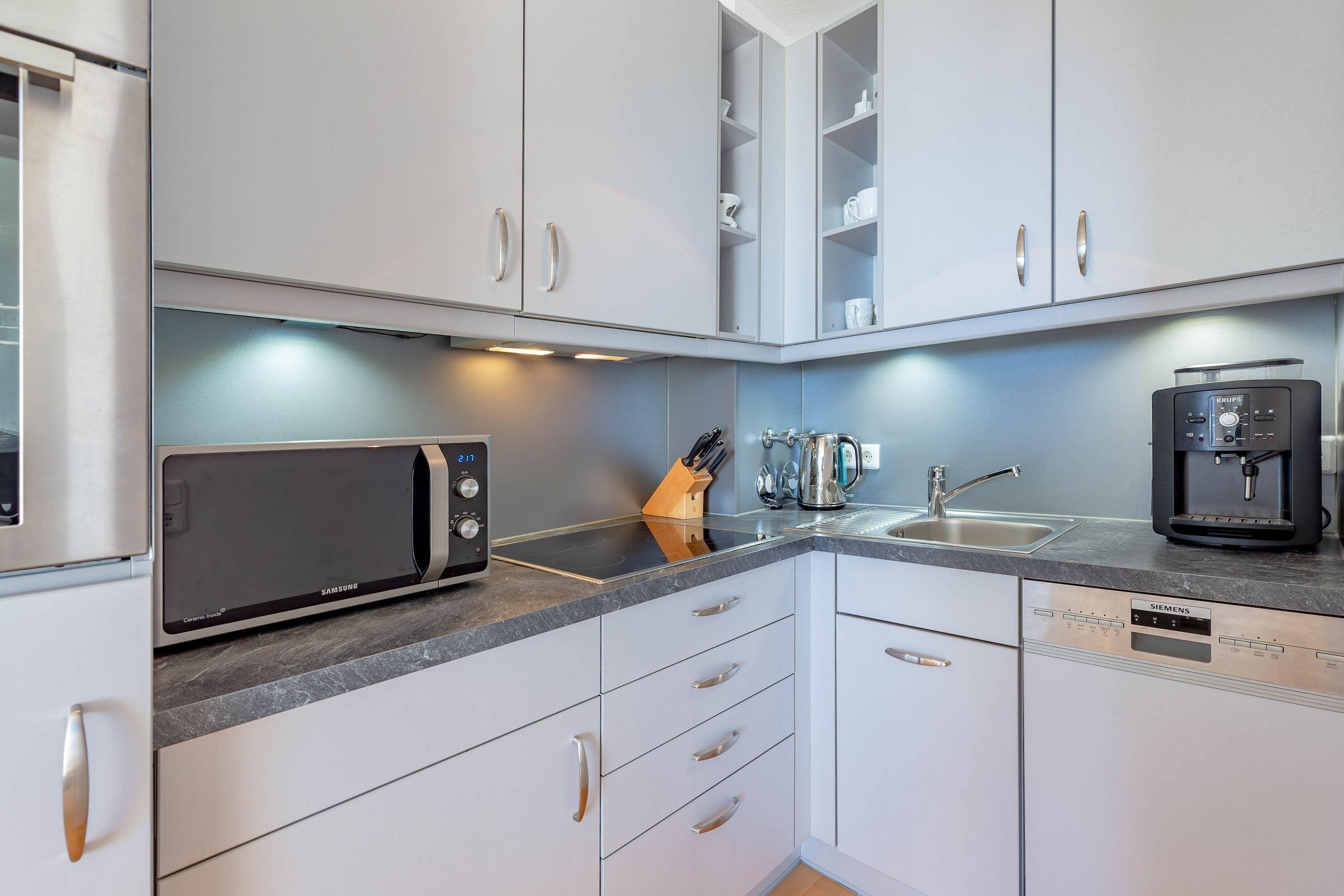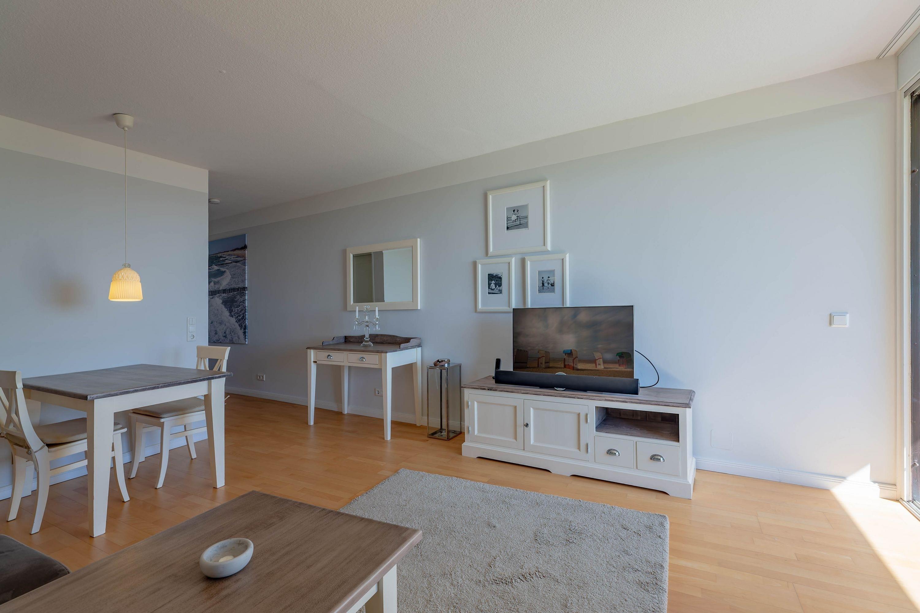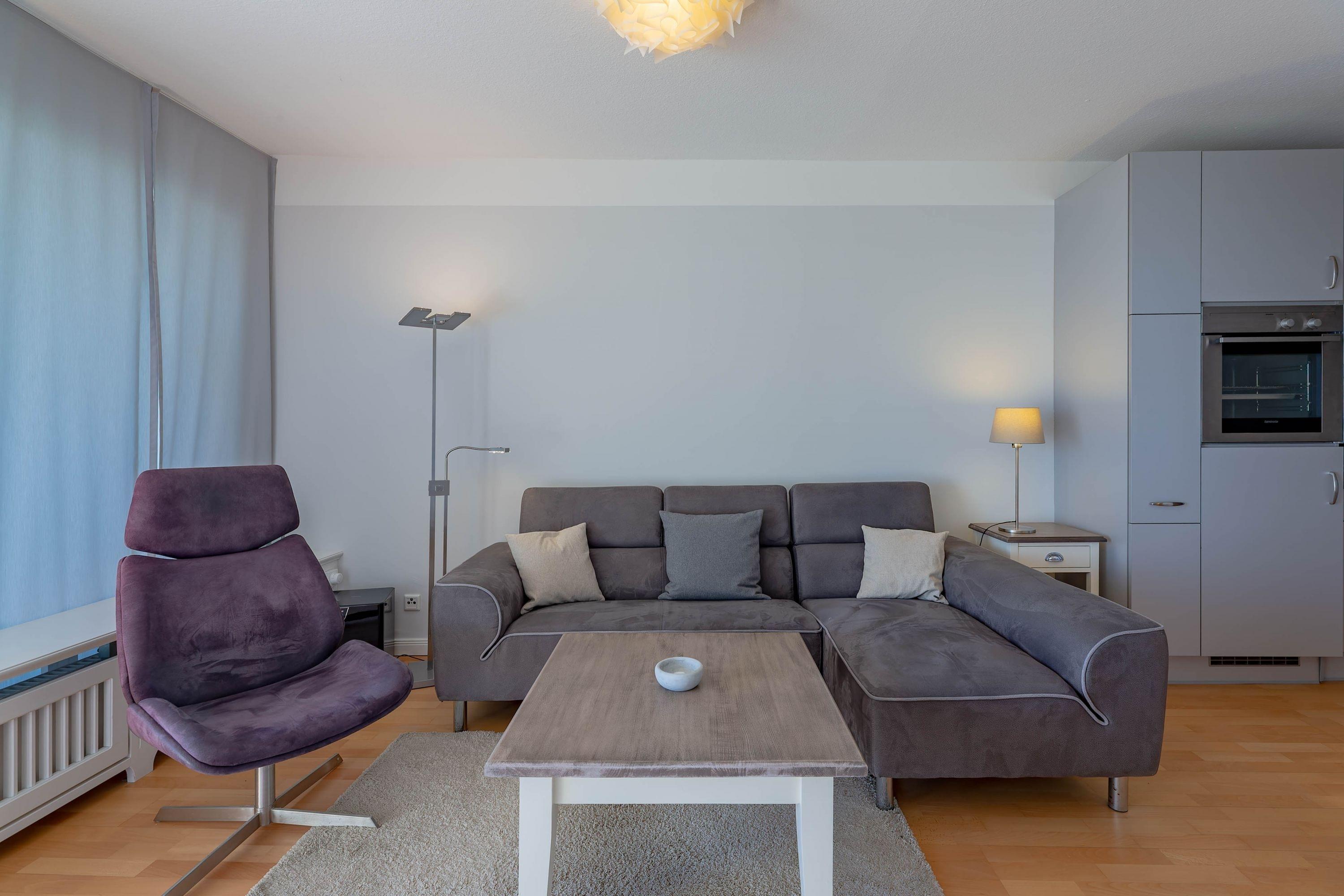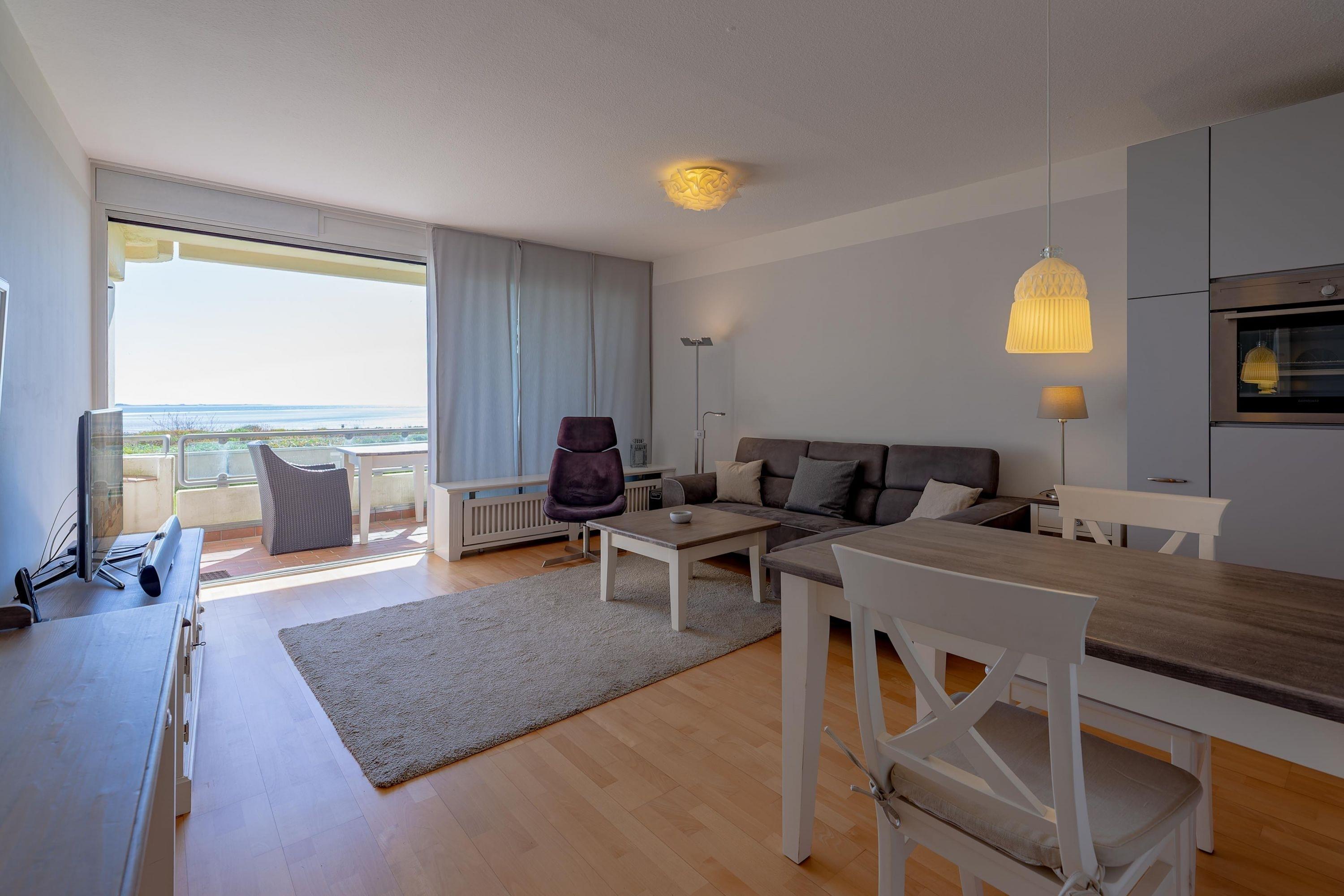 Die bekannte und sehr beliebte Ferienwohnanlage Bi de Wyk" liegt direkt am Südstrand von Wyk und bietet Ihnen einen herrlichen Blick über die Nordsee zu den Halligen und nach Amrum. Sowohl Einkaufsmöglichkeiten, als auch Restaurants, Kurmittelhaus und die Bushaltestelle befinden sich in unmittelbarer Umgebung - ein Urlaub ohne Auto wäre somit problemlos möglich. An Wellness-Angeboten steht im Haus ein Schwimmbad zur kostenfreien Nutzung und eine Sauna (mit Gebühr) zur Verfügung. Die Wohnung ist geschmackvoll eingerichtet und mit einer hochwertigen Küchenausstattung bestückt. Sie befindet sich im mittleren Teil des Gebäudes in Hochpaterre.