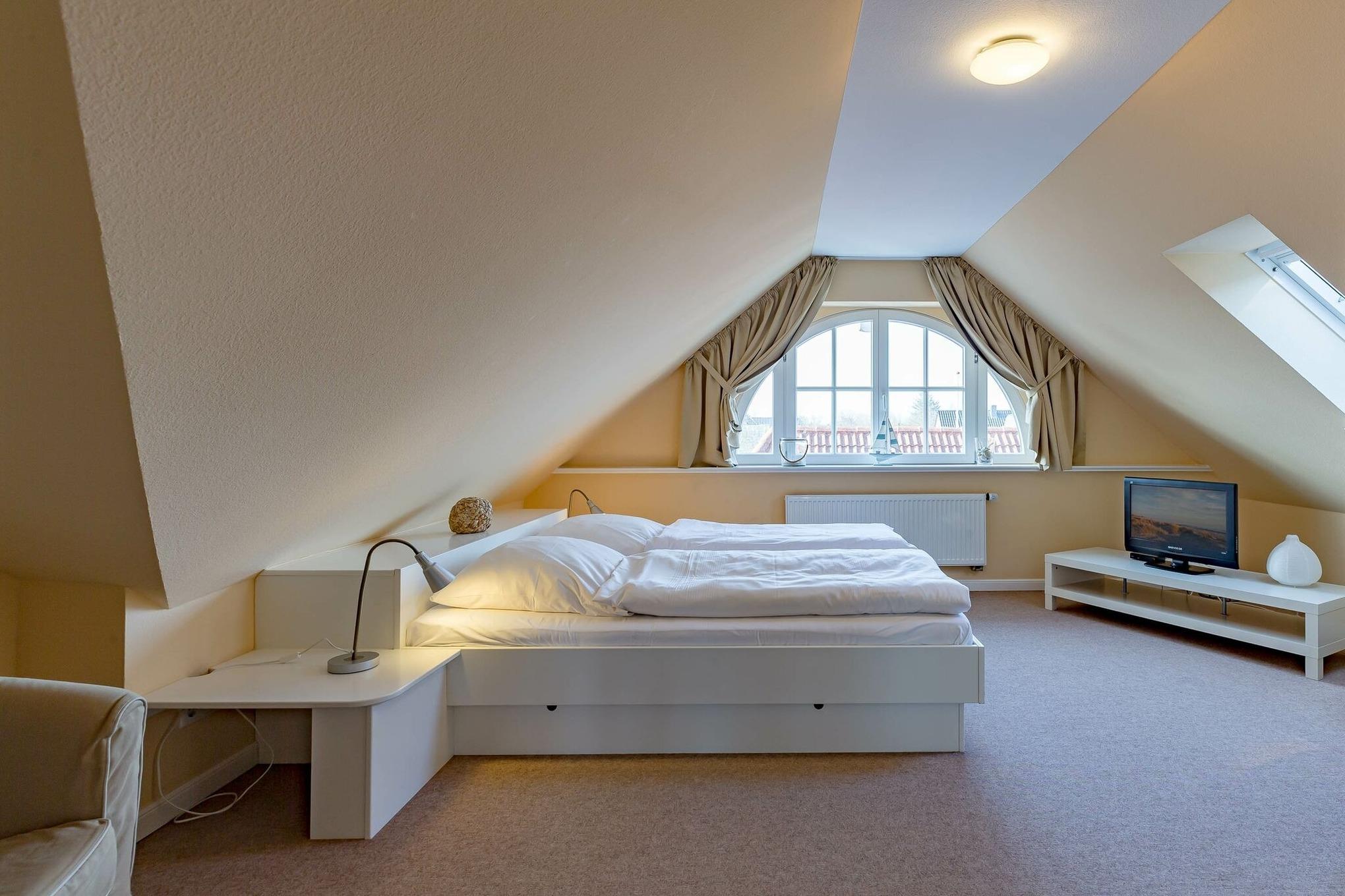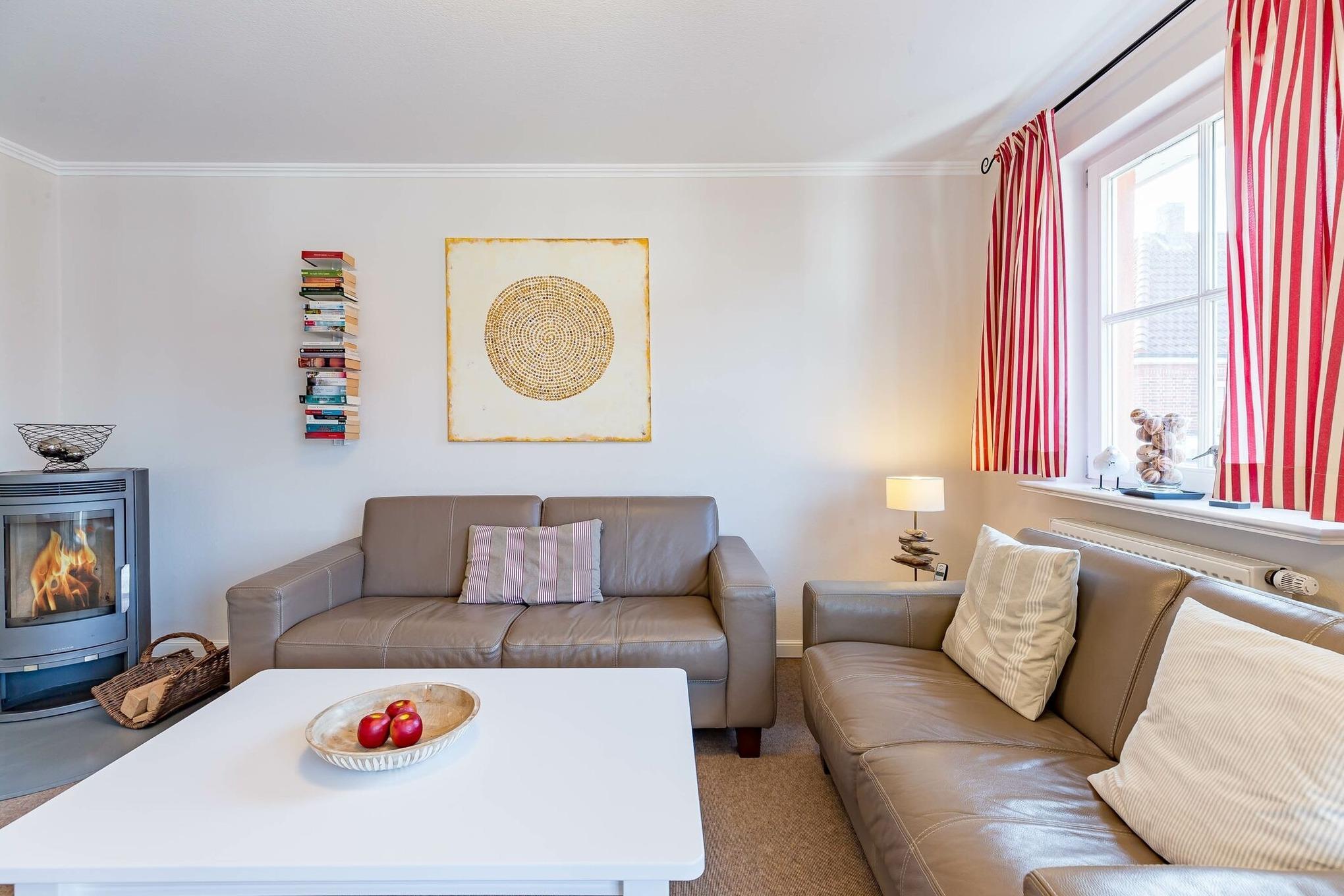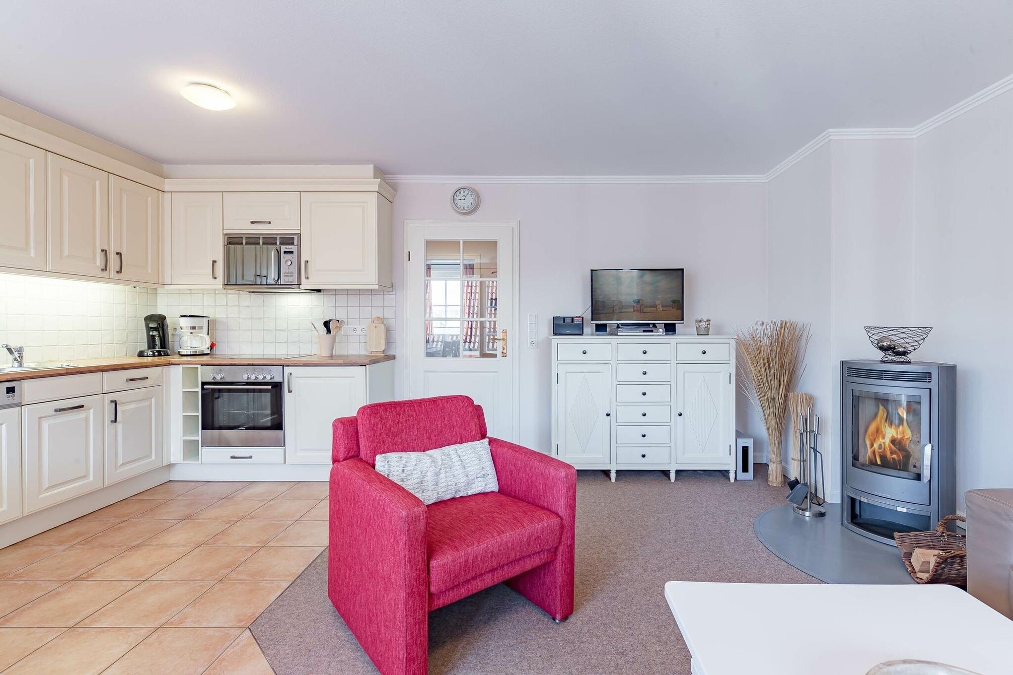 Haus an der Altstadt Wohnung 7 .Badestr. 20, Wyk. .Herzlich Willkommen im Haus an der Altstadt. Mitten im Zentrum von Wyk, an der Badestrasse, direkt an der Altstadt gelegen, befindet sich diese wunderschöne Wohnanlage nur wenige Gehminuten von der Promenade und dem Badestrand entfernt. In unmittelbarer Nähe befinden sich alle Erholungs- und Einkaufsmöglichkeiten sowie Cafés und Restaurants. Die exklusive Obergeschosswohnung Nr. 7 erstreckt sich über 2 Etagen und ist mit einem französischem Balkon, dänischem Kaminofen, einer Sauna und 2 Bädern ausgestattet. Die Wohnung selbst befindet sich in einem 2-geschössigen Wohngebäude mit insgesamt 8 Wohneinheiten. Wir freuen uns auf Ihren Besuch. Seien Sie unser Gast.