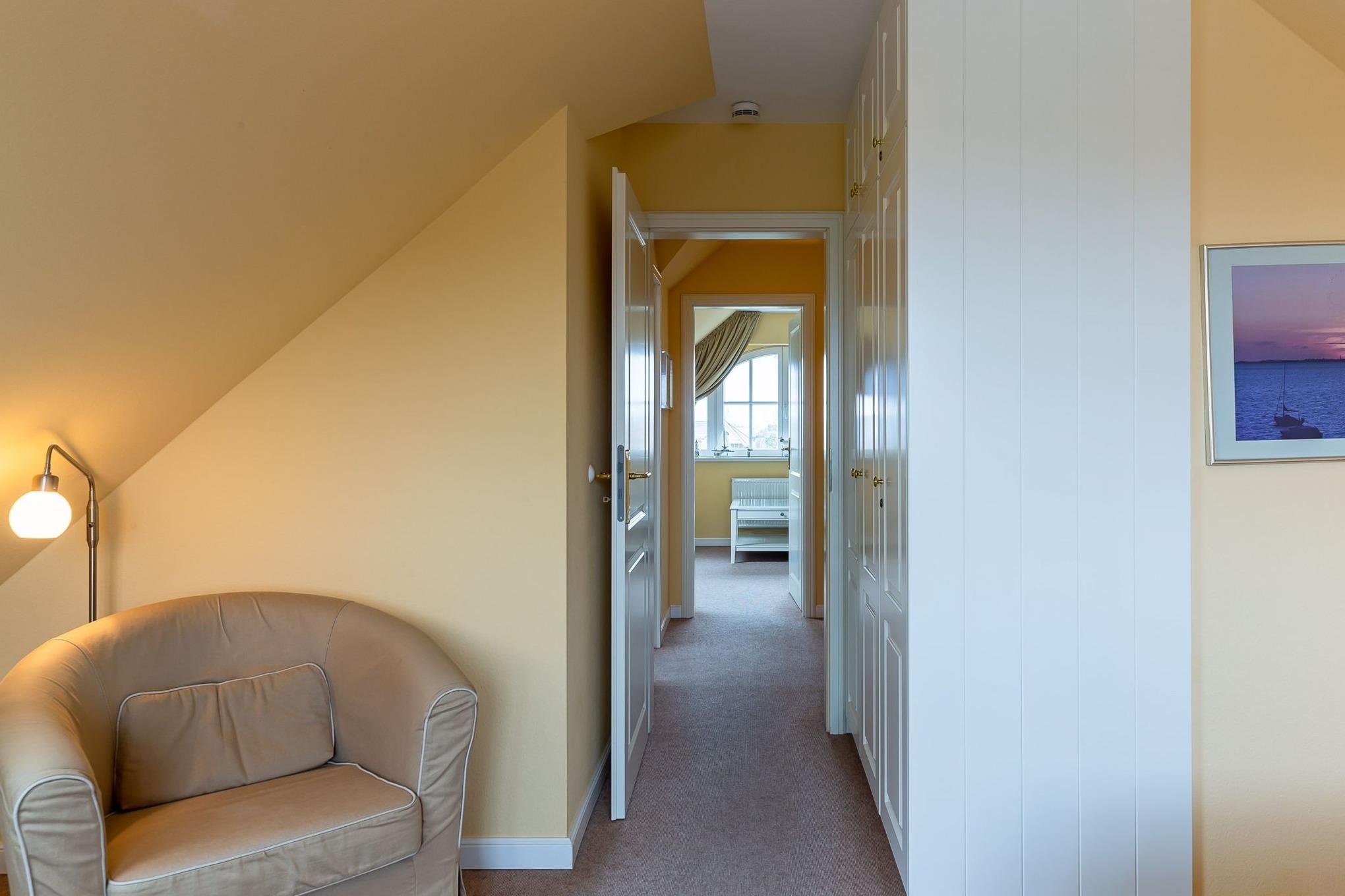 Herzlich Willkommen im Haus an der Altstadt. Mitten im Zentrum von Wyk, an der Badestrasse, direkt an der Altstadt gelegen, befindet sich diese wunderschöne Wohnanlage nur wenige Gehminuten von der Promenade und dem Badestrand entfernt. In unmittelbarer Nähe befinden sich alle Erholungs- und Einkaufsmöglichkeiten sowie Cafés und Restaurants. Die exklusive Obergeschosswohnung Nr. 8 erstreckt sich über 2 Etagen und ist mit einem französischem Balkon, dänischem Kaminofen, einer Sauna und 2 Bädern ausgestattet. Die Wohnung selbst befindet sich in einem 2-geschössigen Wohngebäude mit insgesamt 8 Wohneinheiten. Wir freuen uns auf Ihren Besuch. Seien Sie unser Gast.