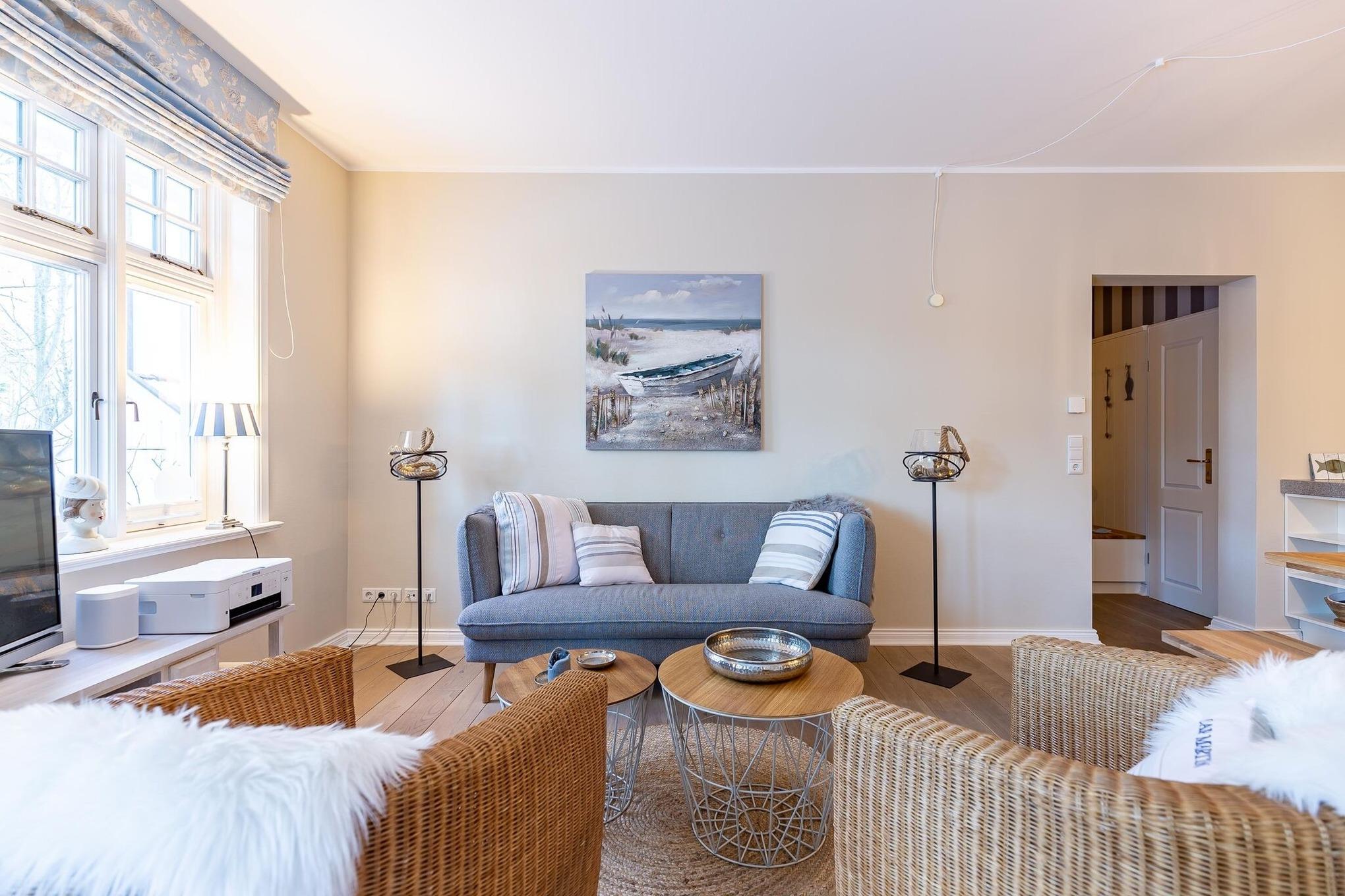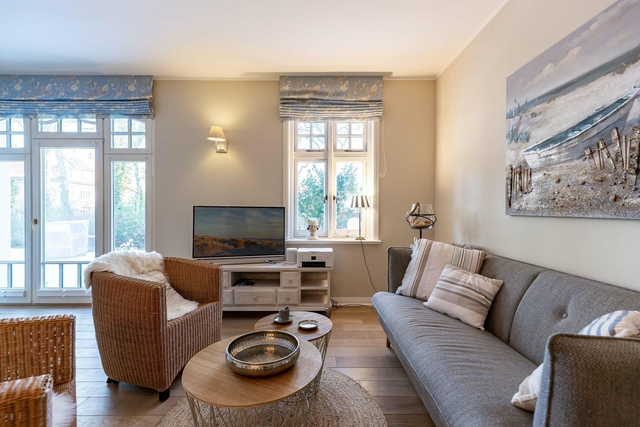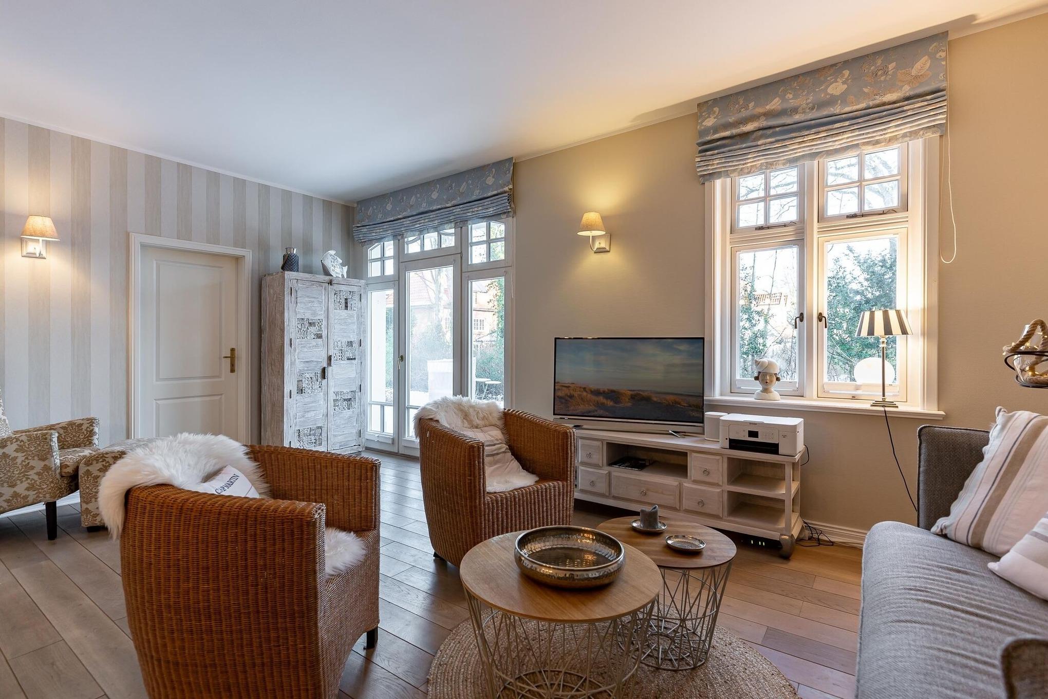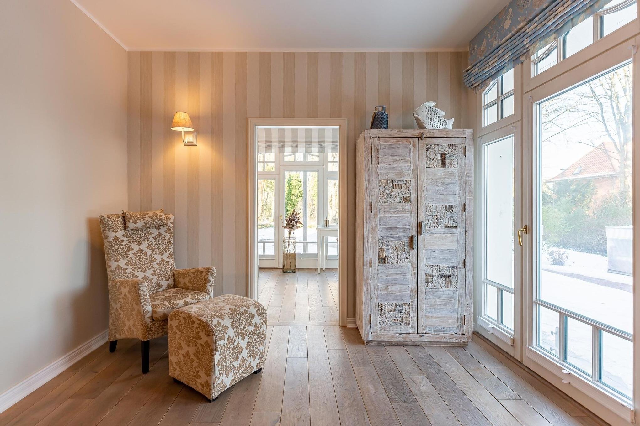 Verbringen Sie die schönste Zeit des Jahres in diesem wunderschönen Schmuckstück. Die alte Bädervilla aus dem Jahre 1910 ist ein traumhaftes Urlaubsdomizil mit bestechender Architektur und wunderbarer Lage. Die Nähe zum Wyker Südstrand und dem Nordseekurpark ist fast einmalig auf Föhr. Die Wohnung zwei liegt im Erdgeschoss und hat eine große Terrasse von knapp 75qm ?-das Highlight der Wohnung. Hier genießen Sie jeden Sonnenstrahl und laden Ihren ?„Akku?“ wieder auf. Die Einrichtung ist mit viel Liebe zum Detail, modern und geschmackvoll ausgestattet. Hier genießen Sie Ihren Urlaub in vollen Zügen.