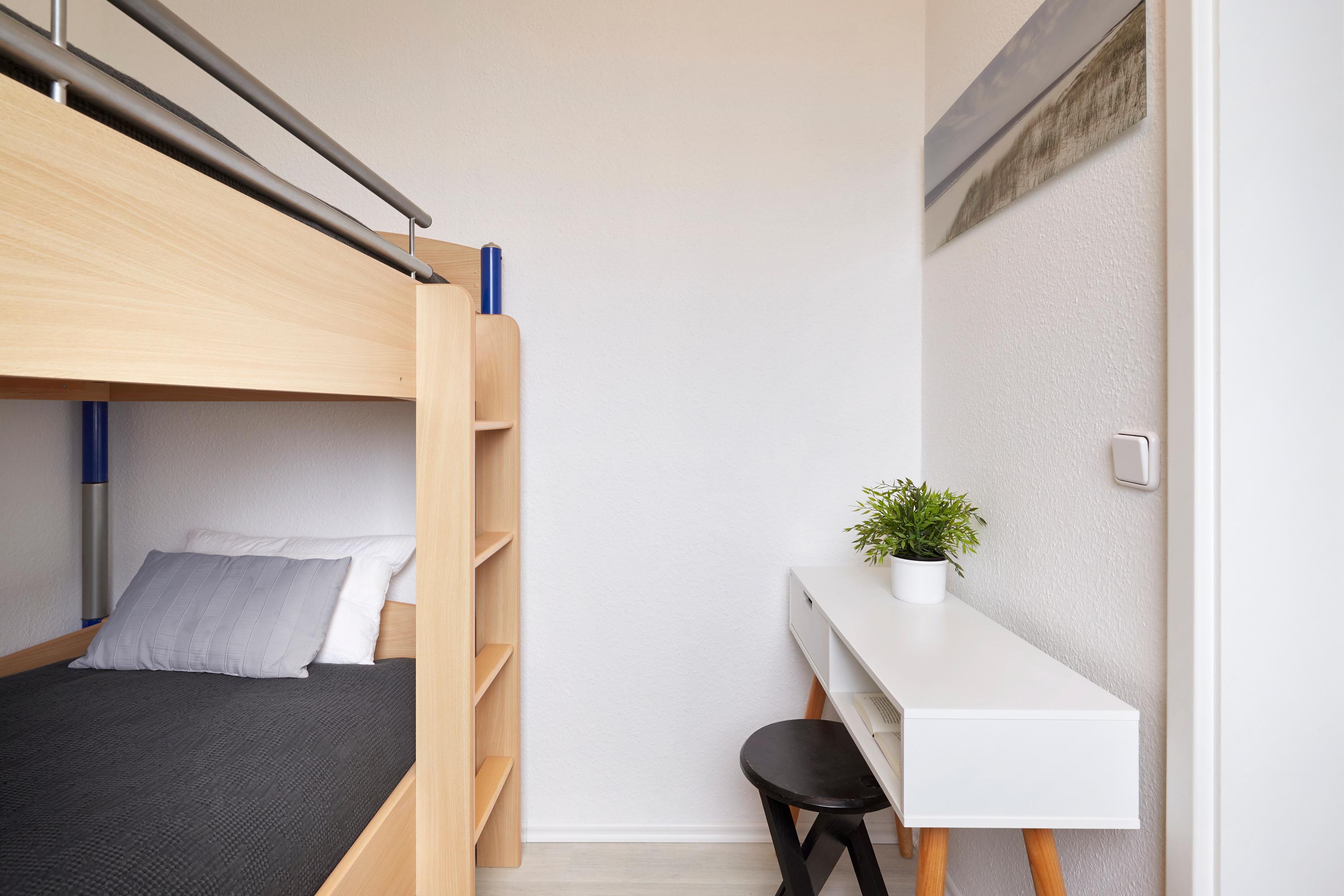 Haus Langeneß ?- erste Reihe am Meer. Wohnen Sie in Traumlage mit absolut einmaligem Blick auf die Nordsee und die Halligen. In der Wohnung 18 im ersten Obergeschoss mit Südbalkon haben Sie genau diesen Blick. Ein kleiner Pfad führt Sie direkt zum Strand. Und wenn die Nordsee mal zu kalt zum Baden ist, im Haus Uthlande steht Ihnen das Schwimmbad zur Nutzung mit zur Verfügung. Die Wohnung ist gemütlich für 2 Personen. Das Etagenbett ist spannend für kleine Kinder.