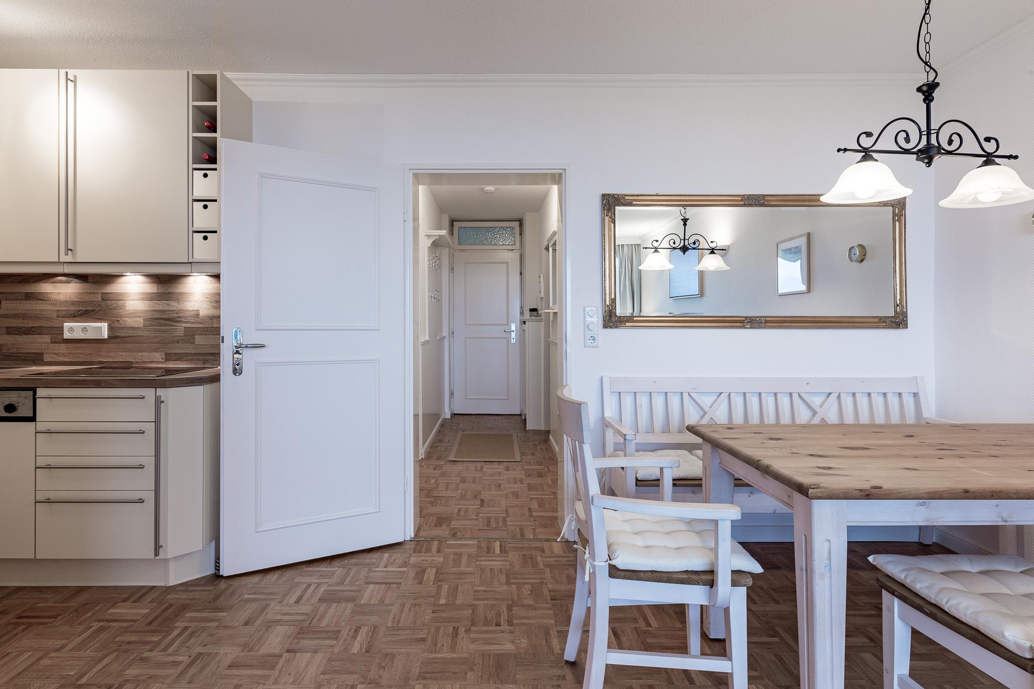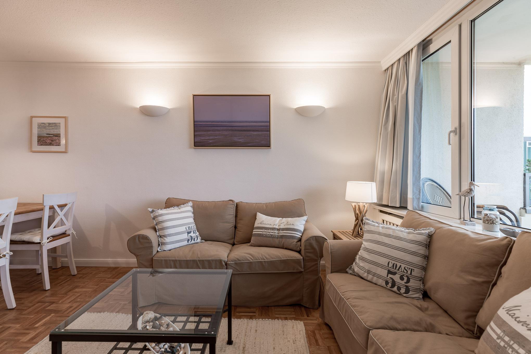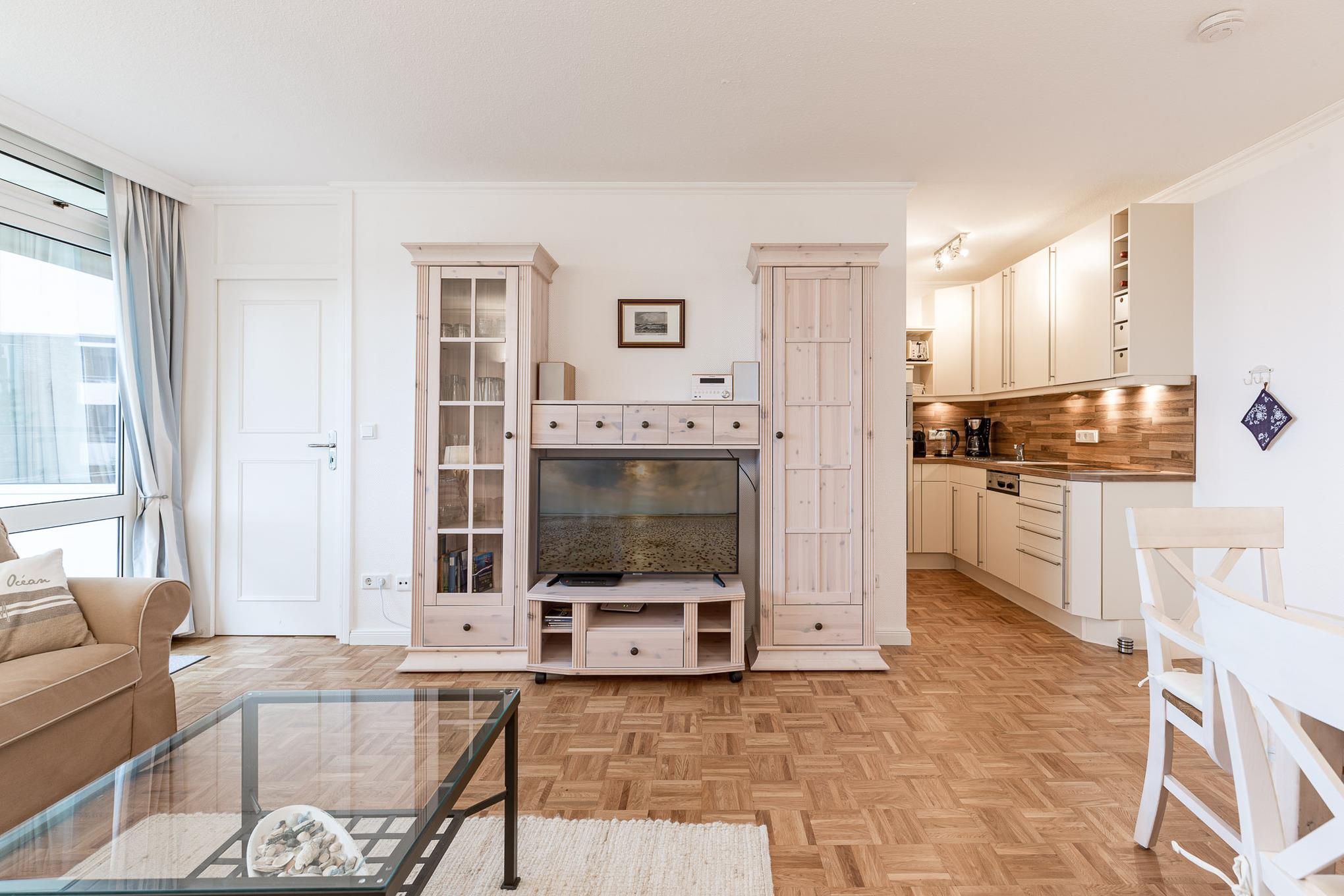 Das Haus Uthlande befindet sich in einer gehobenen Ferienanlage am Rande von Wyk. Mit Blick auf die Nordsee, dem gegenüberliegenden Golfplatz und dem nahen Freizeitflughafen bietet die Wohnung mit dem Sandstrand vor der Tür, einer Wassersportschule in Laufnähe, sowie den traditionellen Reetdachhäusern auf eigenen Warften in Greveling, ein schönes Freizeitangebot. Die Wohnung befindet sich in der ersten Etage und wurde mit viele Liebe zum Detail eingerichtet. Durchdachte Tischlereinbauten und ein modernes Bad lassen keine Wünsche offen. Genießen Sie den traumhaften Blick über die Nordsee, an stürmischen Tagen von der gemütlichen Essbank aus, oder lassen Sie sich auf dem überdachten Balkon schon beim Frühstück von der Sonne kitzeln.