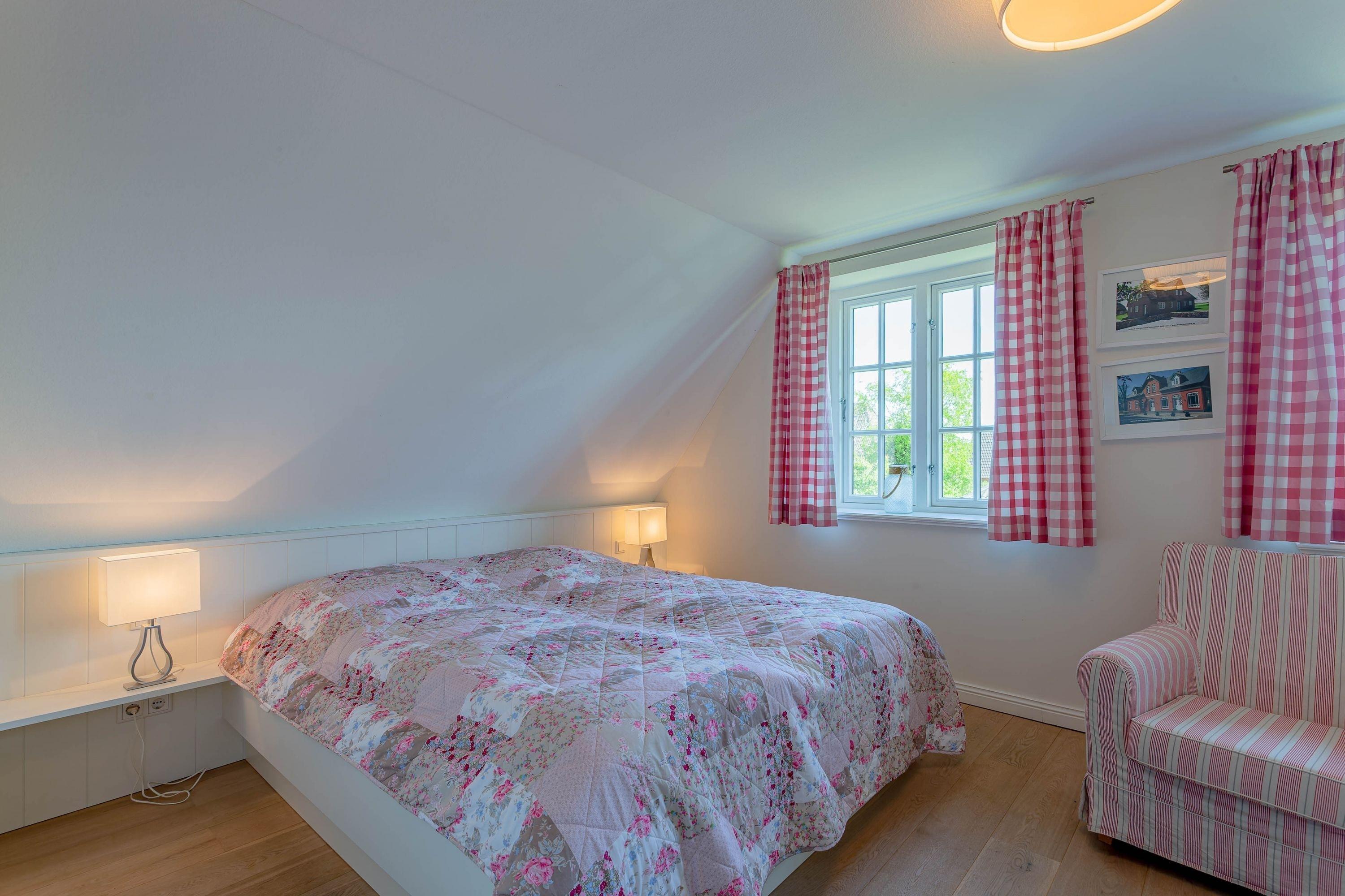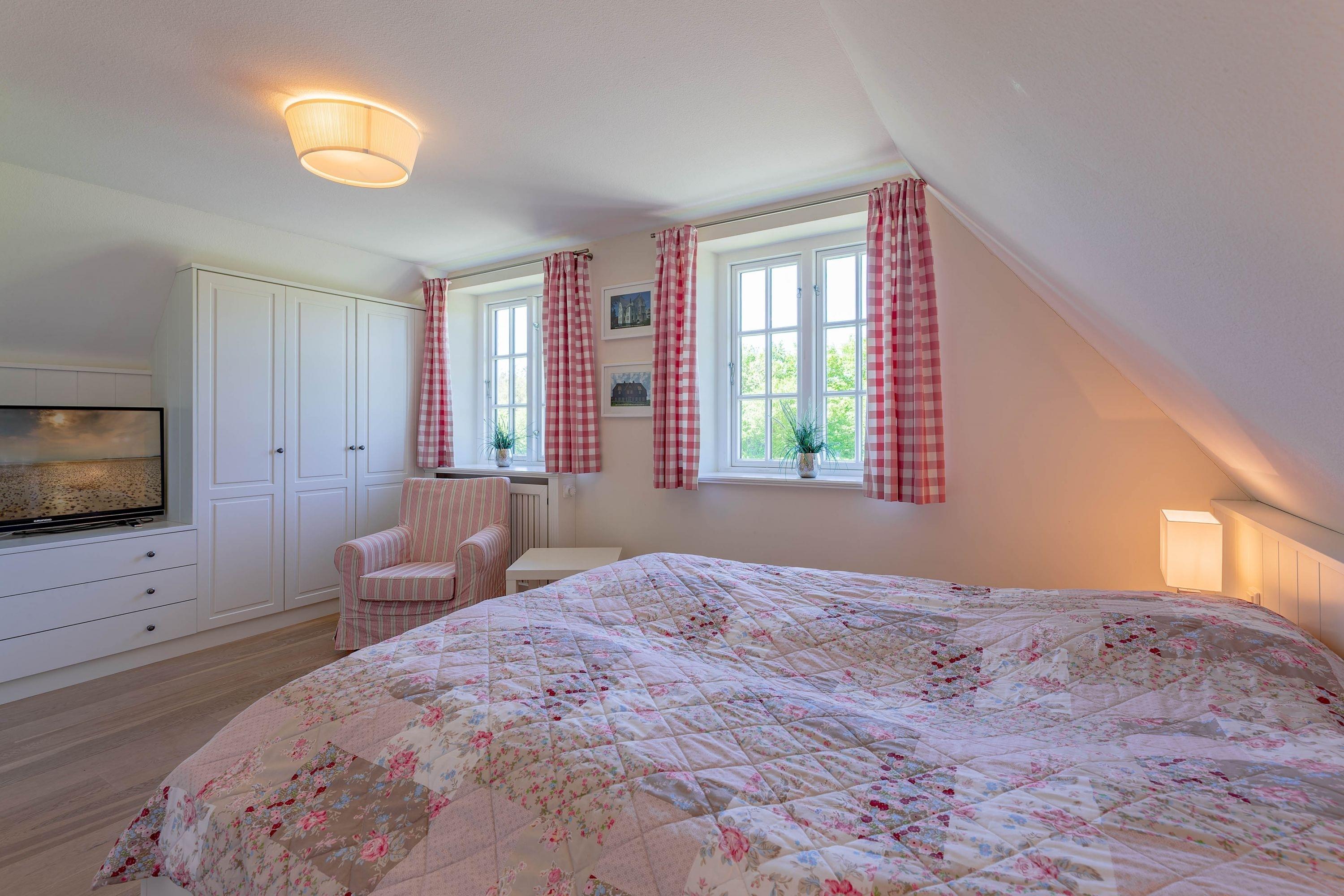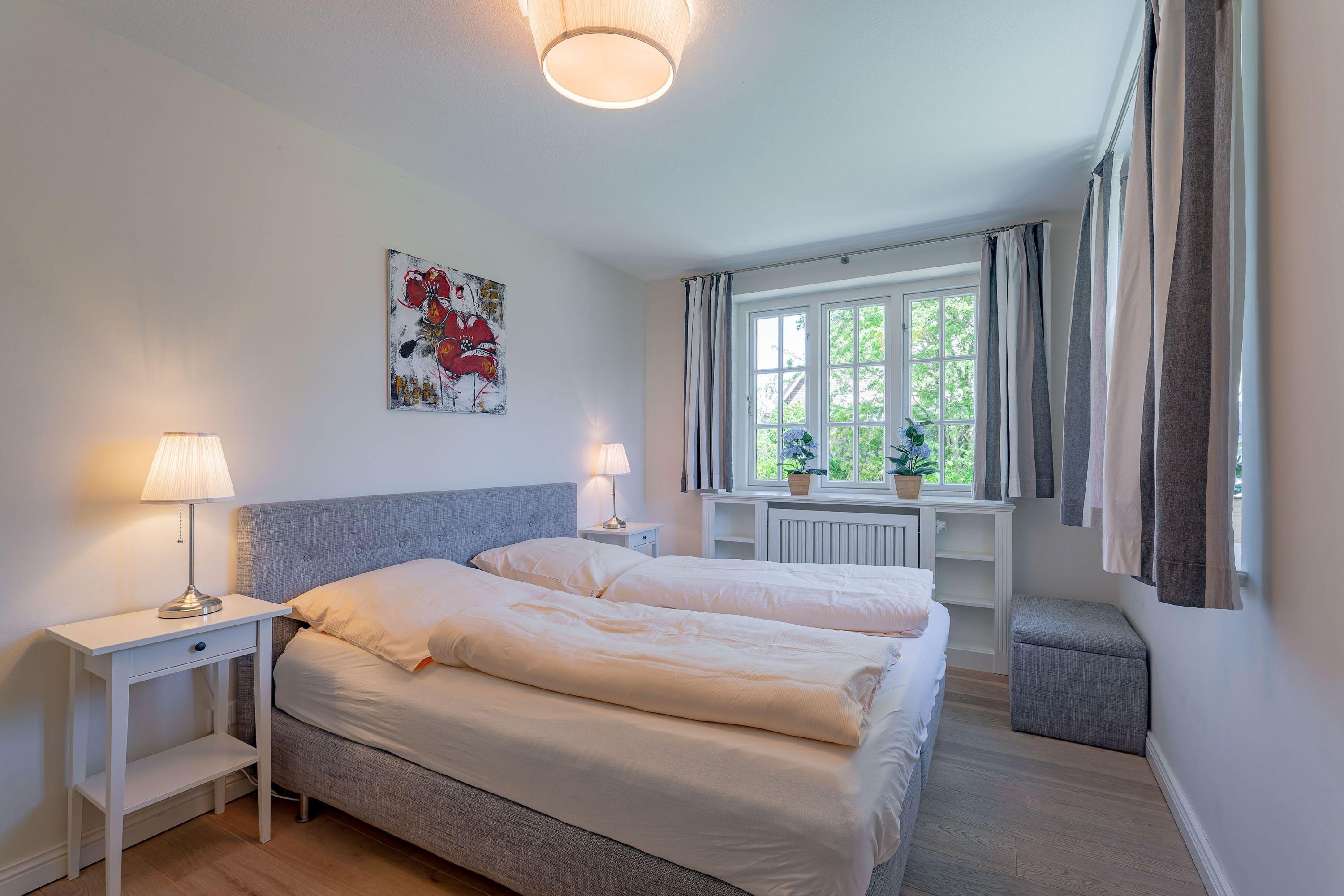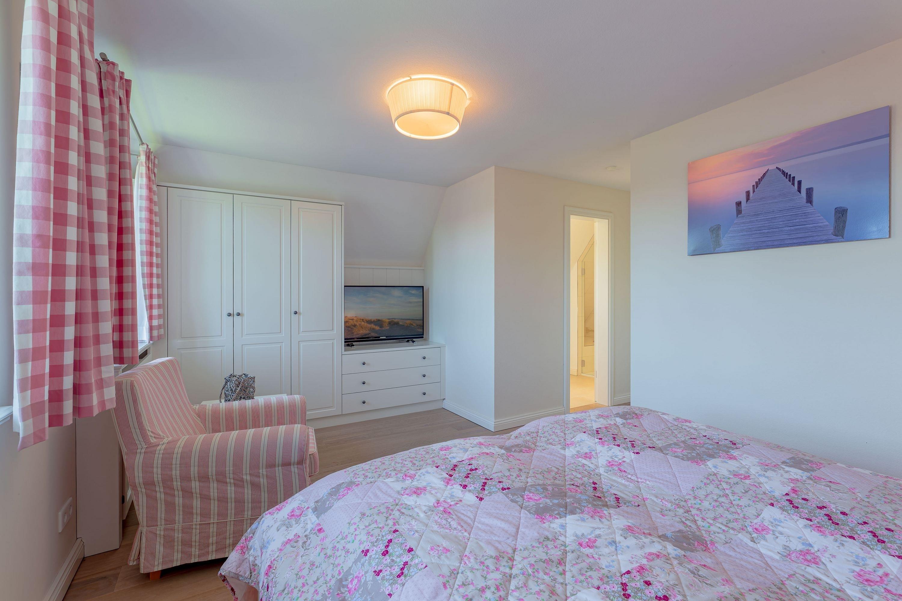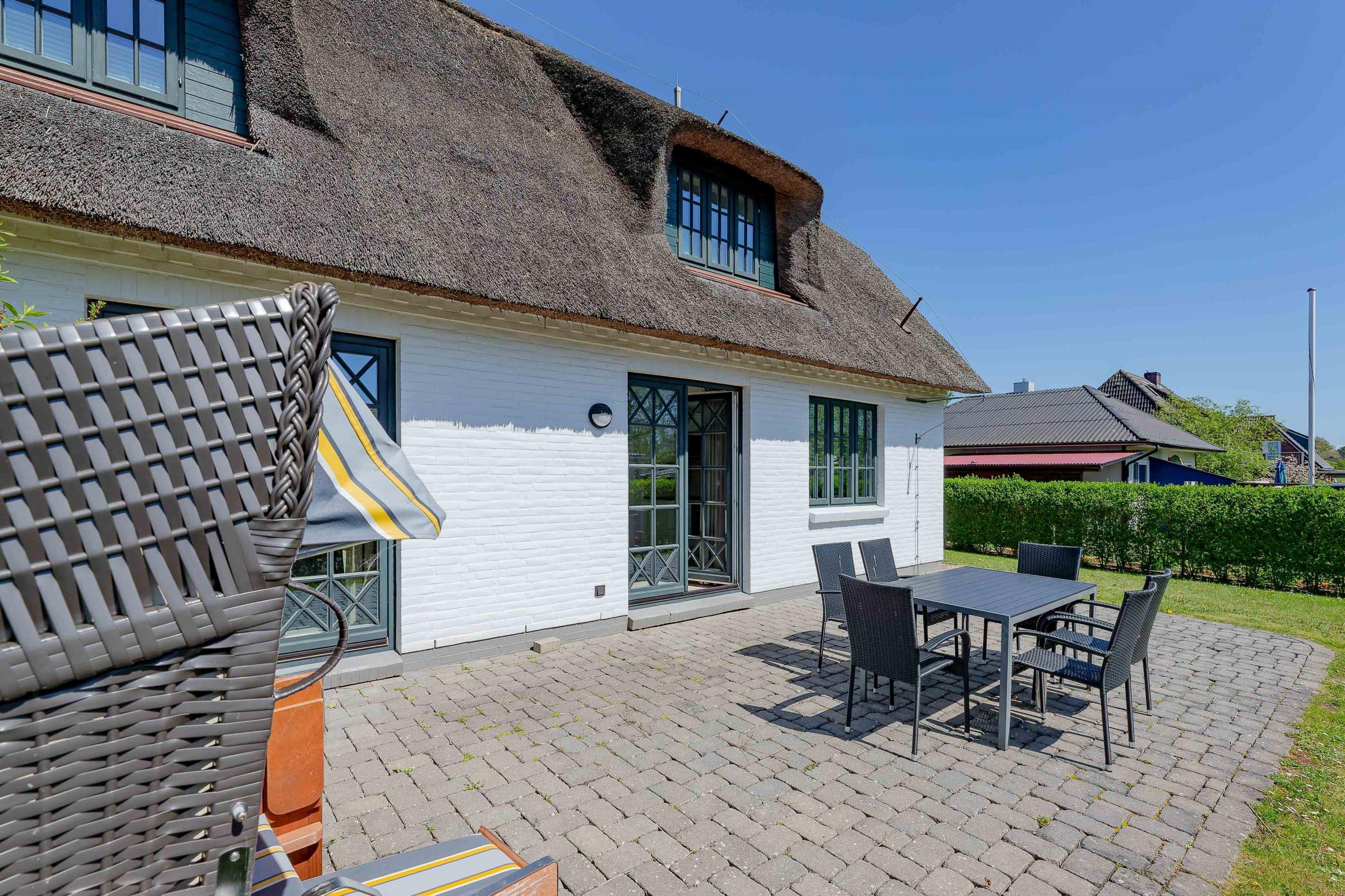 Ein typisches Friesenhaus mit sehr schöner Architektur. Die Summe schöner Details – Holzsprossenfenster, Reetdach, schöne Fliesen und Holzarbeiten - schafft eine wunderbare Atmosphäre. Im Erdgeschoss befindet sich ein großes, modern eingerichtetes Wohnzimmer mit Essplatz, von welchem Sie direkt auf die ca. 36 qm große Terrasse gelangen. Desweiteren eine moderne Küche, ein Schlafraum, sowie Diele, Bad und HWR. Im Obergeschoss sind zwei Schlafzimmer mit integrierten Bädern und die hauseigene Sauna. In nur wenigen Gehminuten gelangen Sie zum Südstrand, oder Golfplatz. Waldspaziergänge können direkt vor der Tür starten. Alle Erholungs- und Einkaufsmöglichkeiten sowie Cafés und Restaurants liegen ca. 1,5 km entfernt.