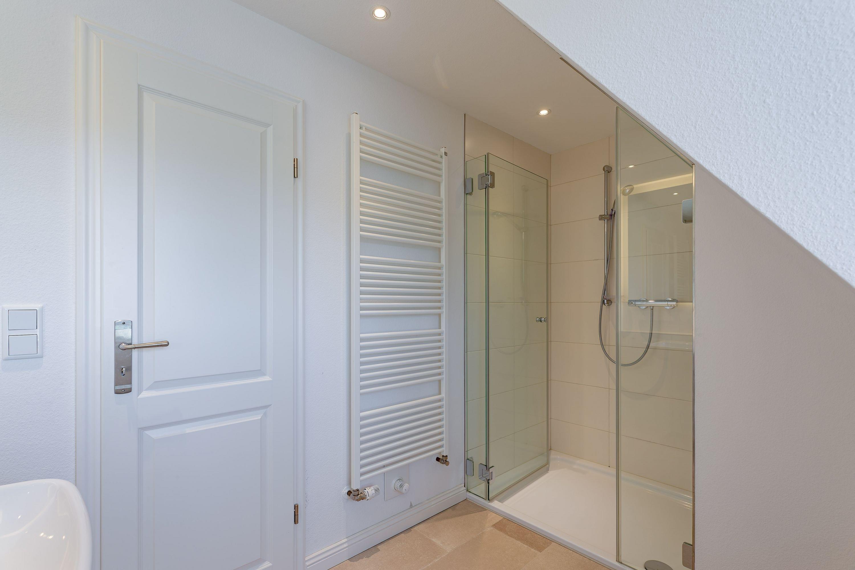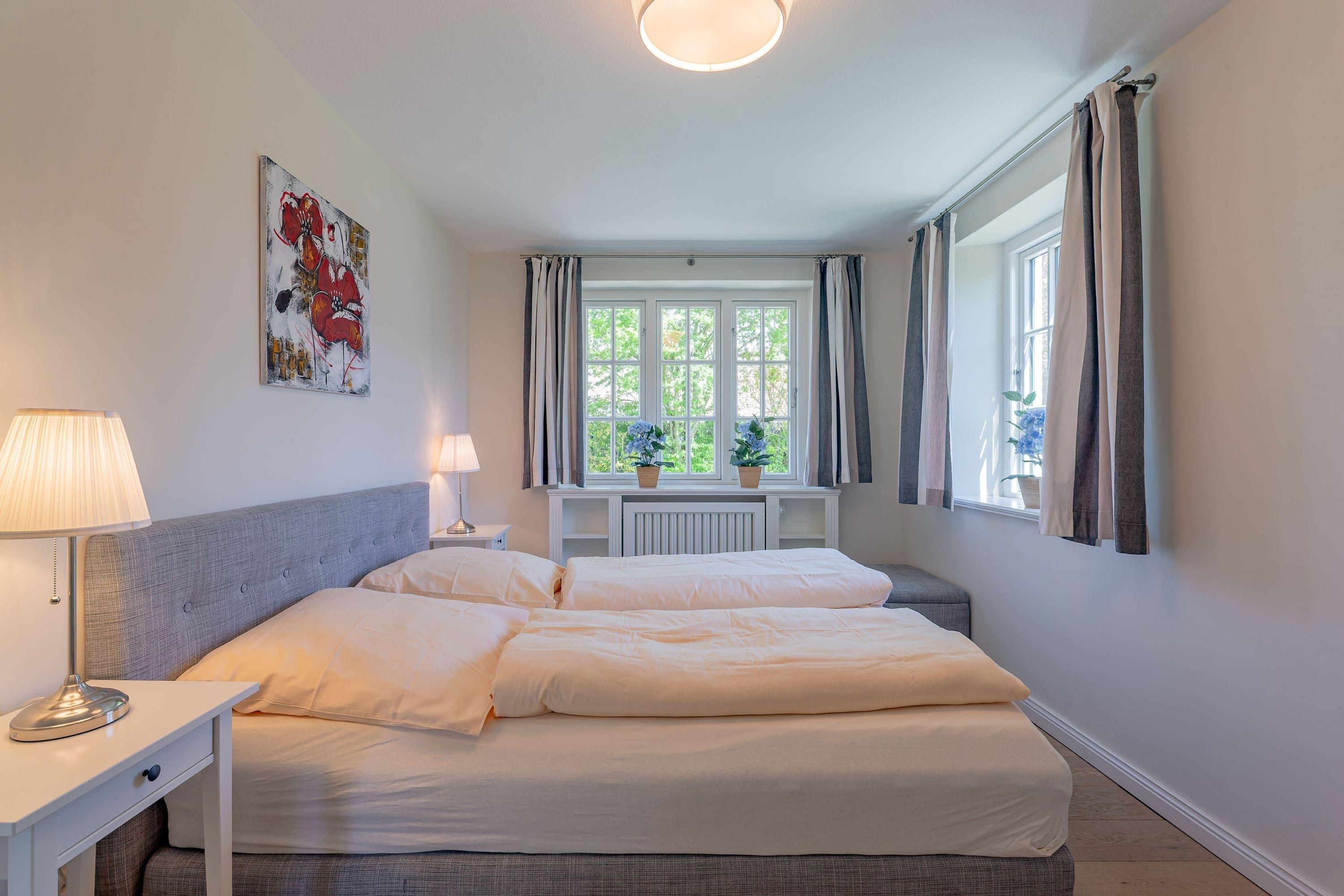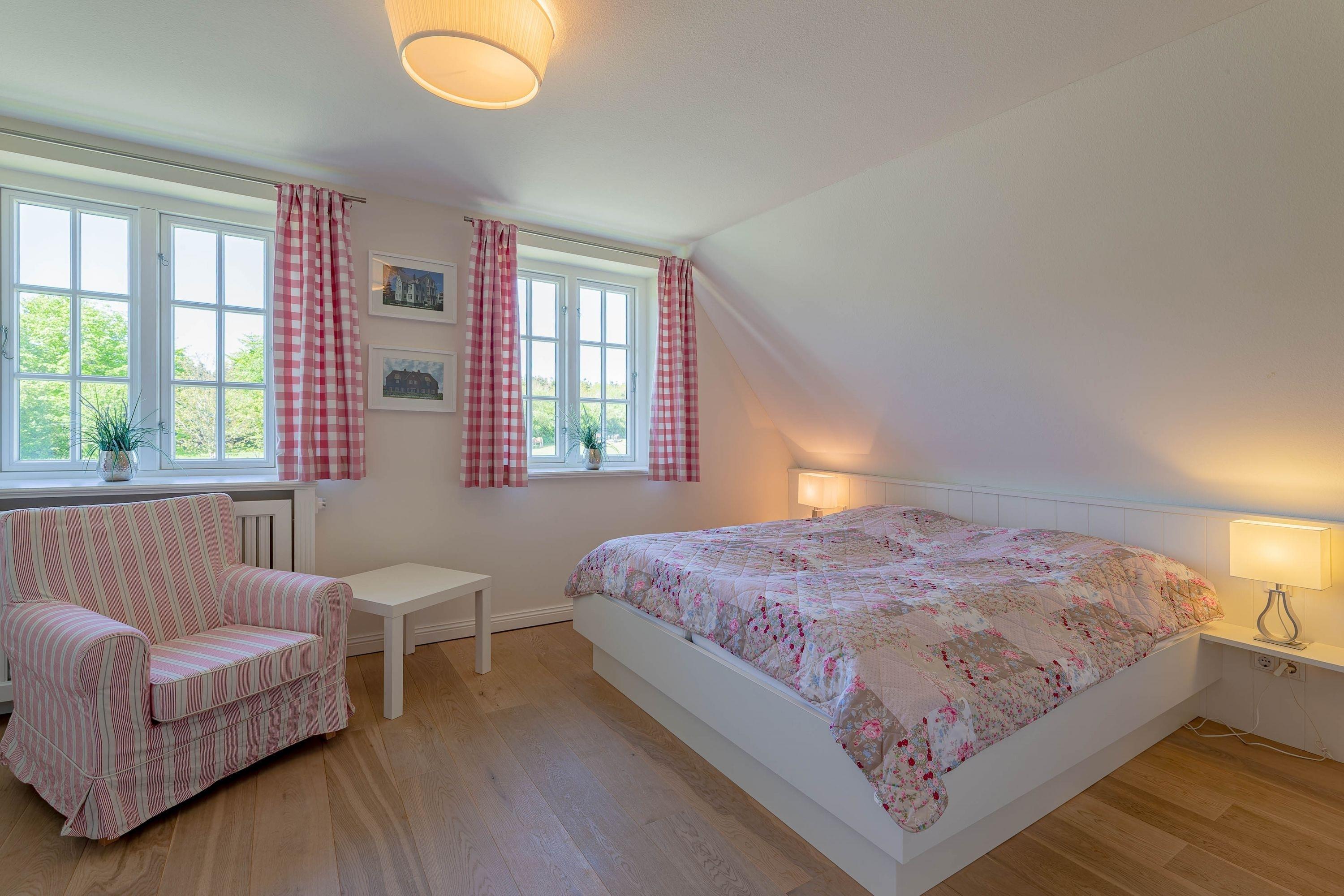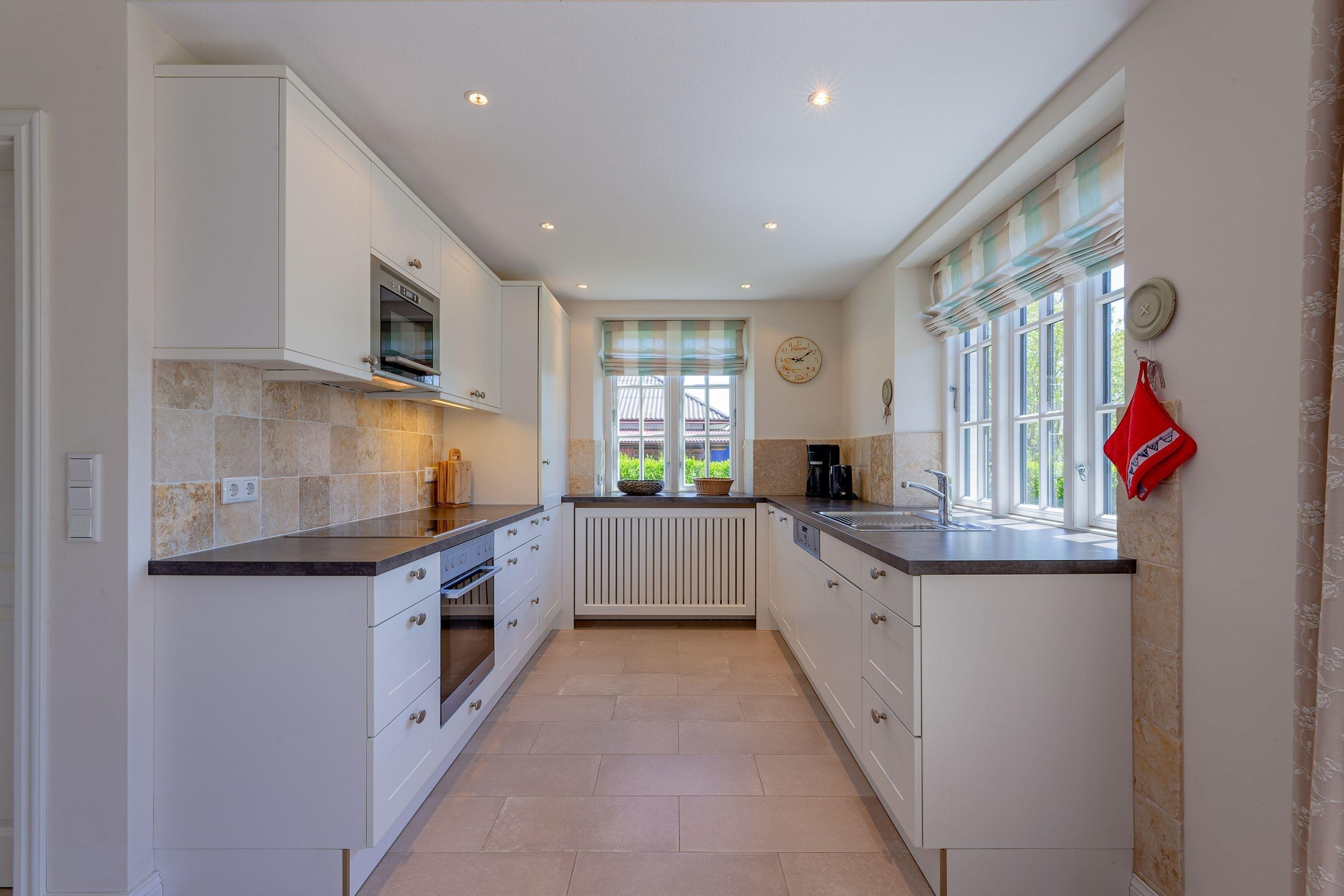Ein typisches Friesenhaus mit sehr schöner Architektur. Die Summe schöner Details – Holzsprossenfenster, Reetdach, schöne Fliesen und Holzarbeiten - schafft eine wunderbare Atmosphäre. Im Erdgeschoss befindet sich ein großes, modern eingerichtetes Wohnzimmer mit Essplatz, von welchem Sie direkt auf die ca. 36 qm große Terrasse gelangen. Desweiteren eine moderne Küche, ein Schlafraum, sowie Diele, Bad und HWR. Im Obergeschoss sind zwei Schlafzimmer mit integrierten Bädern und die hauseigene Sauna. In nur wenigen Gehminuten gelangen Sie zum Südstrand, oder Golfplatz. Waldspaziergänge können direkt vor der Tür starten. Alle Erholungs- und Einkaufsmöglichkeiten sowie Cafés und Restaurants liegen ca. 1,5 km entfernt.