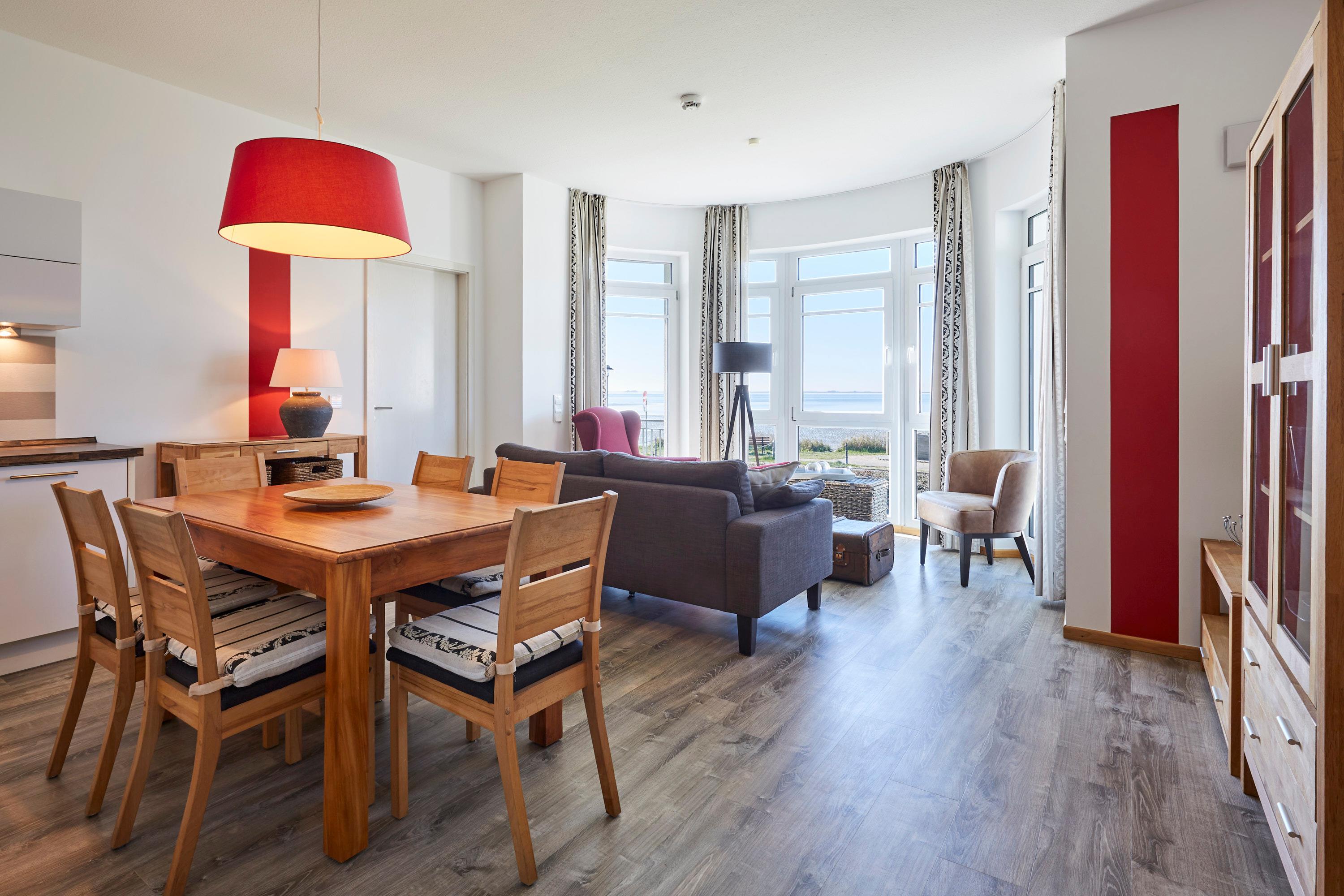 Wir begrüßen Sie im "Schloss am Meer", der exklusiven Wohnanlage direkt am Wyker Südstrand gelegen. Ihre Wohnung liegt Hochpaterre hinter der historischen Fassade, welche beim Neubau erhalten wurde. Hier laden drei Balkone ein, den Blick auf die Nordsee und die Halligen zu genießen. Ein einzigartiger Panoramablick erwartet Sie. Genießen Sie die Sonne schon beim Frühstück! In nur wenigen Schritten befinden Sie sich auf der Promenade, die Sie ins Herz von Wyk führt. Hier laden Geschäfte zum Bummeln ein, in Cafés und Restaurants werden Sie mit kulinarischen Köstlichkeiten verwöhnt.