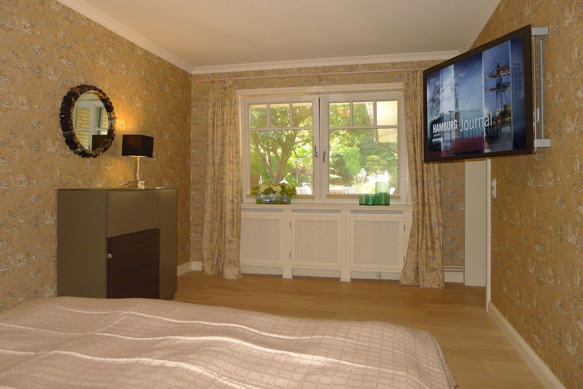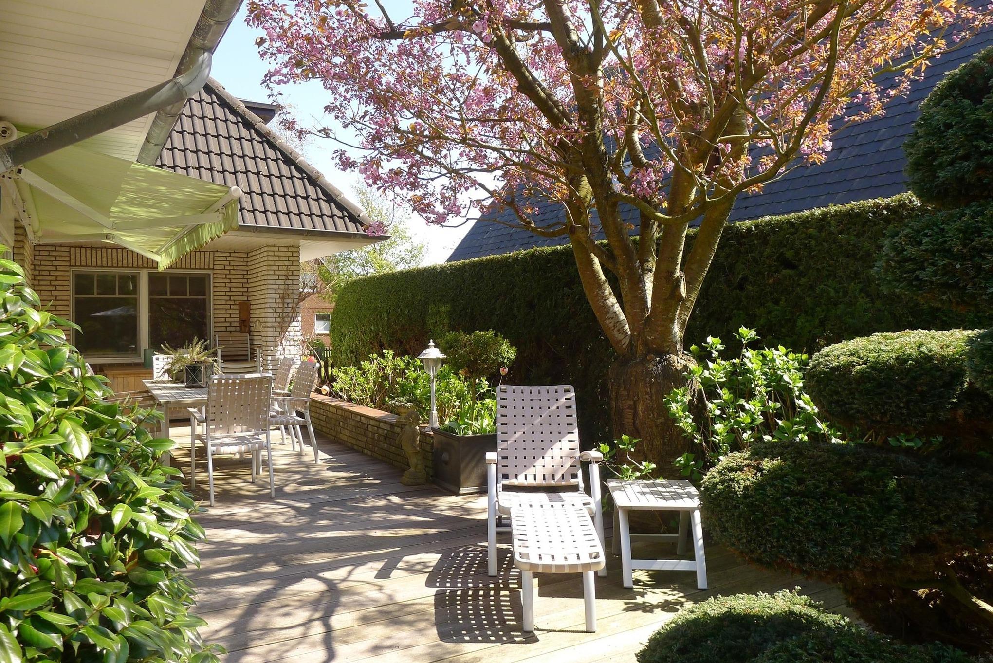 Unser Haus Nordwind" liegt in einer absolut ruhigen Sackgasse am Rande von Wyk. Zur Innenstadt sind es etwa 15-20 Gehminuten, zum Südstrand etwa 10 Gehminuten. Das Haus steht direkt am Wald und bietet Ihnen im Erdgeschoss eine sehr moderne, hochwertige und geschmackvoll eingerichtete Wohnung. Von Wohnbereich gelangen Sie direkt auf die Terrasse die den Blick in den Garten freigibt. Eine zweite Frühstücksterrasse ist auch vorhanden. Beide Terrassen sind zur alleinigen Nutzung - exklusiv für die Erdgeschosswohnung ?- vorgesehen. Der große und wunderbar eingewachsene Garten ist wie ein Gemälde von dem man den Blick gar nicht abwenden mag. Ein gemeinschaftlicher Gartensitzplatz mit Strandkorb und Sitzgruppe ist auch vorhanden. Sollten Sie Ihren Hund mitbringen, bitten wir Sie diesen ?- mit Rücksicht auf die anderen Gäste - nicht ohne Leine auf der Terrasse oder im Garten laufen zu lassen. Ein Haken für eine Hundelaufleine ist auf der Terrasse vorhanden."