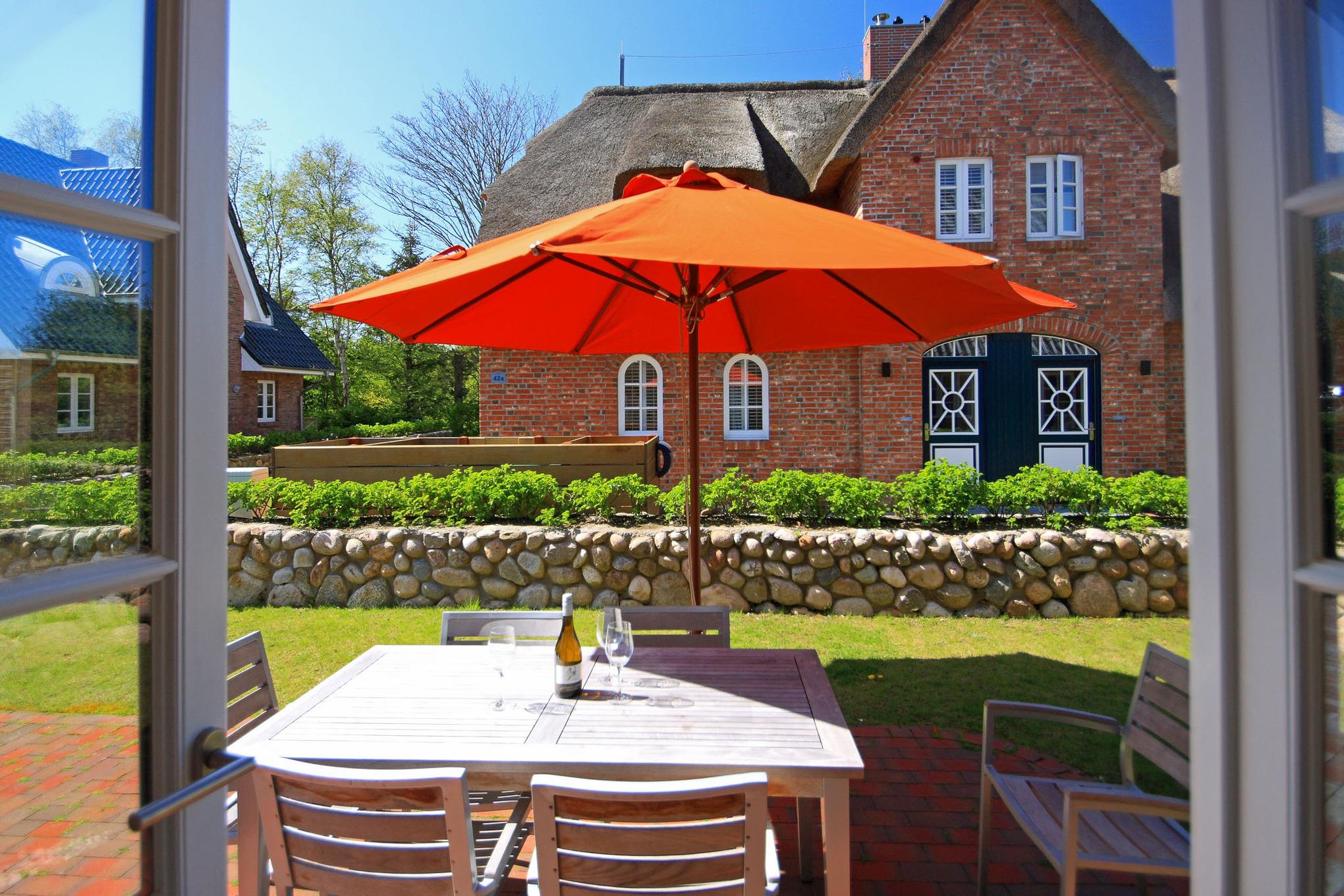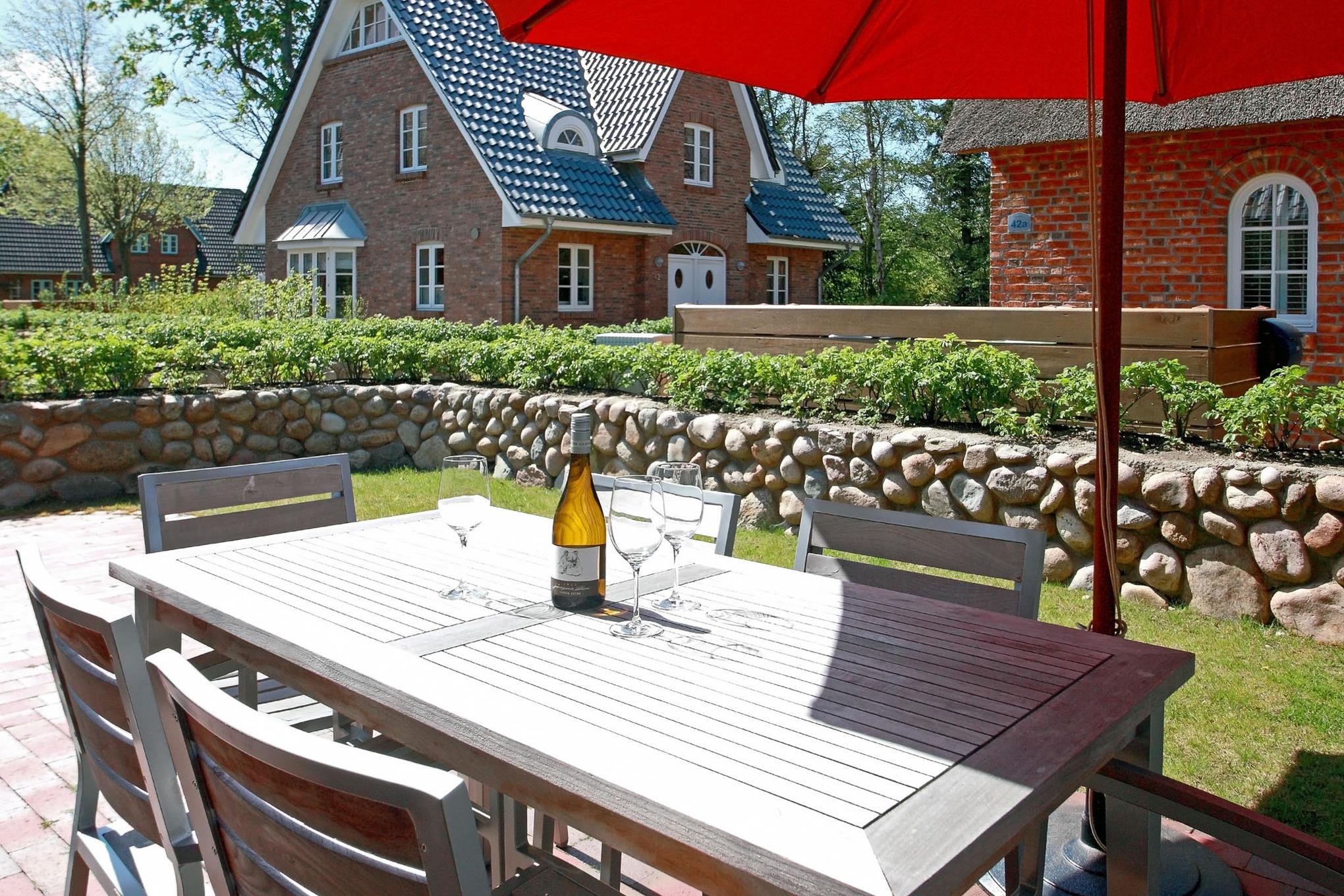 In unmittelbarer Nähe zum Wyker Südstrand, und in direkter Nachbarschaft zu den Flächen des alten Golfplatzes, auf dem Gelände des ehemaligen Kaiserhofes ist die ?„Residenz am alten Golfplatz?“ entstanden. Mit nur wenigen Schritten gelangen Sie zum Strand und zur Promenade, welche Sie ins Herz von Wyk führt. Die Innenstadt mit ihren Café,s, Restaurants sowie Einkaufsmöglichkeiten ist so schnell und bequem zu erreichen. Das Doppelhaus wird mit einem traditionellen Friesenwall umgeben. Auch bei der Innenausstattung wurde an alles gedacht von dem großzügigen Wohn-Essbereich mit Kamin bis hin zur eigenen Sauna hier genießen Sie die schönsten Tage des Jahres.