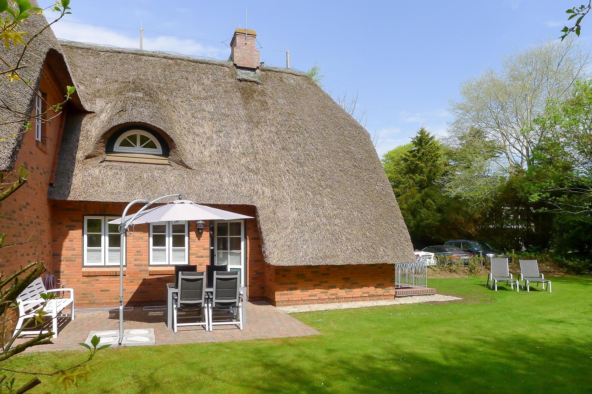 Wohnen Sie in der Nähe zum Südstrand direkt am Rande des alten Kurparks. Das reetgedeckte Reiheneckhaus liegt am Ende einer Sackgasse und ist somit die ideale Grundlage für erholsame Urlaubstage auf der Insel. Der große Garten lädt im Sommer zum Entspannen ein, der Kachelofen sorgt im Winter für gemütliche Abende, und die hauseigene Sauna bietet Ihnen immer die Möglichkeit, einen Relax- und Wellnesstag einzulegen.