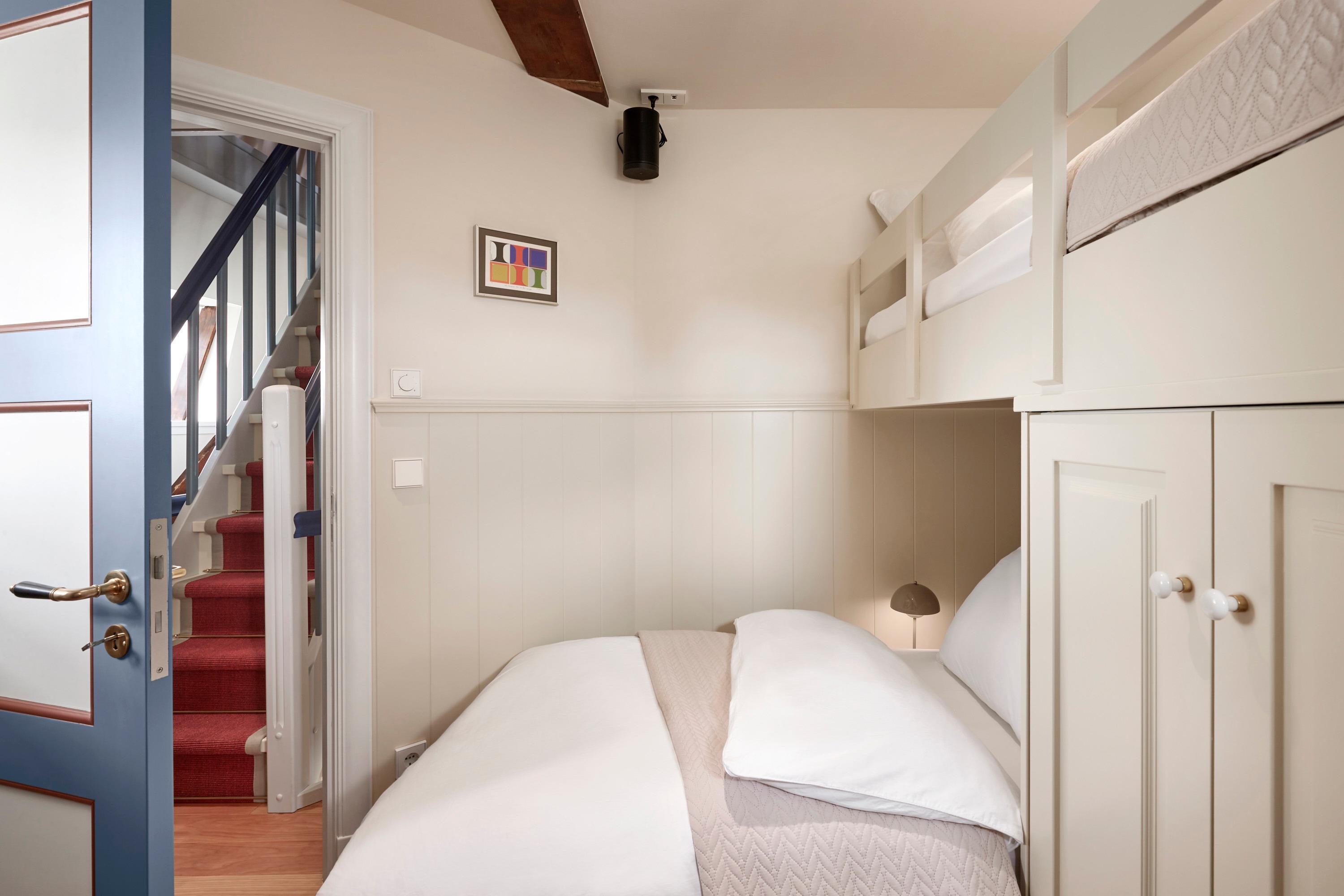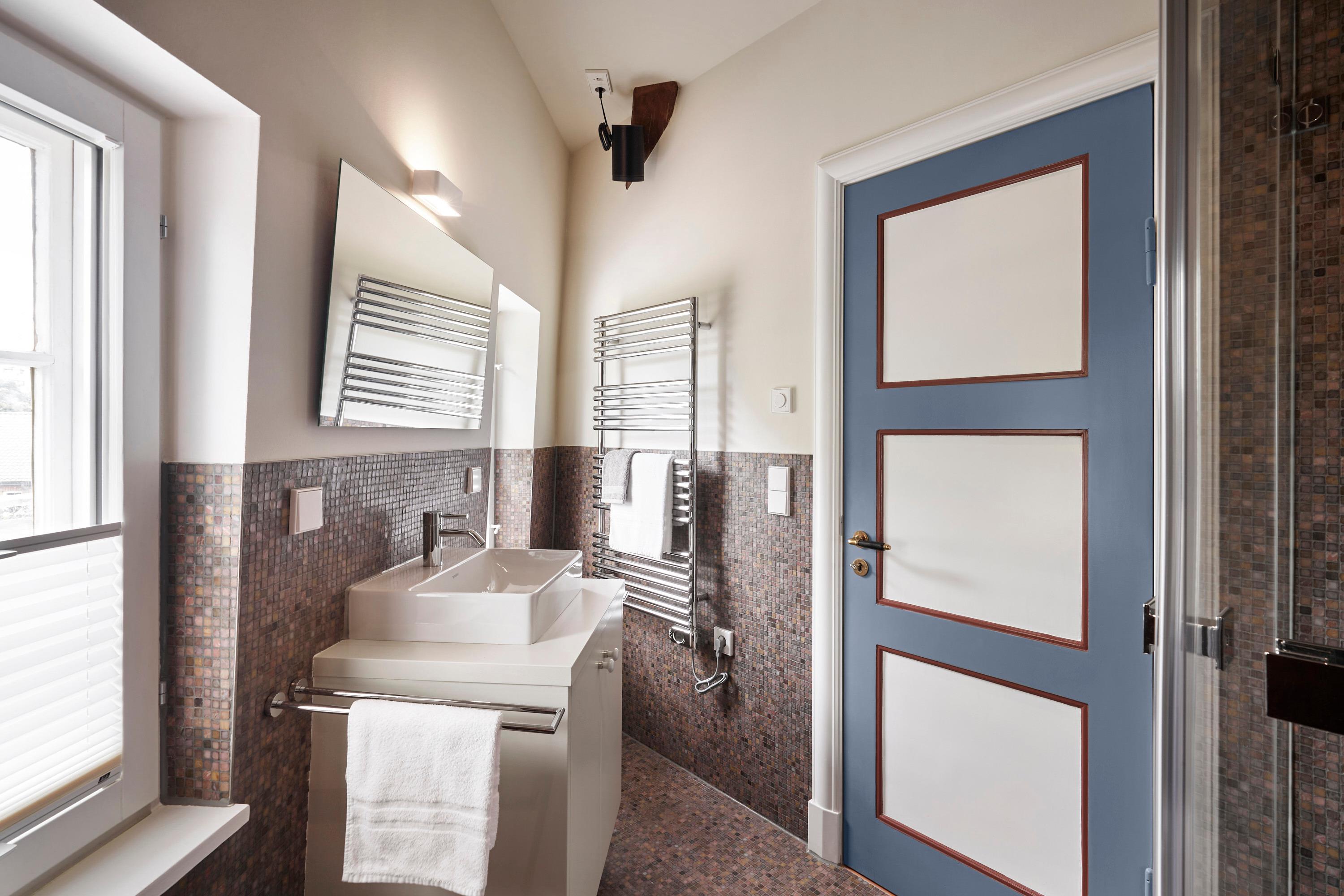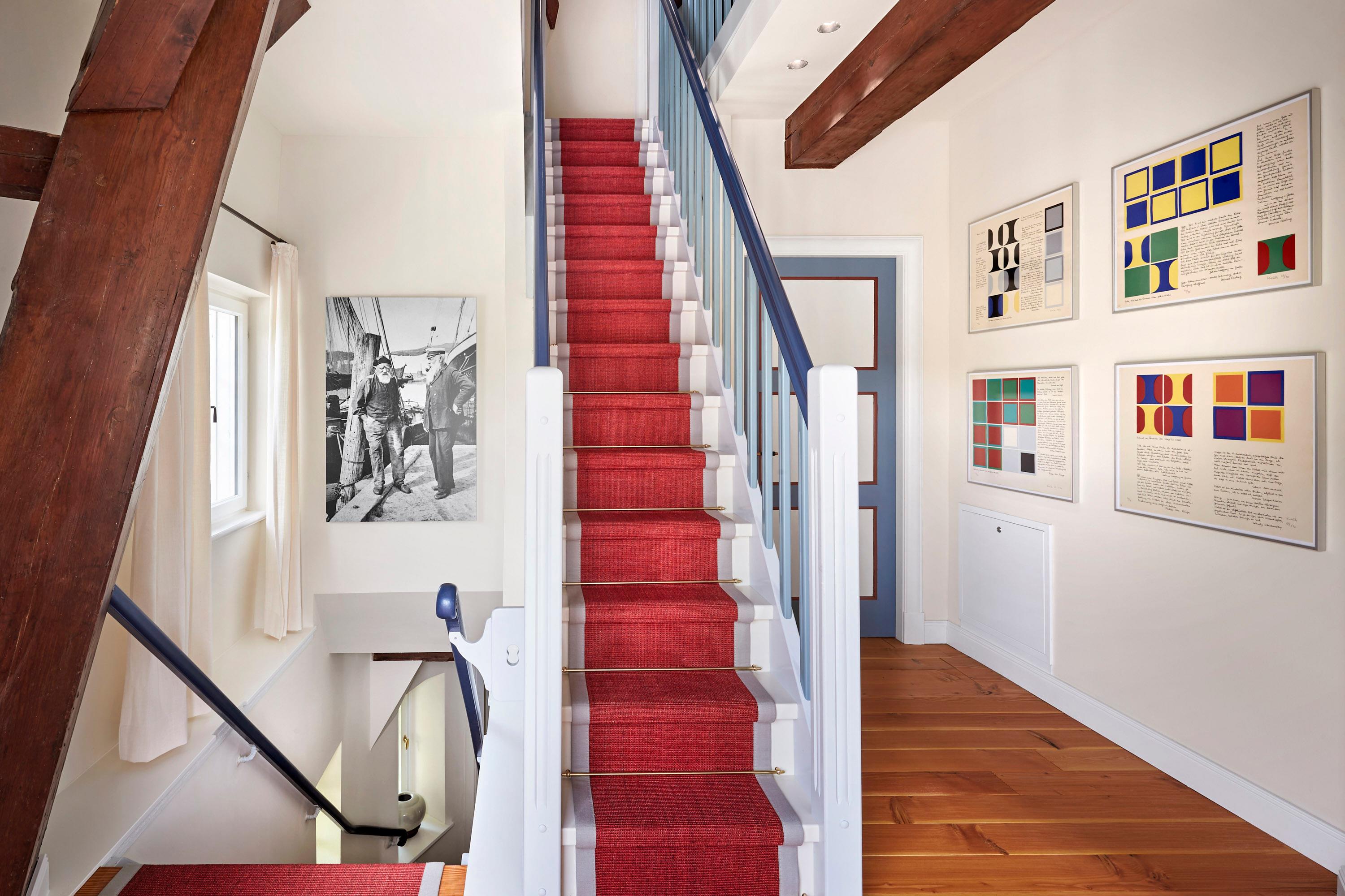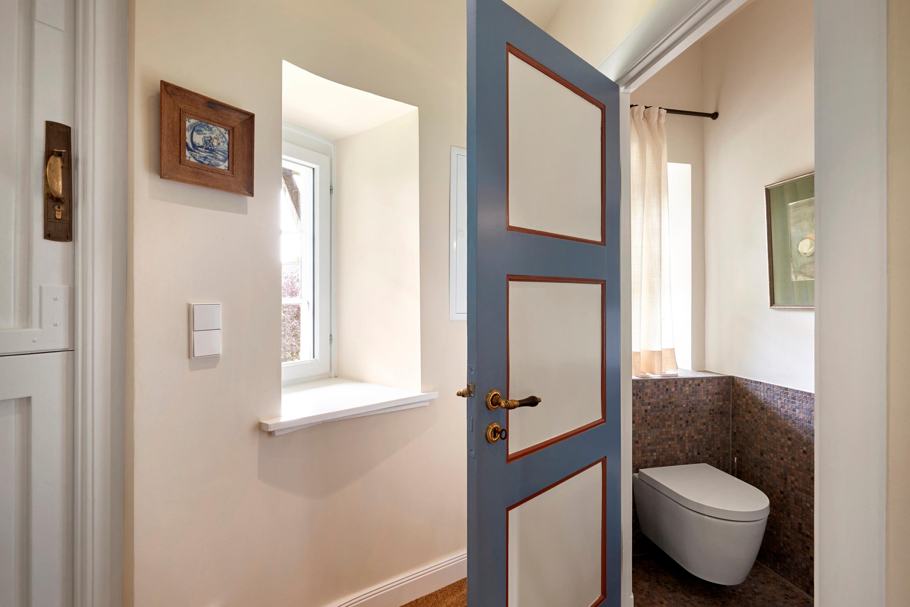 Dazu gehört natürlich auch eine Fußbodenheizung auf allen Etagen, beheizt über Erdwärme, ein state-of-the-art Soundsystem in allen Wohn- und Schlafräumen sowie in den Bädern, der Küche und im Sauna-Ruhebereich. Die Armaturen in Bädern und Küche sind von Dornbracht, die durch Hochwertigkeit und minimalistisches Design bestechen und so den Mix aus historisch und modern unterstreichen.