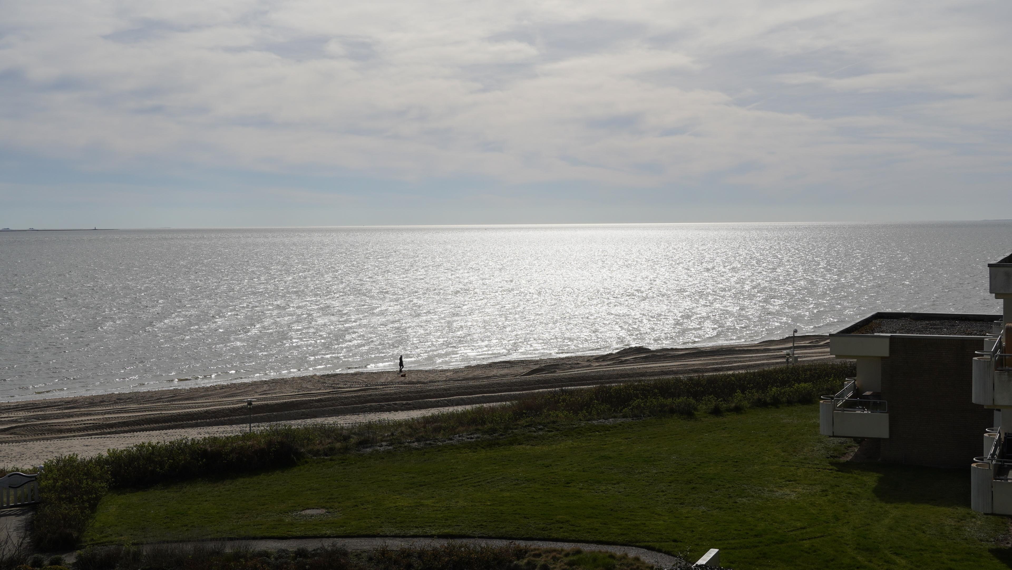 Genießen Sie den unverbauten Panoramablick auf die Nordsee und die Halligwelt - ob durch das große Fenster oder vom Balkon aus.
